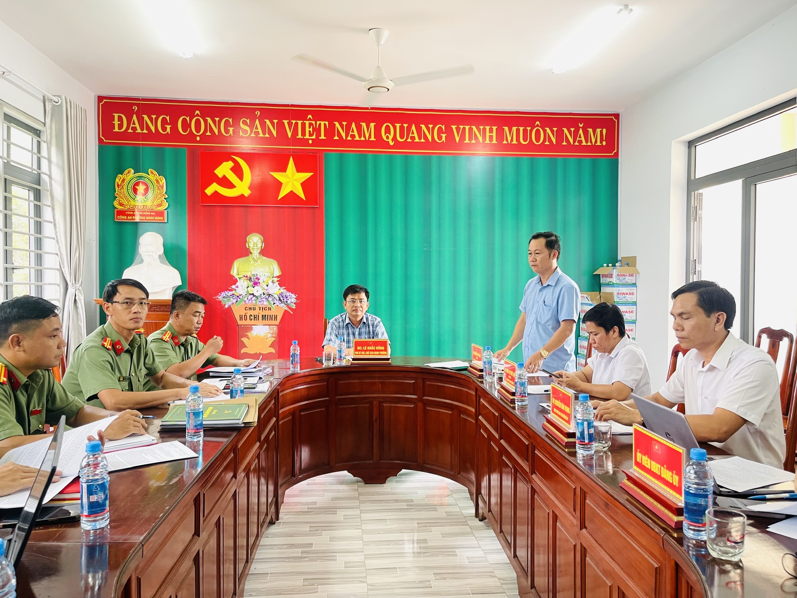 Phát biểu tại buổi làm việc, đồng chí Lê Khắc Đồng biểu dương và đánh giá cao những kết quả, nỗ lực mà Đảng ủy Công an phường Minh Hưng đã đạt được trong thời gian qua. Đồng chí nhấn mạnh, đơn vị cần tiếp tục phát huy tinh thần chủ động, sáng tạo, nâng cao hiệu quả trong thực hiện các nhiệm vụ trọng tâm, nhất là trong công tác phòng ngừa, đấu tranh với các loại tội phạm, giữ vững an ninh trật tự, góp phần xây dựng địa bàn an toàn, văn minh, lành mạnh.
