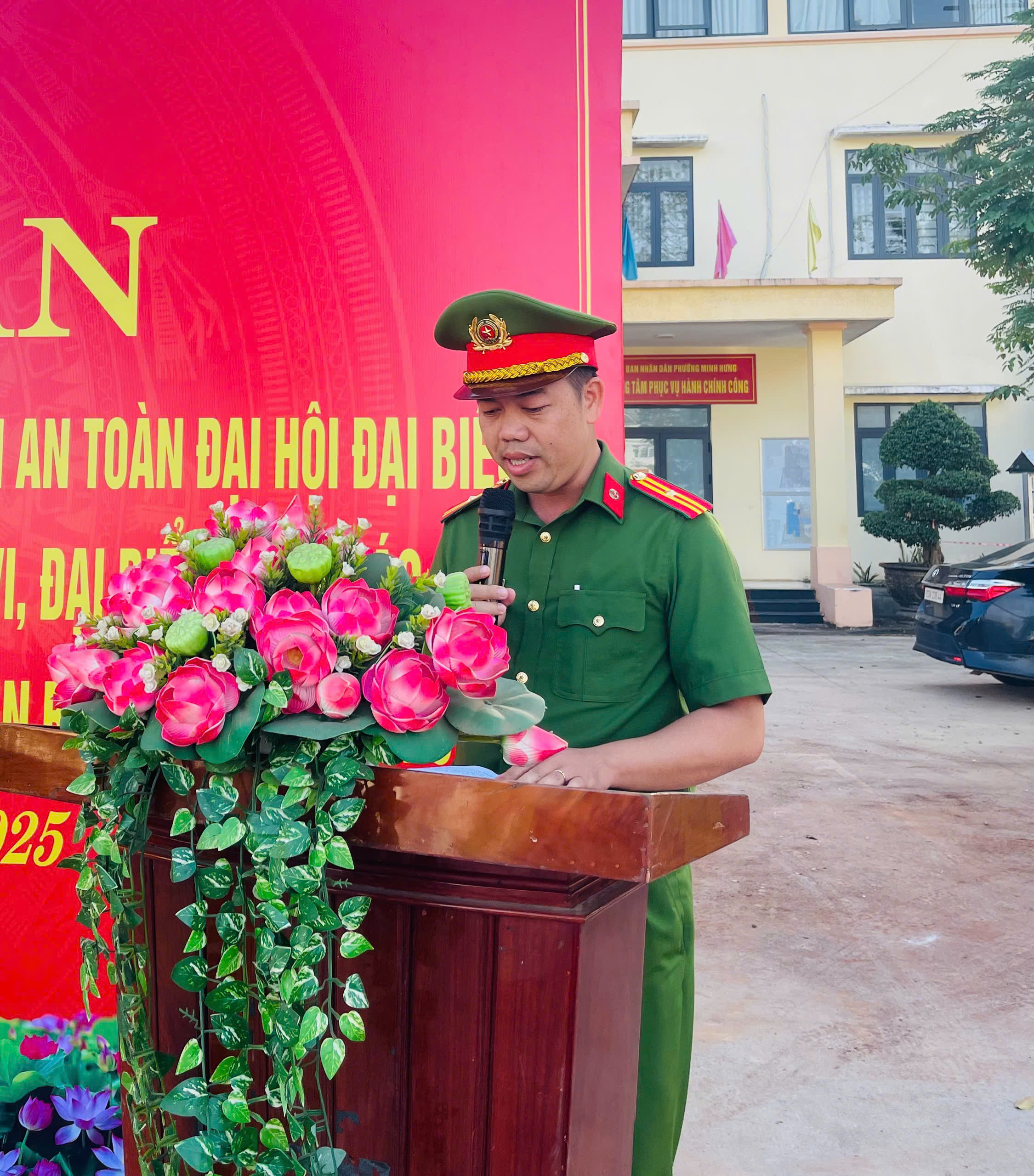 Tại buổi lễ, Chủ tịch UBND phường chính thức phát động đợt cao điểm tấn công, trấn áp tội phạm và bảo đảm an ninh trật tự phục vụ các sự kiện lớn năm 2026 trên địa bàn phường Minh Hưng. Ông đề nghị các lực lượng tập trung thực hiện những nhiệm vụ trọng tâm: tăng cường nắm tình hình, giữ vững an ninh chính trị nội bộ, an ninh nông thôn, tôn giáo; không để phát sinh điểm nóng; quyết liệt xử lý các loại tội phạm trộm cắp, ma túy, cờ bạc, băng nhóm; kiểm tra, xử lý nghiêm hành vi vi phạm về pháo, vũ khí, vật liệu nổ; đẩy mạnh tuần tra, kiểm soát, quản lý cư trú và các ngành nghề kinh doanh có điều kiện; quán triệt phương châm “Chủ động - Nêu gương - Kỷ cương - Trách nhiệm - Hiệu quả”. Lực lượng Công an phường tiếp tục phát huy phong trào “Ba nhất”, giữ vai trò nòng cốt trong công tác bảo đảm an ninh trật tự; các cơ quan, đoàn thể và khu phố phối hợp đẩy mạnh tuyên truyền, vận động nhân dân chấp hành pháp luật, tích cực tố giác tội phạm và chăm lo đời sống người dân dịp Tết.