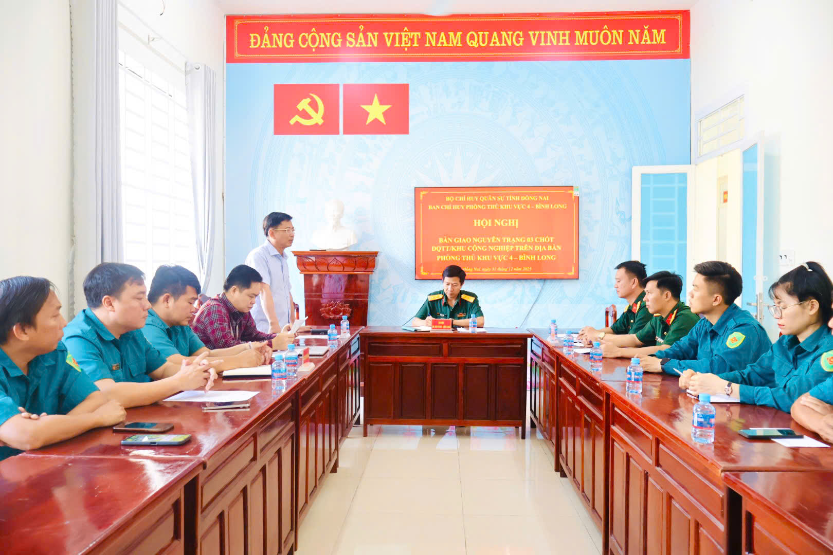 Hội nghị do đồng chí Trung tá Lê Ngọc Chuông - Phó Tham mưu trưởng Ban Chỉ huy Phòng thủ khu vực 4 - Bình Long chủ trì. Tại hội nghị, Ban Chỉ huy Phòng thủ khu vực 4 - Bình Long đã quán triệt kế hoạch bàn giao; thông qua biên bản bàn giao, tiếp nhận và công bố quyết định thành lập 03 chốt Dân quân thường trực khu công nghiệp trên địa bàn hai phường Minh Hưng và Chơn Thành. Theo nội dung bàn giao, phường Minh Hưng tiếp nhận quản lý 01 chốt Dân quân thường trực Khu công nghiệp Minh Hưng 3 với quân số 07 đồng chí.