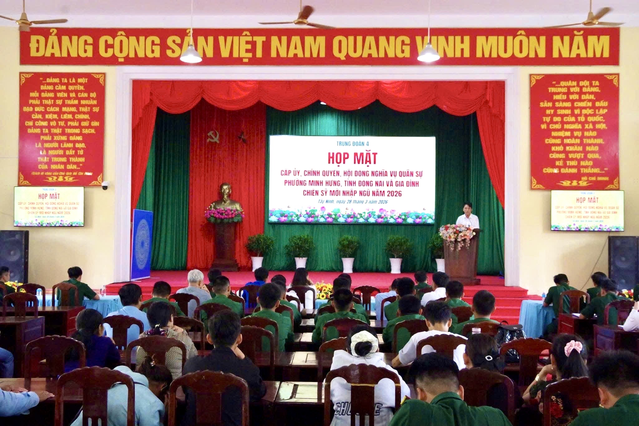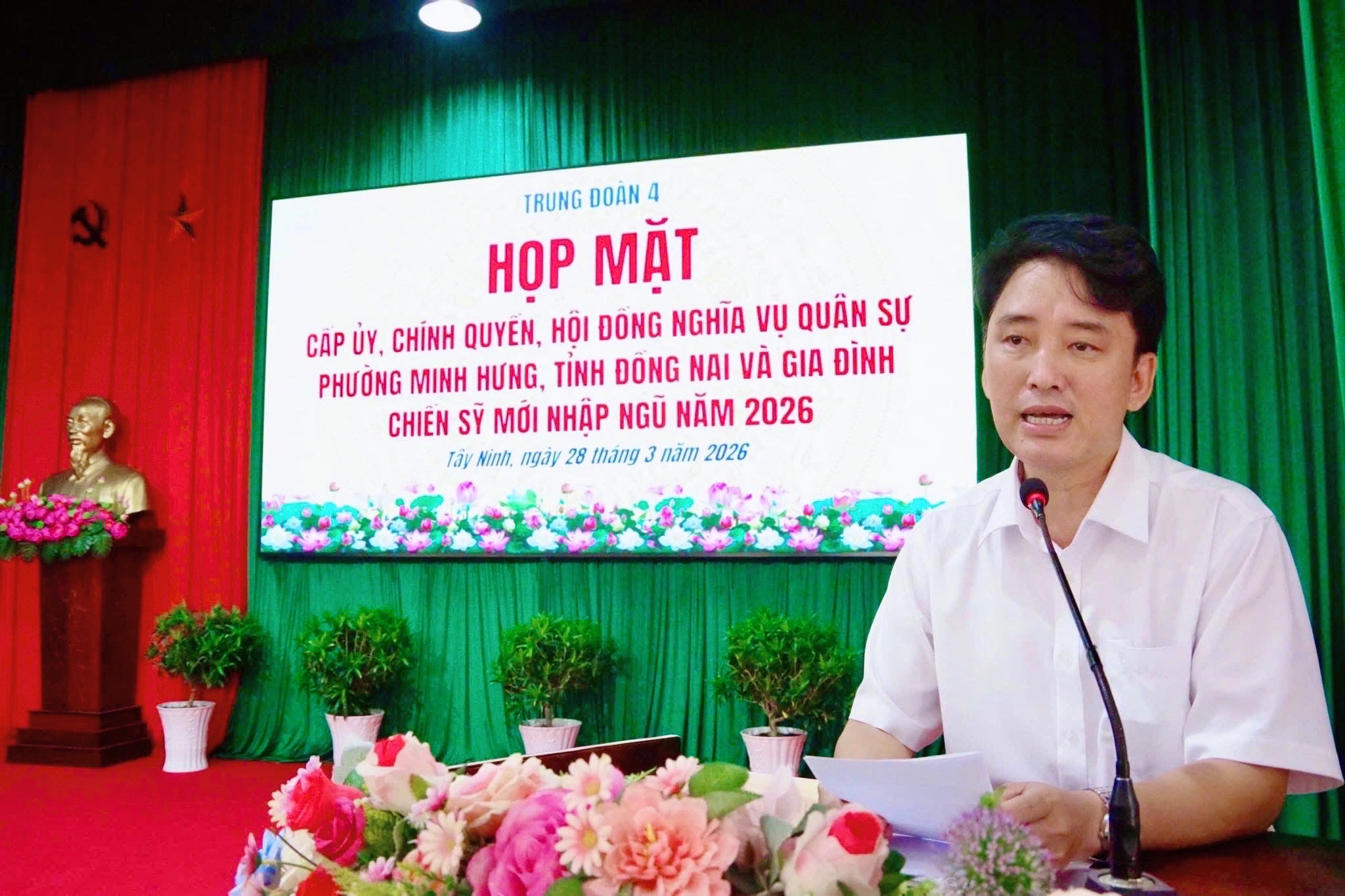 Trung đoàn 4, đã trải qua 61 năm thành lập và phát triển (1965), 02 lần được phong tặng lực lượng anh hùng vũ trang nhân dân; 06 tướng lĩnh được phong tặng anh hùng lực lượng vũ trang nhân dân, Đ/c Nguyễn Văn Diễn đã phát biểu cảm ơn lãnh đạo Trung đoàn và bày tỏ niềm vinh dự khi con em Phường Minh Hưng được rèn luyện tại trung đoàn có bề dày thành tích và dặn dò các tân binh phải cố gắng học tập, rèn luyện, hoàn thành xuất sắc nhiệm vụ của người lính và là hành trang để bước những chằng đường mới khi rời quân ngũ.