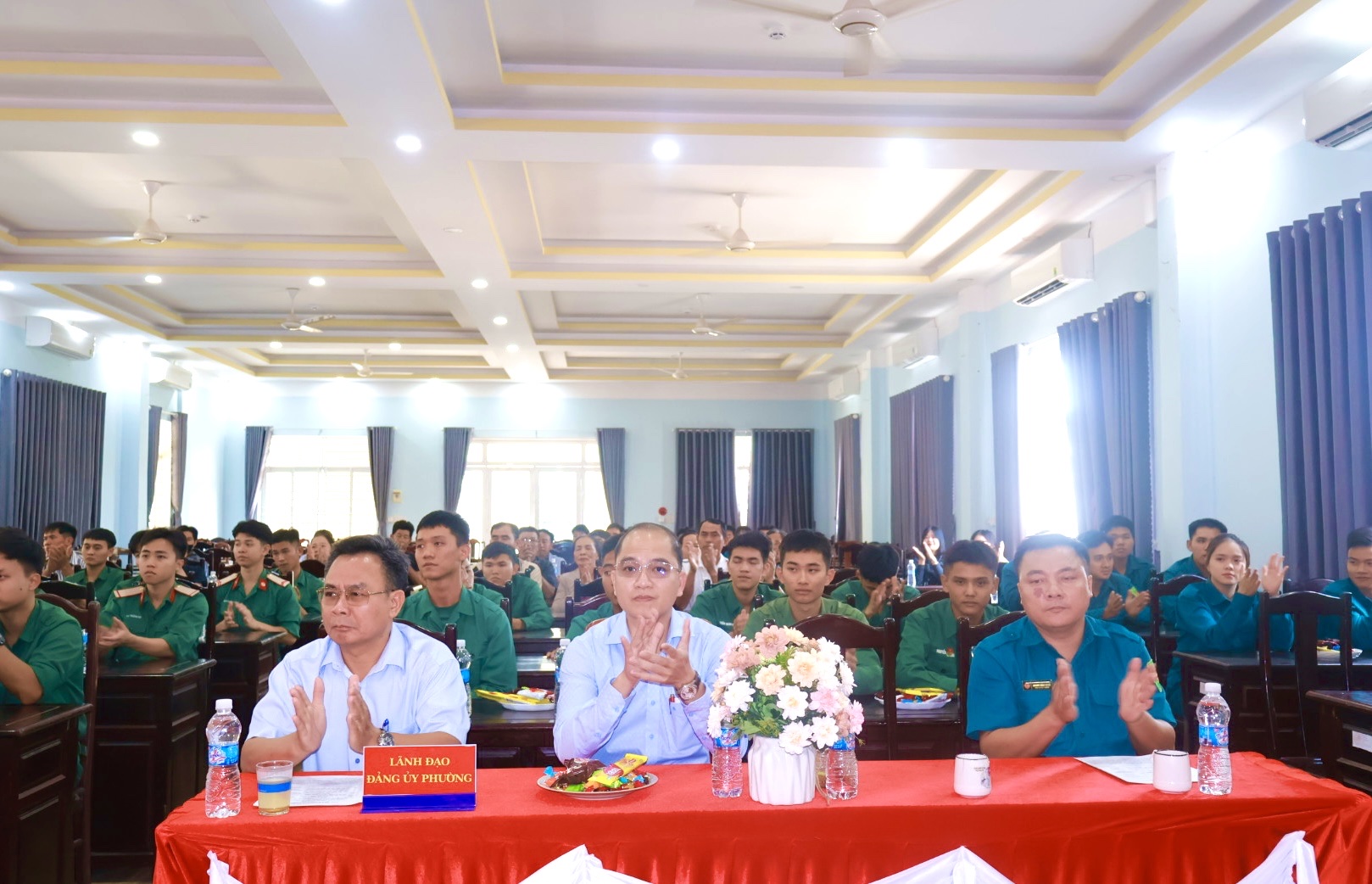 Tham dự buổi lễ có ông Lê Tiến Hiếu – Bí thư Đảng ủy, Chủ tịch HĐND phường, ông Lê Khắc Đồng – Phó Bí thư Đảng ủy, Chủ tịch Ủy ban nhân dân phường; bà Đinh Thị Tuyết Sơn – Chủ tịch Ủy ban Mặt trận Tổ quốc Việt Nam phường; đại diện lãnh đạo các đoàn thể chính trị – xã hội của phường; các quân nhân hoàn thành nghĩa vụ quân sự và đại diện gia đình các đồng chí.