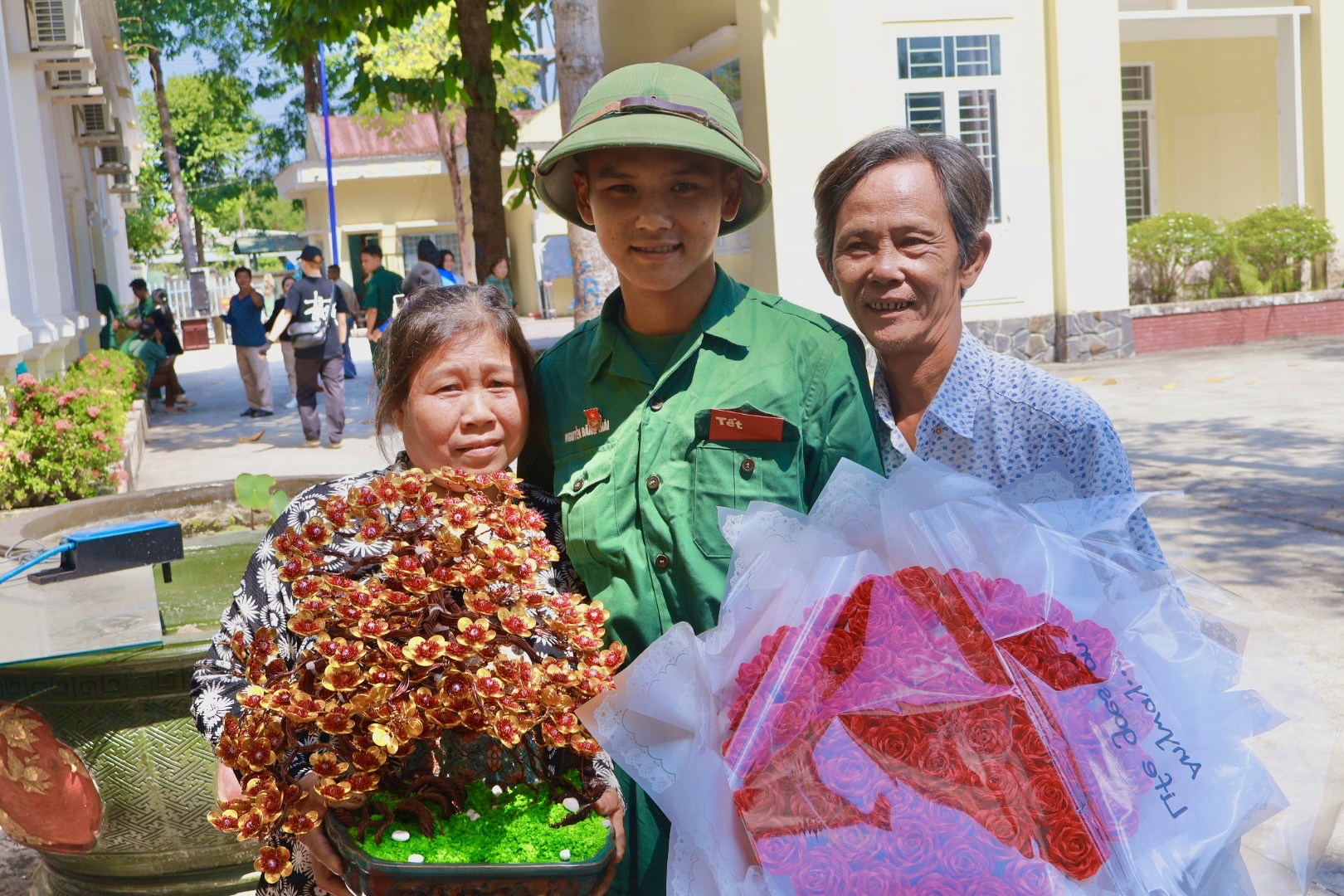 Hình ảnh vui mừng và hạnh phúc của người thân khi đón các quân nhân xuất ngũ trở về địa phương: