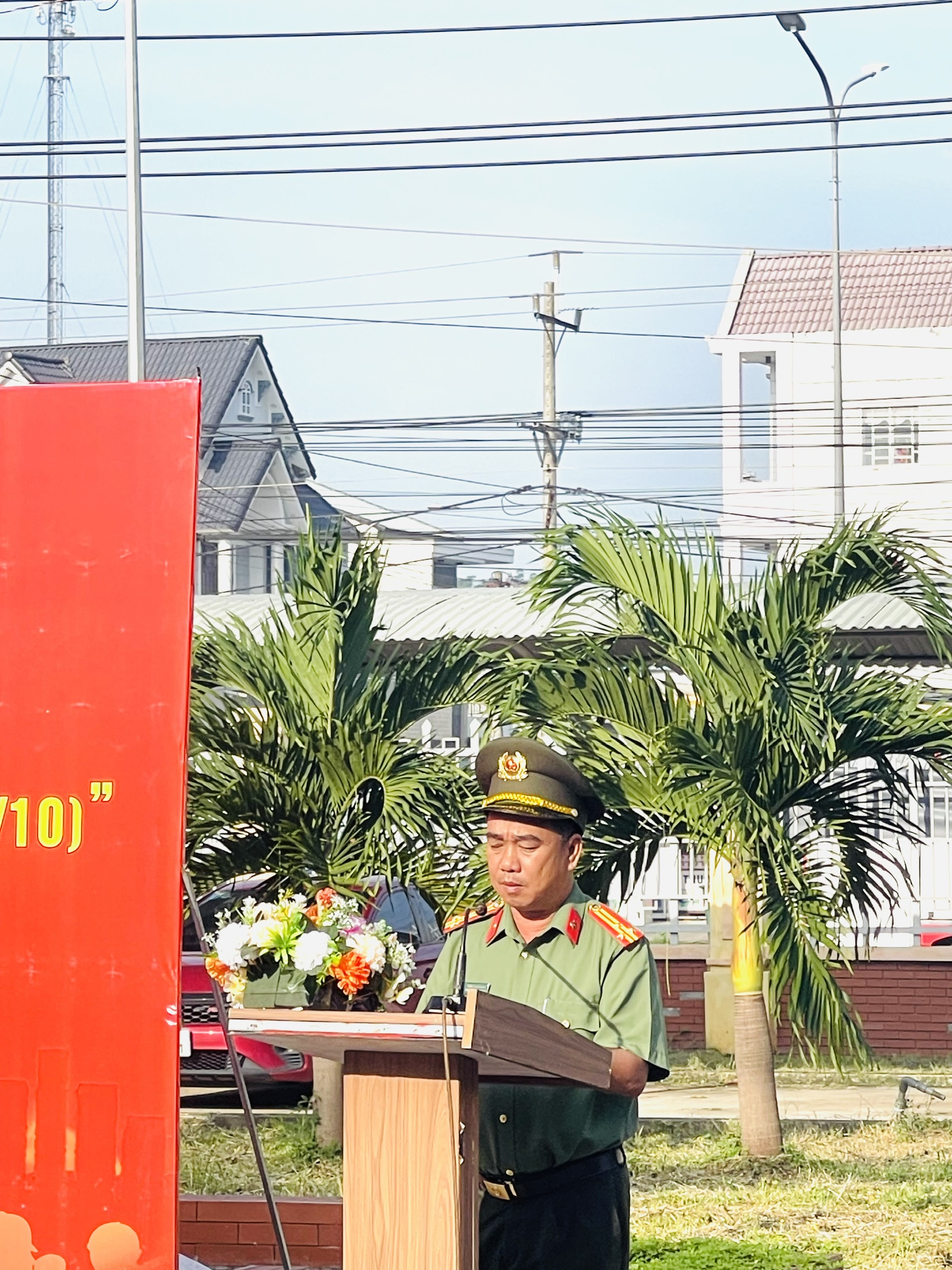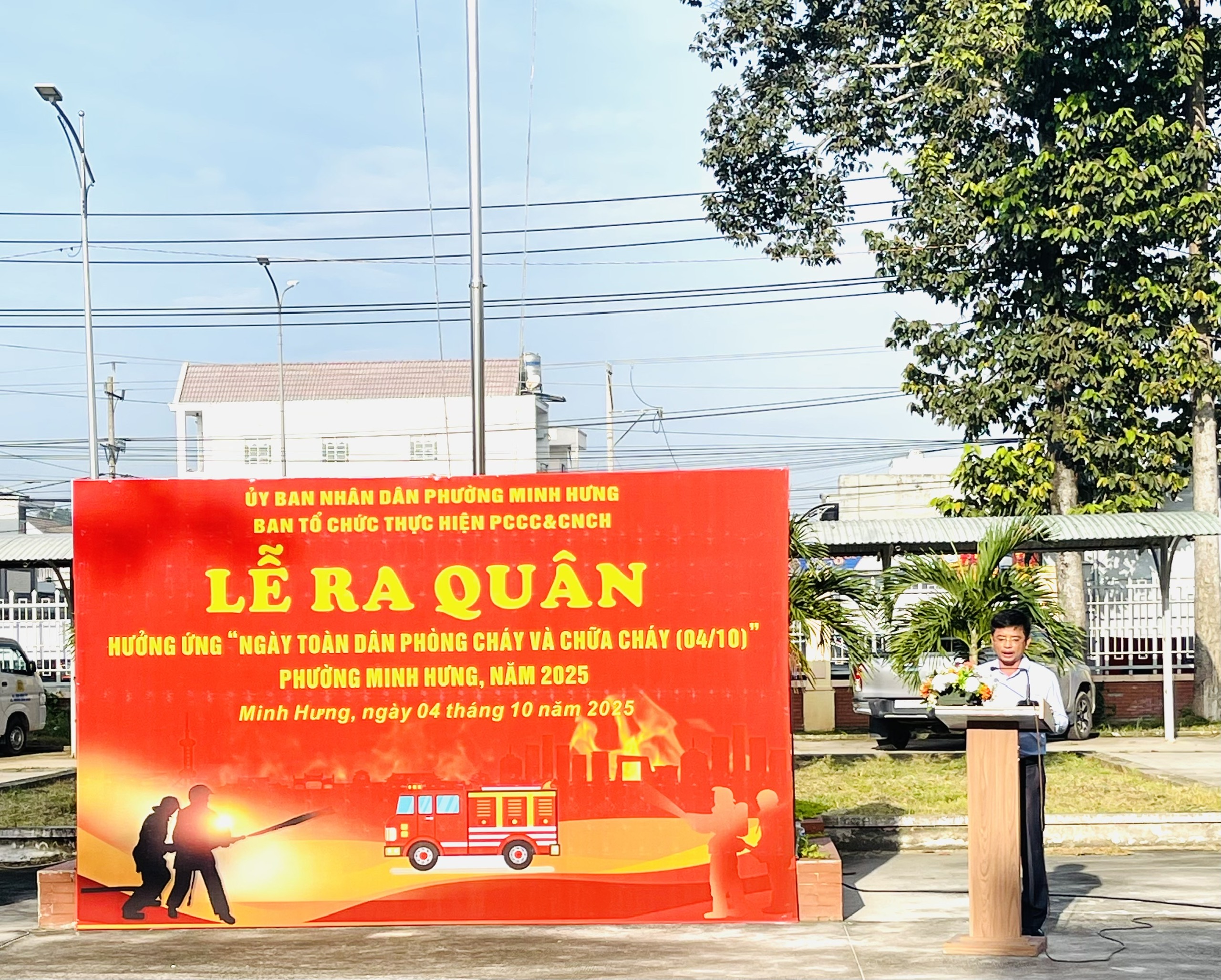 Phát biểu tại buổi lễ, ông Lê Khắc Đồng - Phó Bí thư Đảng ủy, Chủ tịch UBND phường nhấn mạnh: “Việc thực hiện tốt công tác PCCC sẽ bảo vệ tính mạng, tài sản của mỗi cơ quan, doanh nghiệp, hộ gia đình. Chính vì vậy, trong phòng cháy, chữa cháy phải đặc biệt chú ý làm tốt công tác phòng ngừa, lấy phòng ngừa là chính, là cơ bản, phòng là xây, chữa là chống. Phải xem công tác PCCC là việc làm thường xuyên hằng ngày. Có như thế chúng ta mới không để cháy, nổ xảy ra và nếu không may có sự cố cháy, nổ thì cũng hạn chế được thiệt hại”. Để tiếp tục thực hiện có hiệu quả công tác phòng cháy, chữa cháy, ông kêu gọi cơ quan, doanh nghiệp, các khu phố, các hộ gia đình và mỗi người dân hãy tích cực hưởng ứng "Ngày toàn dân PCCC" và thường xuyên thực hiện tốt các quy định của pháp luật về PCCC bằng các việc làm thiết thực, cụ thể.