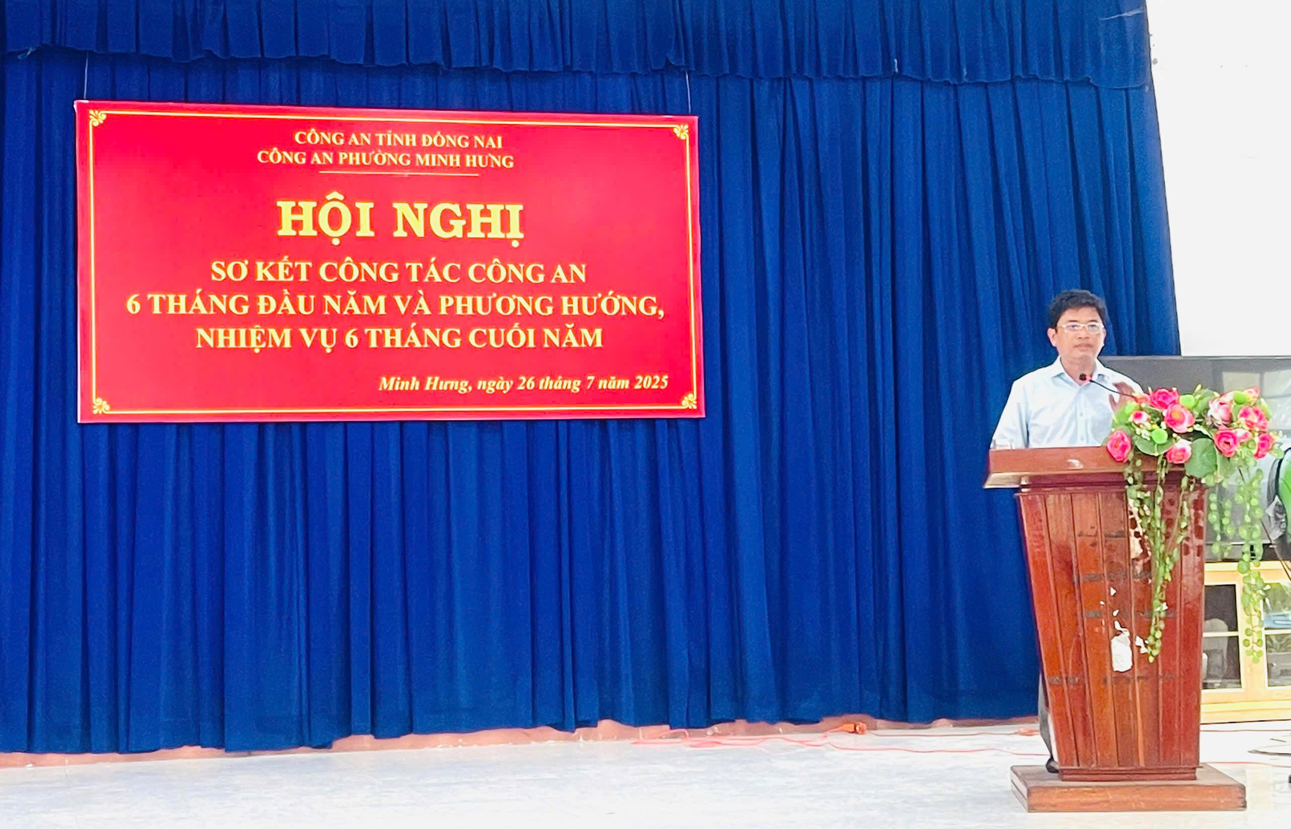 Tại Hội nghị, Trung tá Đoàn Văn Tú - Phó Trưởng Công an phường đã trình bày báo cáo tóm tắt kết quả công tác 6 tháng đầu năm và phương hướng nhiệm vụ 6 tháng cuối năm 2025. Trong 6 tháng đầu năm, tình hình an ninh chính trị trên địa bàn được giữ vững, không xảy ra tình huống đột xuất, bất ngờ, điểm nóng về an ninh chính trị; không có vụ khiếu kiện nào phức tạp, kéo dài; tình hình an ninh dân tộc, tôn giáo, an ninh công nhân trên địa bàn phường cơ bản ổn định. Tình hình tội phạm và vi phạm pháp luật về trật tự xã hội: xảy ra 09 vụ - 21 đối tượng; 09 vụ - 10 đối tượng liên quan đến hành vi, tàng trữ, sử dụng trái phép pháo nố, xảy ra 16 vụ - 17 đối tượng có hành vi "Tàng trữ trái phép chất ma túy". Xảy ra 06 vụ TNGT, chết 4 người, bị thương 02 người...