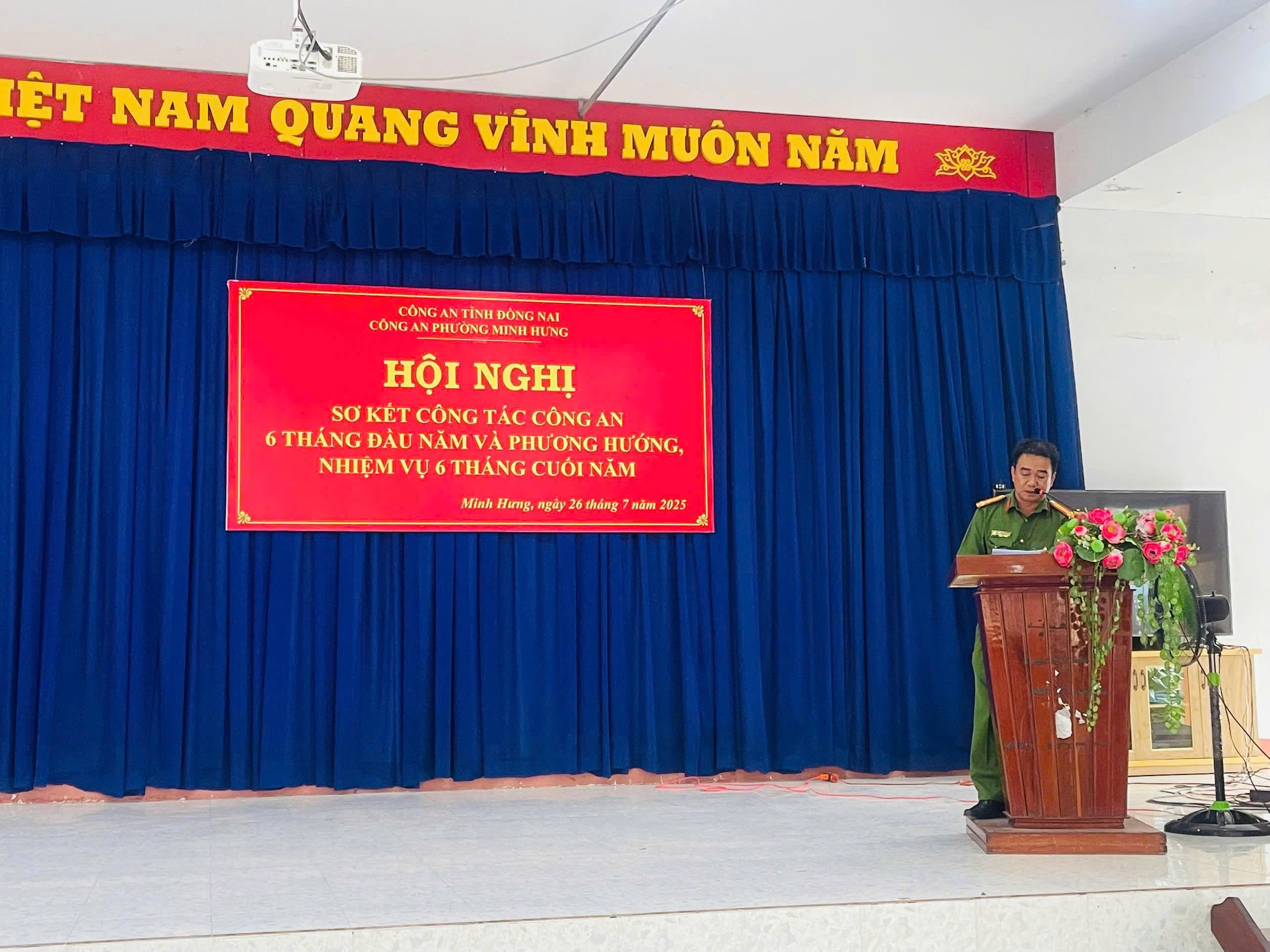 Phương hướng, nhiệm vụ 06 tháng cuối năm 2025 Công an phường Minh Hưng đặt ra là: Chủ động phối hợp với các phòng nghiệp vụ An ninh triển khai các Kế hoạch phòng ngừa nắm chắc tình hình đảm bảo giữ vững an ninh chính trị tại địa phương; Tập trung nhận diện và chủ động triển khai các kế hoạch, giải pháp phòng ngừa, ngăn chặn, kiềm chế và phấn đấu kéo giảm tội phạm xâm phạm trật tự xã hội; Tiếp tục tham mưu Đảng uỷ, UBND phường triển khai quyết liệt, hiệu quả Đề án 06 của Chính phủ; Tham mưu Đảng uỷ, UBND Phường tiếp tục nâng cao chất lượng, hiệu quả phong trào toàn dân bảo vệ an ninh Tổ quốc, trong đó chú trọng vùng dân tộc; Xây dựng Công an phường mẫu mực, đi đầu trong thực hiện nghiêm túc, hiệu quả các nghị quyết về công tác xây dựng Đảng....