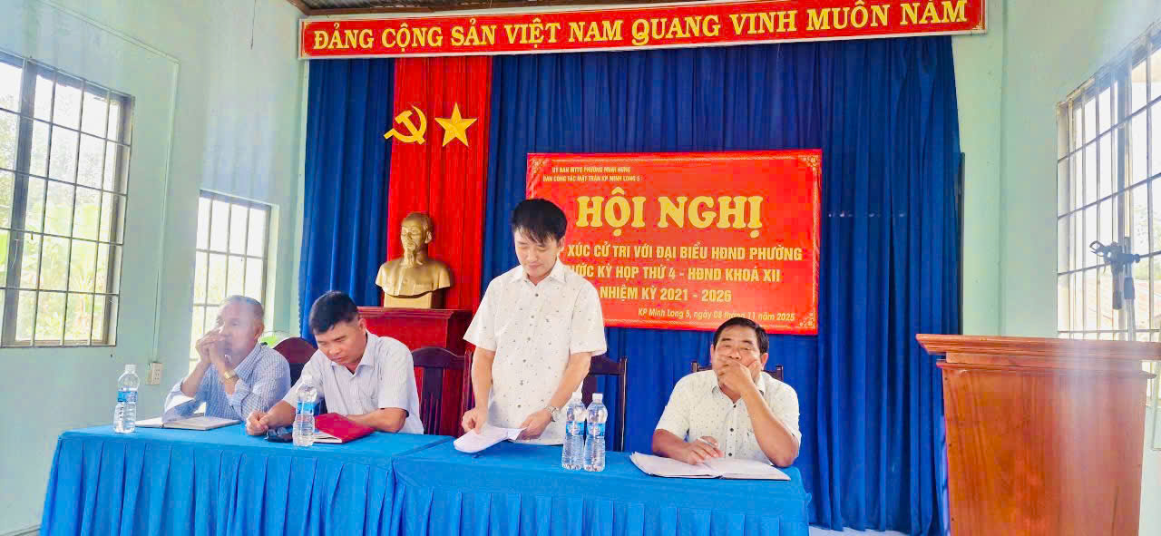 Trong đợt này, 5 tổ đại biểu HĐND phường Minh Hưng đã về cơ sở gặp gỡ, trao đổi, lắng nghe tâm tư, nguyện vọng, kiến nghị, đề xuất của Nhân dân. Tại các buổi tiếp xúc, đại biểu HĐND phường đã thông tin đến cử tri kết quả trả lời ý kiến, kiến nghị sau Kỳ họp thứ 2; báo cáo tình hình thực hiện nhiệm vụ phát triển kinh tế - xã hội, quốc phòng - an ninh 10 tháng và phương hướng, nhiệm vụ 2 tháng cuối năm 2025; đồng thời thông tin dự kiến nội dung, chương trình Kỳ họp thứ 4 HĐND phường Minh Hưng khóa XII, nhiệm kỳ 2021 - 2026.