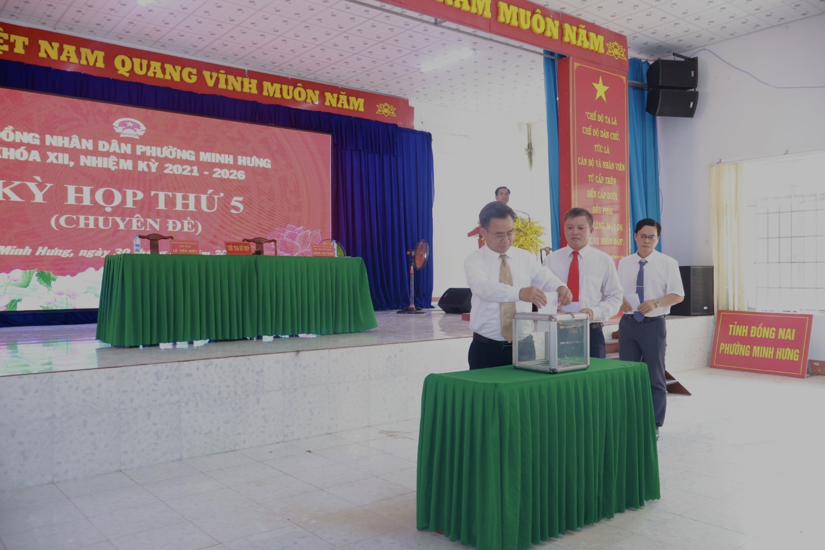 Tại kỳ họp, HĐND phường đã xem xét Tờ trình về việc giới thiệu nhân sự bầu Ủy viên UBND phường Minh Hưng khóa XII, nhiệm kỳ 2021 - 2026; nghe Báo cáo thẩm tra của Ban Văn hóa - Xã hội HĐND phường và tiến hành bầu cử Ủy viên Ủy ban nhân dân phường khóa XII. Trên cơ sở kết quả bầu cử, HĐND phường đã biểu quyết thông qua Nghị quyết xác nhận kết quả bầu Ủy viên UBND phường Minh Hưng nhiệm kỳ 2021 - 2026.