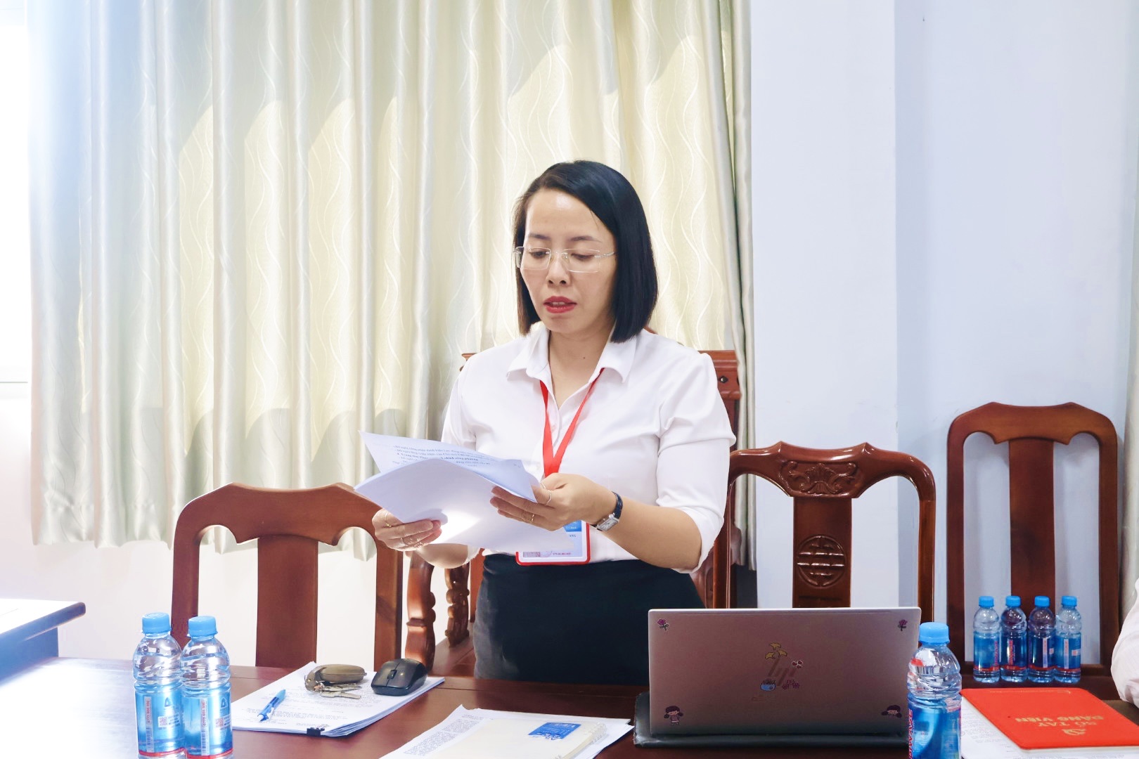 Tại cuộc họp, bà Trần Thị Lệ Hằng - Trưởng phòng Văn hóa - Xã hội phường đã báo cáo tổng hợp, trình bày các đề xuất khen thưởng tổng kết công tác năm 2025. Báo cáo nêu rõ kết quả đạt được của các tập thể, cá nhân trong năm qua, đồng thời căn cứ các tiêu chí, quy định hiện hành để đề xuất hình thức khen thưởng bảo đảm khách quan, công khai, minh bạch.