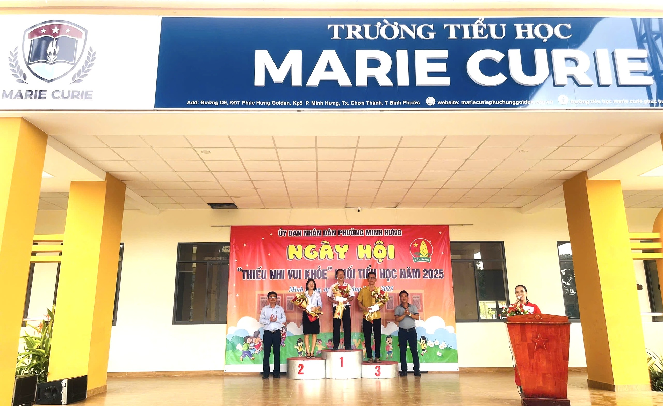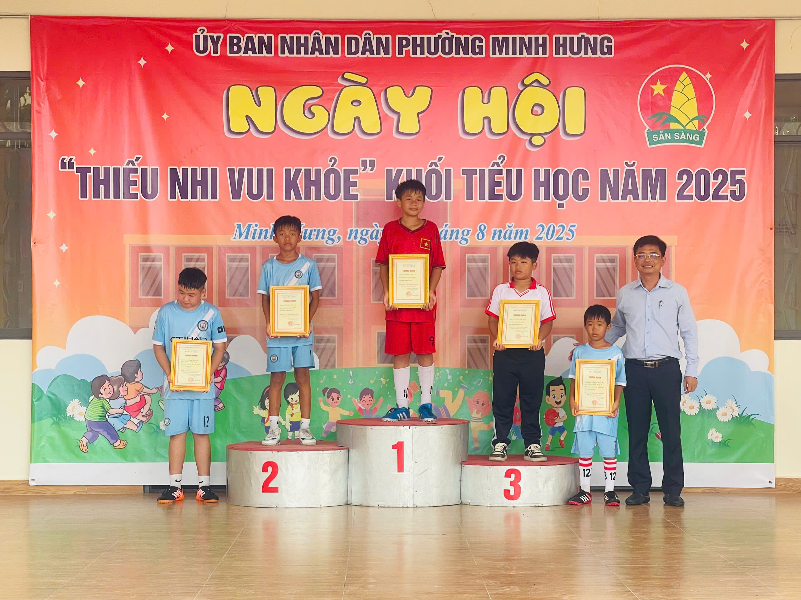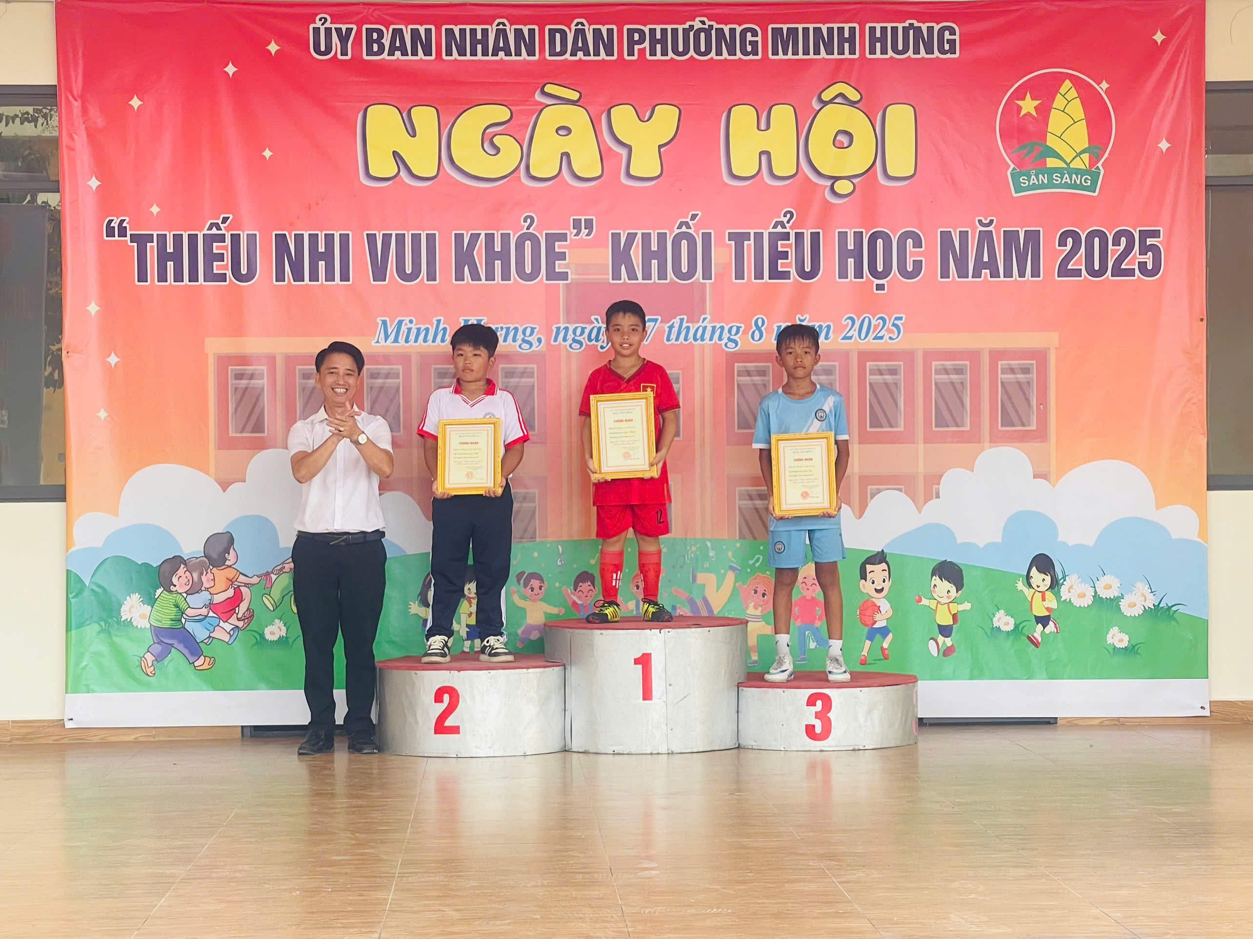 Kết thúc chương trình, Ban tổ chức đã trao giải nhất nhì ba cho các phần thi văn nghệ, các trò chơi vận động và bóng đá U11 của các trường. Đặc biệt, ở giải toàn đoàn với sự tài trợ kinh phí giải của tập đoàn Hoàng Cát, giải Nhất đã được trao cho đội thi Trường Tiểu học Minh Hưng A, giải nhì thuộc về đội thi Trường Tiểu học Minh Hưng B và giải ba được trao cho đội thi Trường TH&THCS Minh Long. Tập đoàn Hoàng Cát cũng là đơn vị đã tạo điều kiện cơ sở vật chất, trang thiết bị, sân bãi tại trường Tiểu học Marie Curie để tổ chức ngày hội.