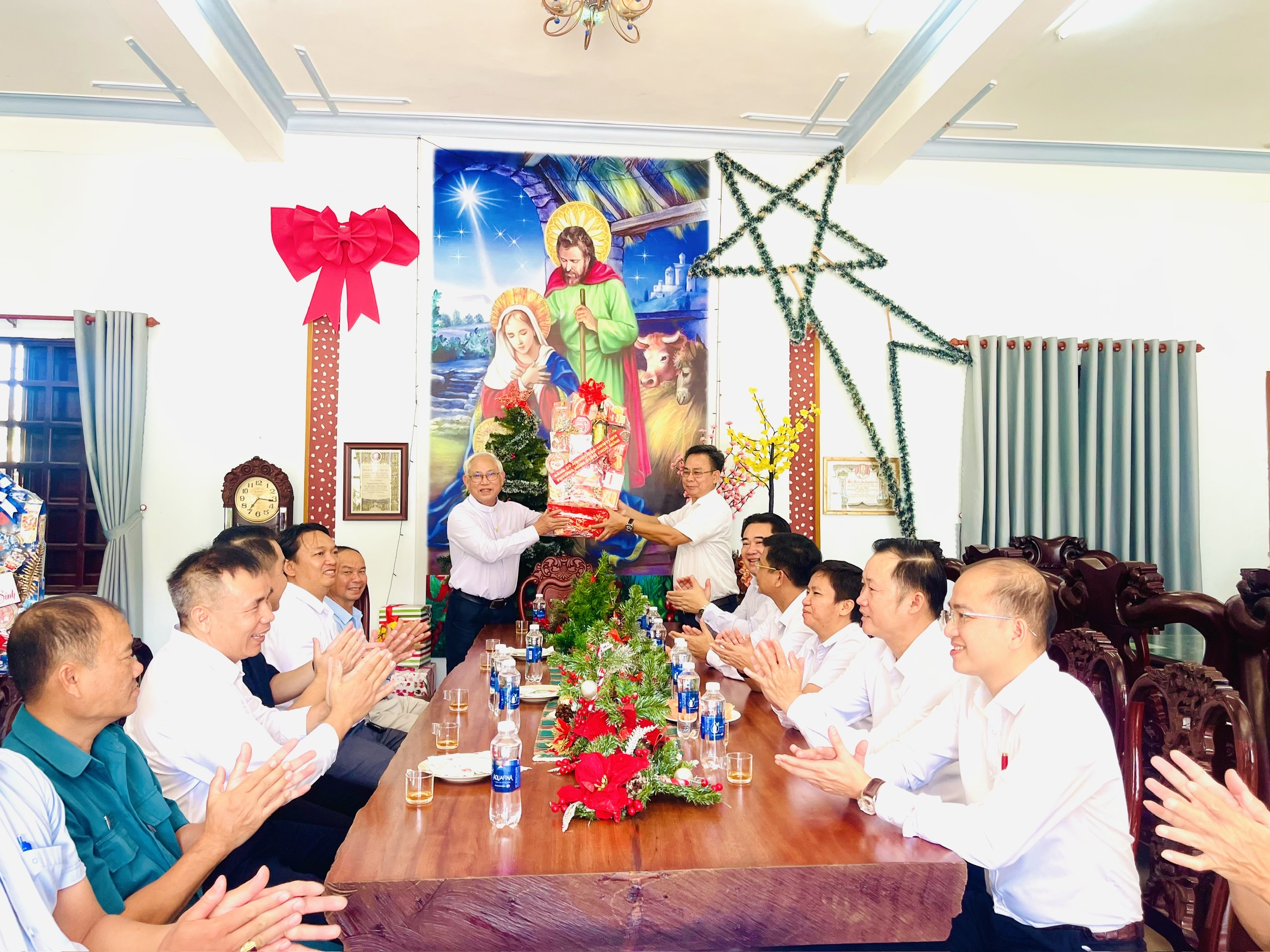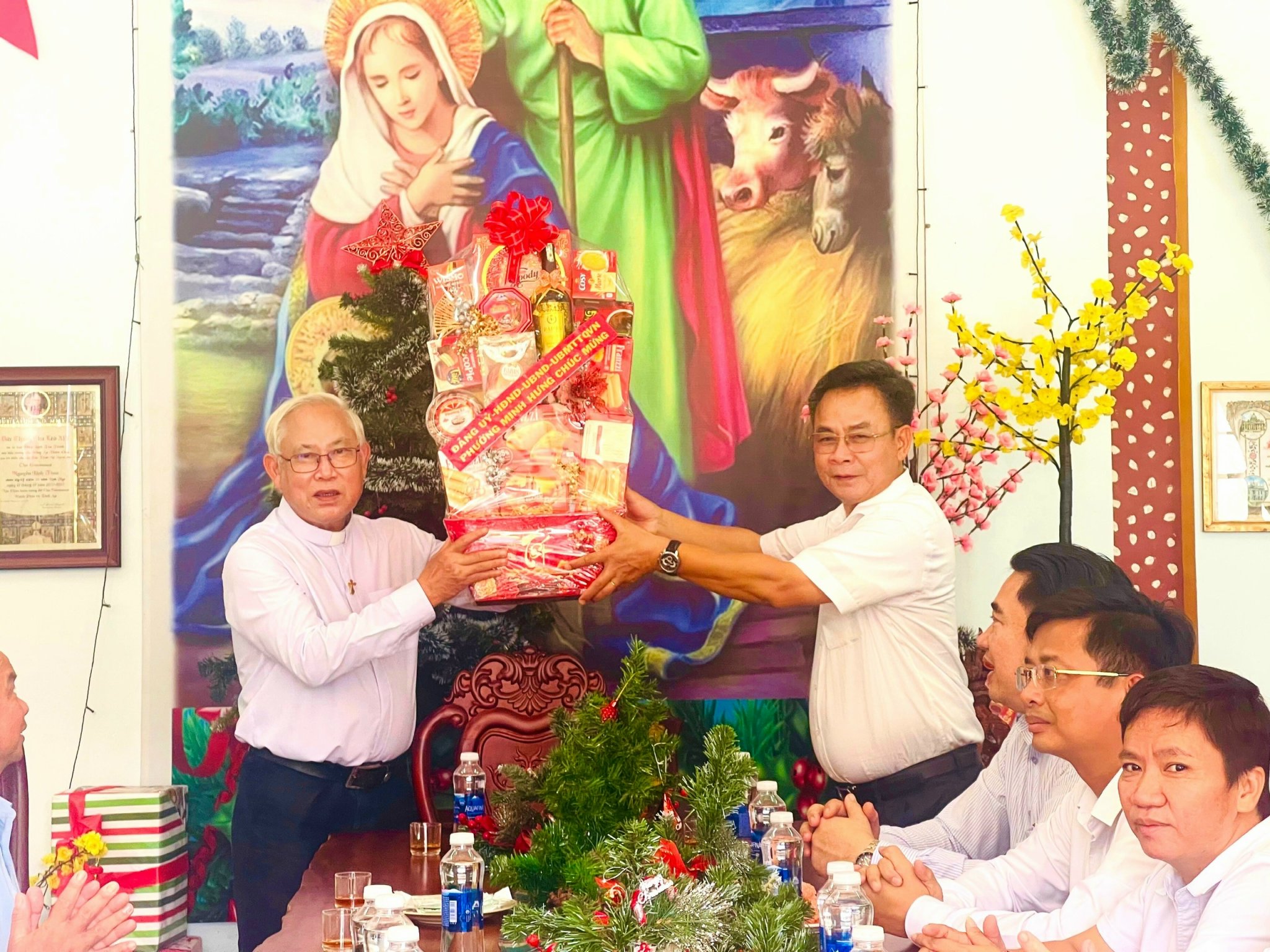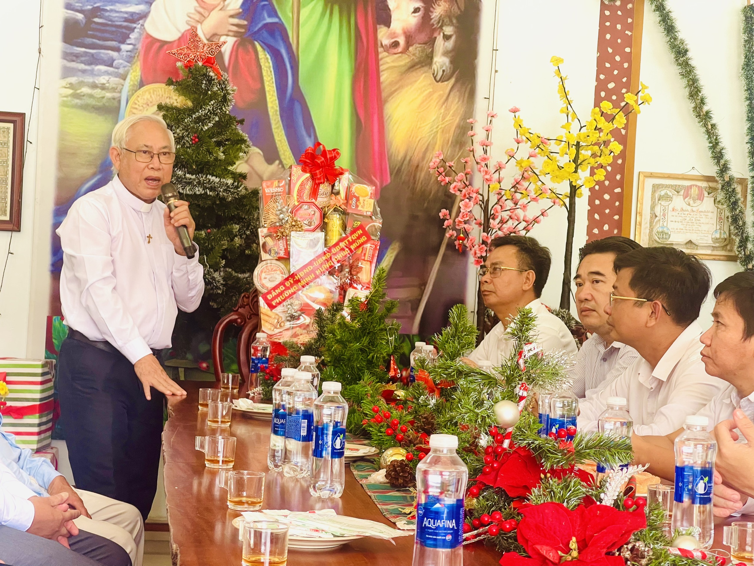 Tại các Giáo xứ, thay mặt lãnh đạo phường, ông Lê Tiến Hiếu - Bí thư Đảng ủy, Chủ tịch HĐND phường đã ân cần thăm hỏi, gửi lời chúc mừng Giáng sinh an lành, hạnh phúc đến các Linh mục Quản xứ, Hội đồng Giáo xứ và toàn thể bà con giáo dân; đồng thời trao tặng những phần quà ý nghĩa, thể hiện sự quan tâm của Đảng, chính quyền địa phương đối với các hoạt động tôn giáo. Lãnh đạo phường mong muốn bà con giáo dân đón một mùa Giáng sinh vui tươi, đầm ấm, đoàn kết; tiếp tục phát huy tinh thần sống “tốt đời, đẹp đạo”, đồng hành cùng chính quyền trong sự nghiệp xây dựng và phát triển địa phương.