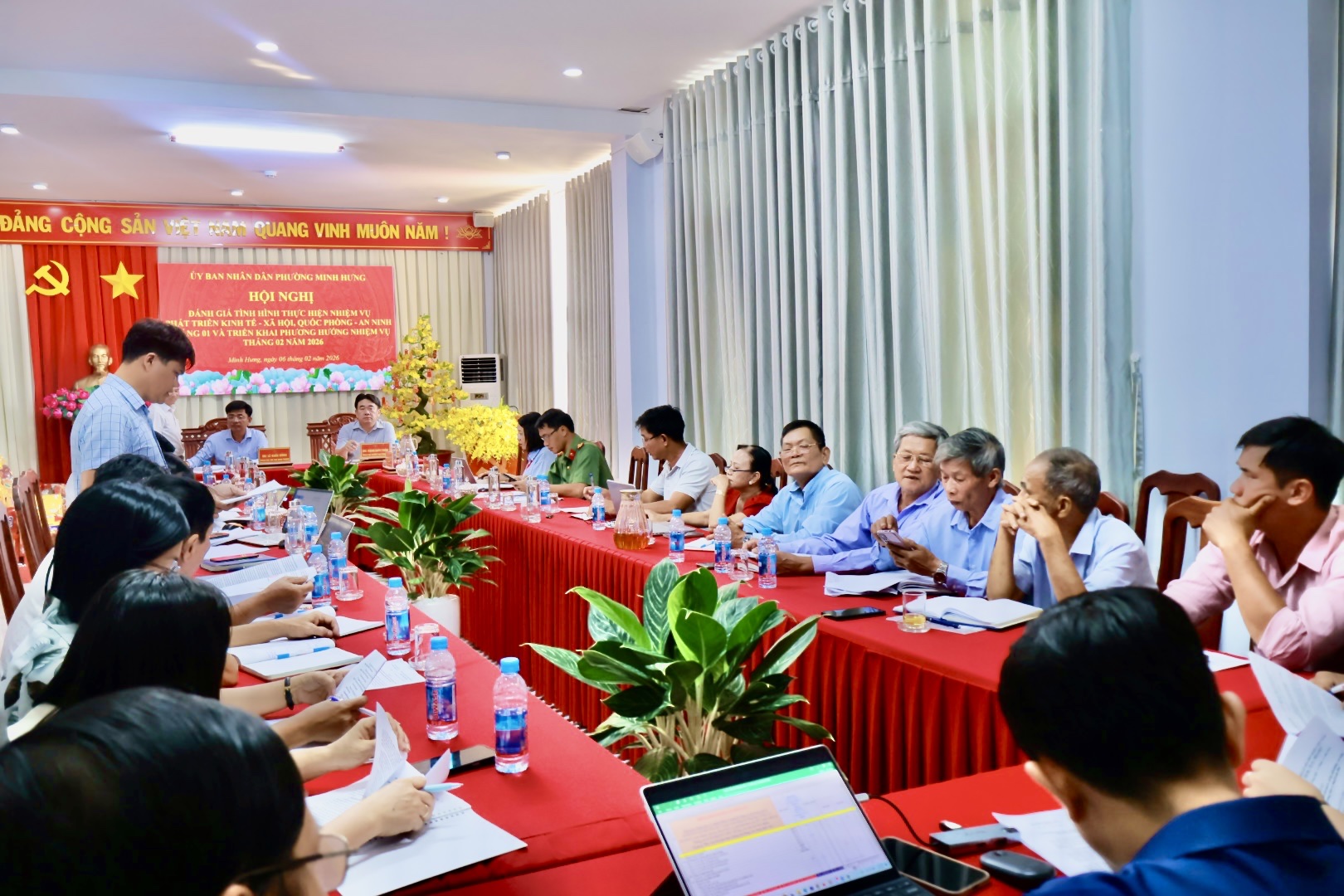 Trong tháng 01/2026, UBND phường Minh Hưng đã tập trung lãnh đạo, chỉ đạo triển khai đồng bộ các nhiệm vụ và đạt được nhiều kết quả tích cực trên các lĩnh vực. Công tác quản lý nhà nước tiếp tục được tăng cường; an ninh chính trị, trật tự an toàn xã hội được giữ vững. Công tác bình ổn thị trường và chăm lo Tết Nguyên đán Bính Ngọ 2026 cho các đối tượng chính sách, người có công và hộ khó khăn được triển khai kịp thời, hiệu quả. Cải cách hành chính, chuyển đổi số, kỷ luật, kỷ cương hành chính được quan tâm chỉ đạo sát sao.