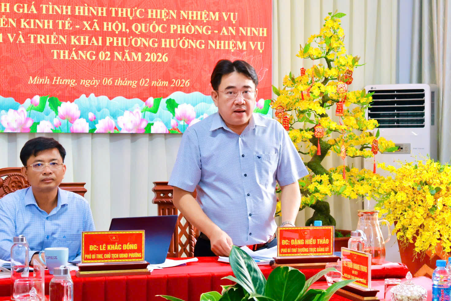 Phát biểu kết luận hội nghị, ông Lê Khắc Đồng – Chủ tịch UBND phường đề nghị các cơ quan, đơn vị bám sát chương trình công tác năm 2026, tập trung thực hiện hiệu quả các nhiệm vụ trọng tâm; tăng cường thu ngân sách, quản lý chặt chẽ đất đai, xây dựng, môi trường; đẩy nhanh tiến độ các công trình, dự án trọng điểm; chăm lo đời sống Nhân dân, bảo đảm an sinh xã hội; chuẩn bị chu đáo cho công tác bầu cử đại biểu Quốc hội khóa XVI và HĐND các cấp nhiệm kỳ 2026–2031; đẩy mạnh cải cách hành chính, chuyển đổi số; giữ vững quốc phòng – an ninh, trật tự an toàn xã hội. Đồng thời, đề nghị các khu phố phát huy tinh thần trách nhiệm, tích cực phối hợp với chính quyền trong công tác tuyên truyền, vận động Nhân dân thực hiện tốt các chủ trương, chính sách và phong trào của địa phương.