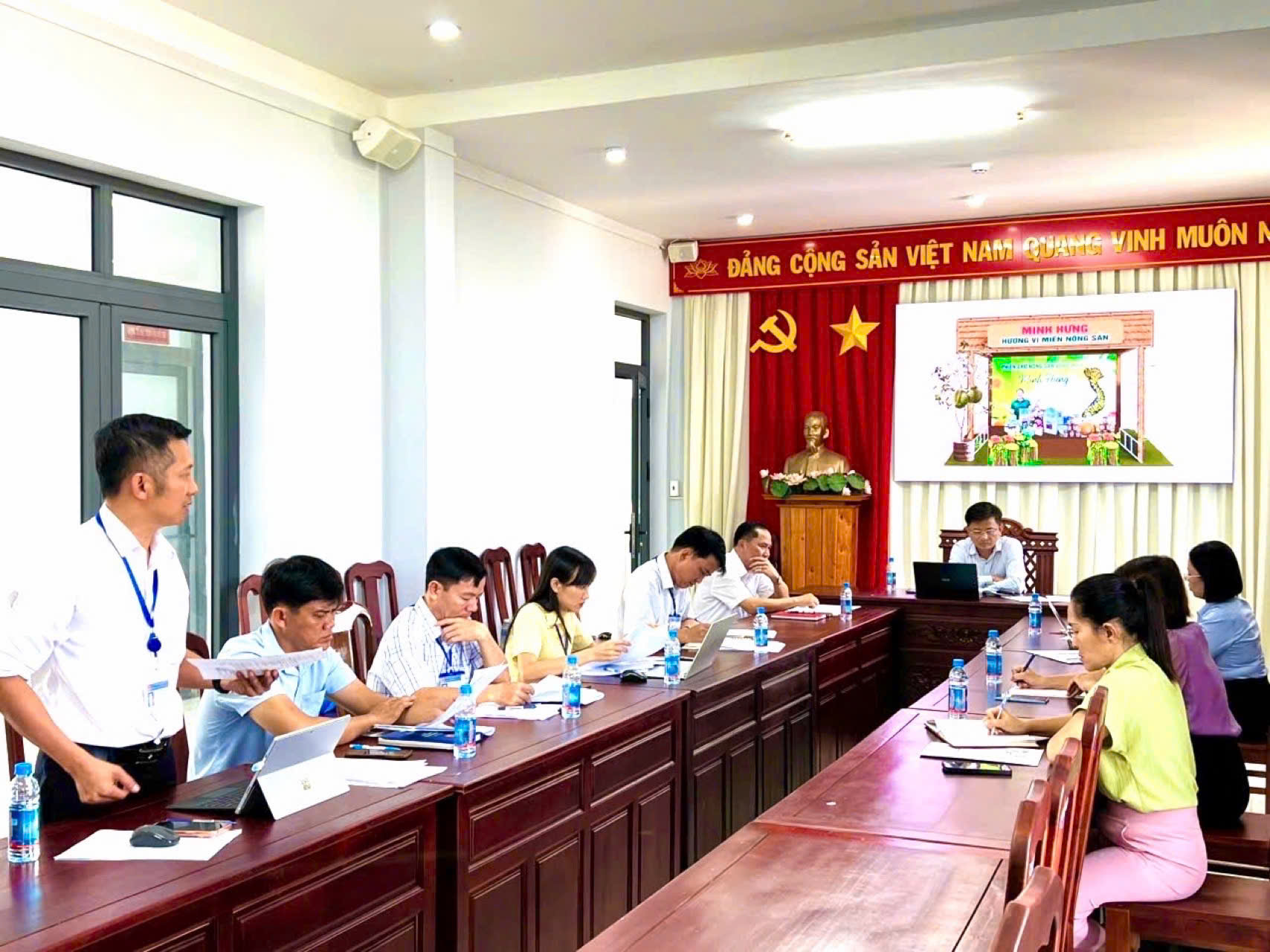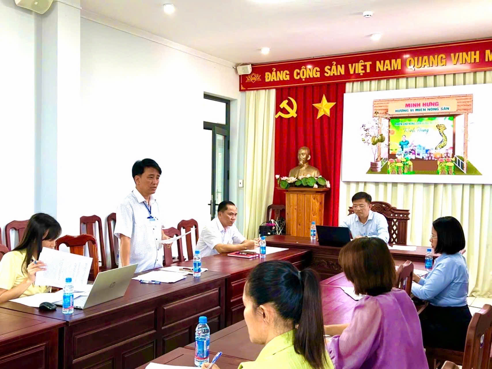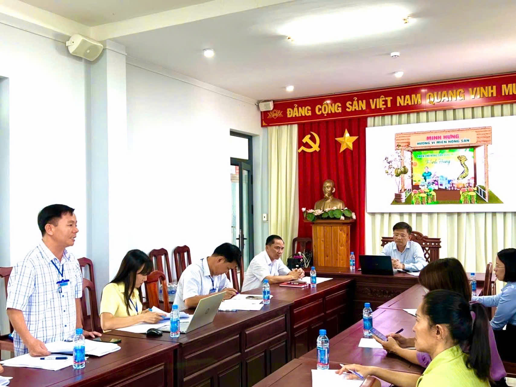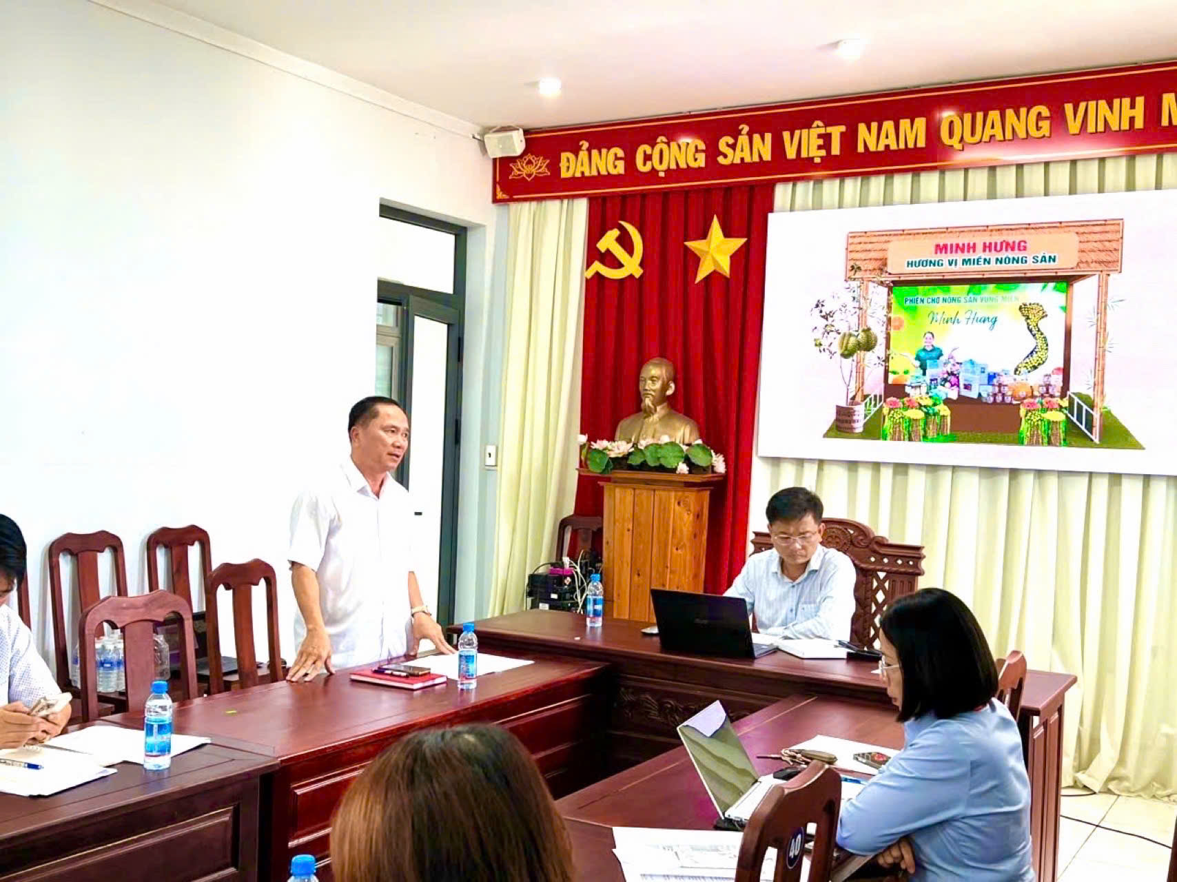 Để thực hiện đảm bảo các nội dung tham gia “Phiên chợ nông sản vùng miền Bình Đông”, Chủ tịch UBND phường Lê Khắc Đồng đề nghị UBMTTQ Việt Nam phường và Phòng Kinh tế, Hạ tầng và Đô thị phối hợp hoàn thiện hồ sơ, danh mục sản phẩm trưng bày, lựa chọn các sản phẩm tiêu biểu, đặc trưng nhất của địa phương; bảo đảm tiến độ, hình thức trưng bày chuyên nghiệp, thể hiện được hình ảnh, nét đặc sắc của phường Minh Hưng; đồng thời chuẩn bị đầy đủ nhân sự, tài liệu giới thiệu để tham gia hiệu quả, thiết thực.