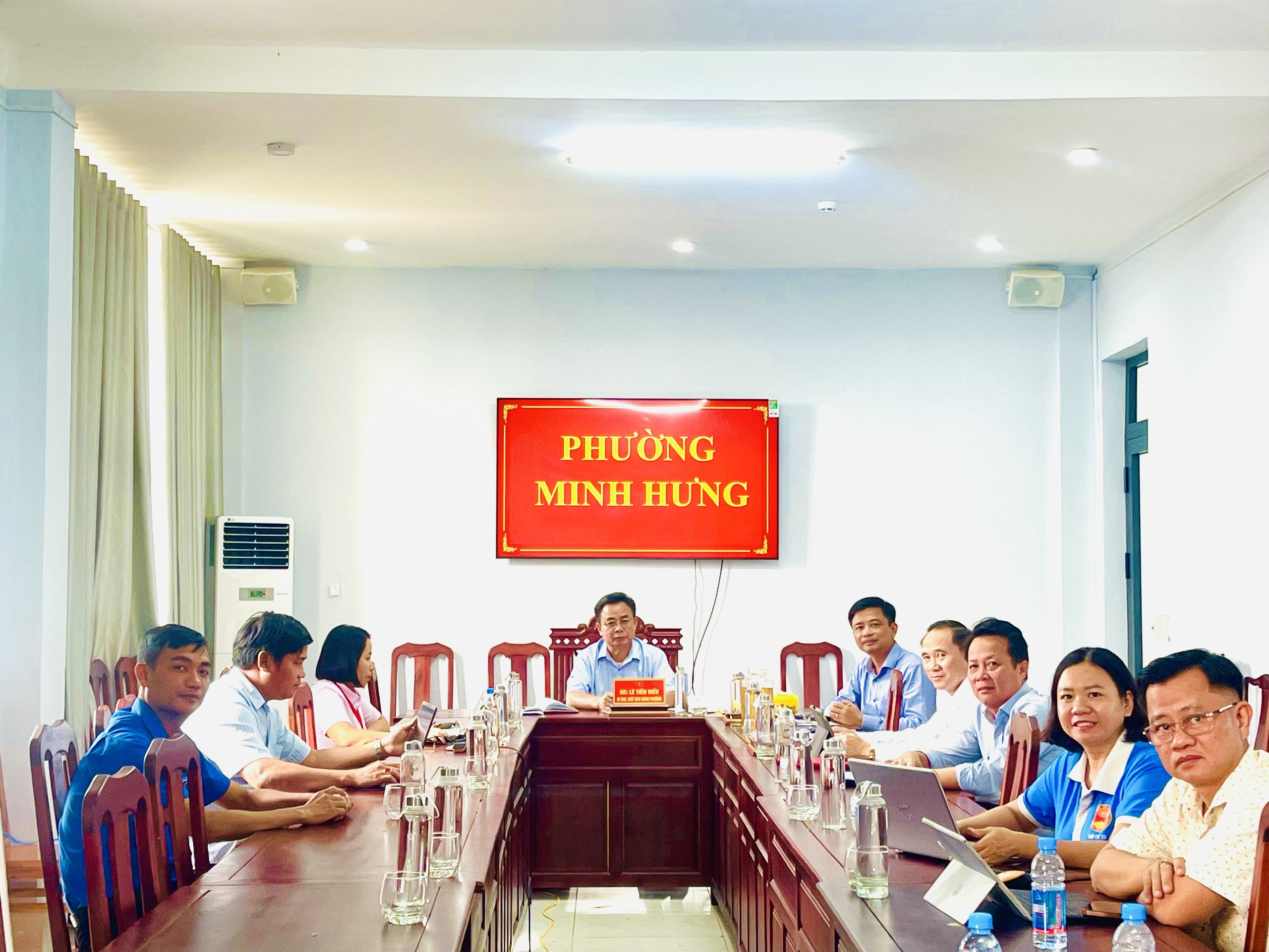 Tại điểm cầu phường Minh Hưng, hội nghị do đồng chí Lê Tiến Hiếu – Bí thư Đảng ủy, Chủ tịch HĐND phường chủ trì, với sự tham dự của lãnh đạo Đảng ủy, UBND, lãnh đạo các phòng, ban, trung tâm trực thuộc và lãnh đạo các đoàn thể phường