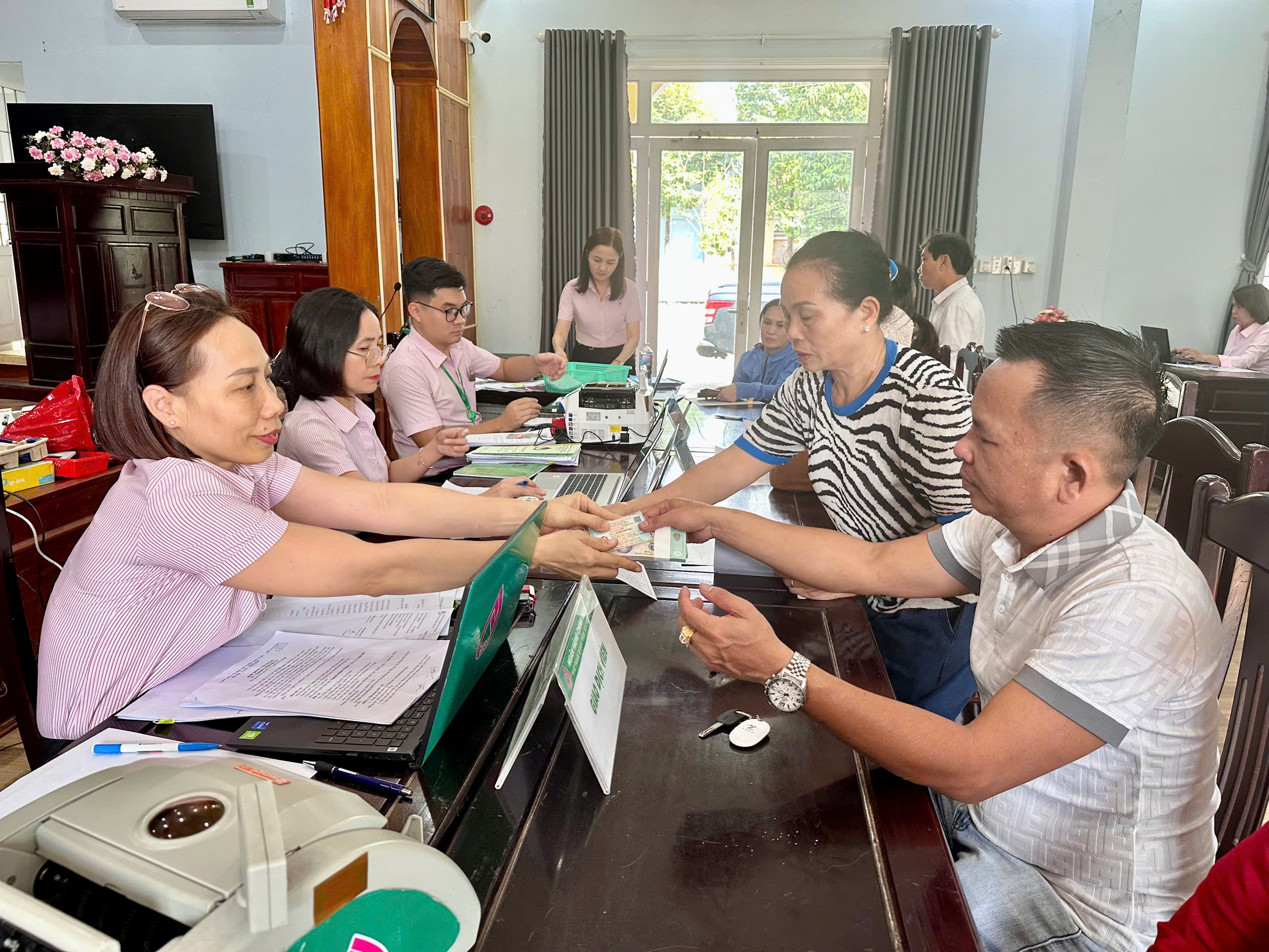 Theo đó, phường Minh Hưng được Phòng Giao dịch Ngân hàng Chính sách xã hội Chơn Thành phân bổ tổng nguồn vốn 4.800.000.000 đồng để cho vay hỗ trợ tạo việc làm thông qua các tổ tiết kiệm và vay vốn do các Hội, đoàn thể chính trị – xã hội quản lý. Ngày 27/01/2026, tại Hội trường UBMTQ Việt Nam Phường, các Hội Đoàn thể nhận ủy thác đã chứng kiến Phòng Giao dịch Ngân hàng Chính sách xã hội Chơn Thành giải ngân nguồn vốn đã kịp thời cho 49 thành viên vay vốn, góp phần hỗ trợ người lao động phát triển sản xuất, duy trì và mở rộng việc làm, ổn định thu nhập và cải thiện đời sống.