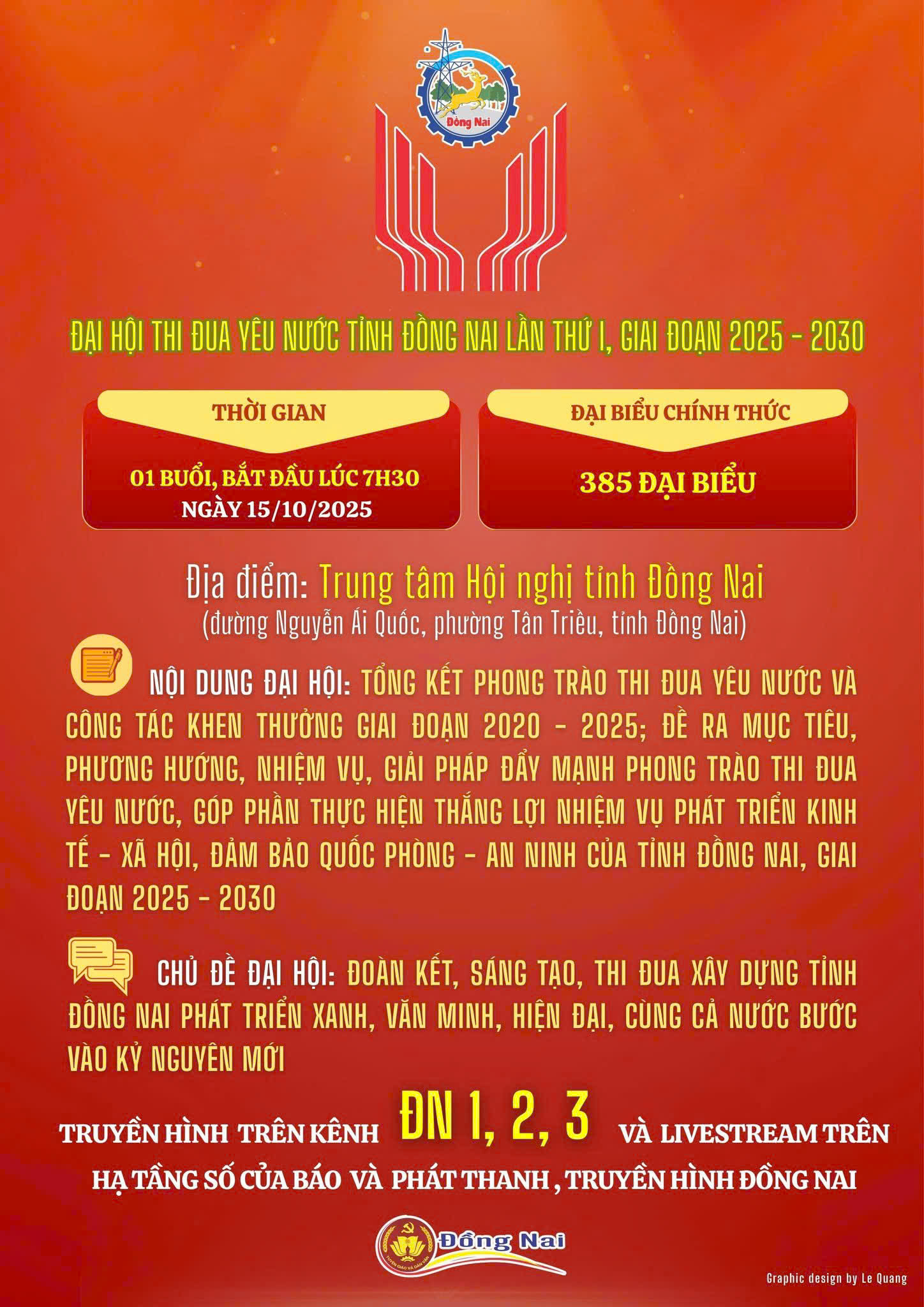 “Đoàn kết, sáng tạo, thi đua xây dựng tỉnh Đồng Nai phát triển xanh, văn minh, hiện đại, cùng cả nước bước vào kỷ nguyên mới.” 📺