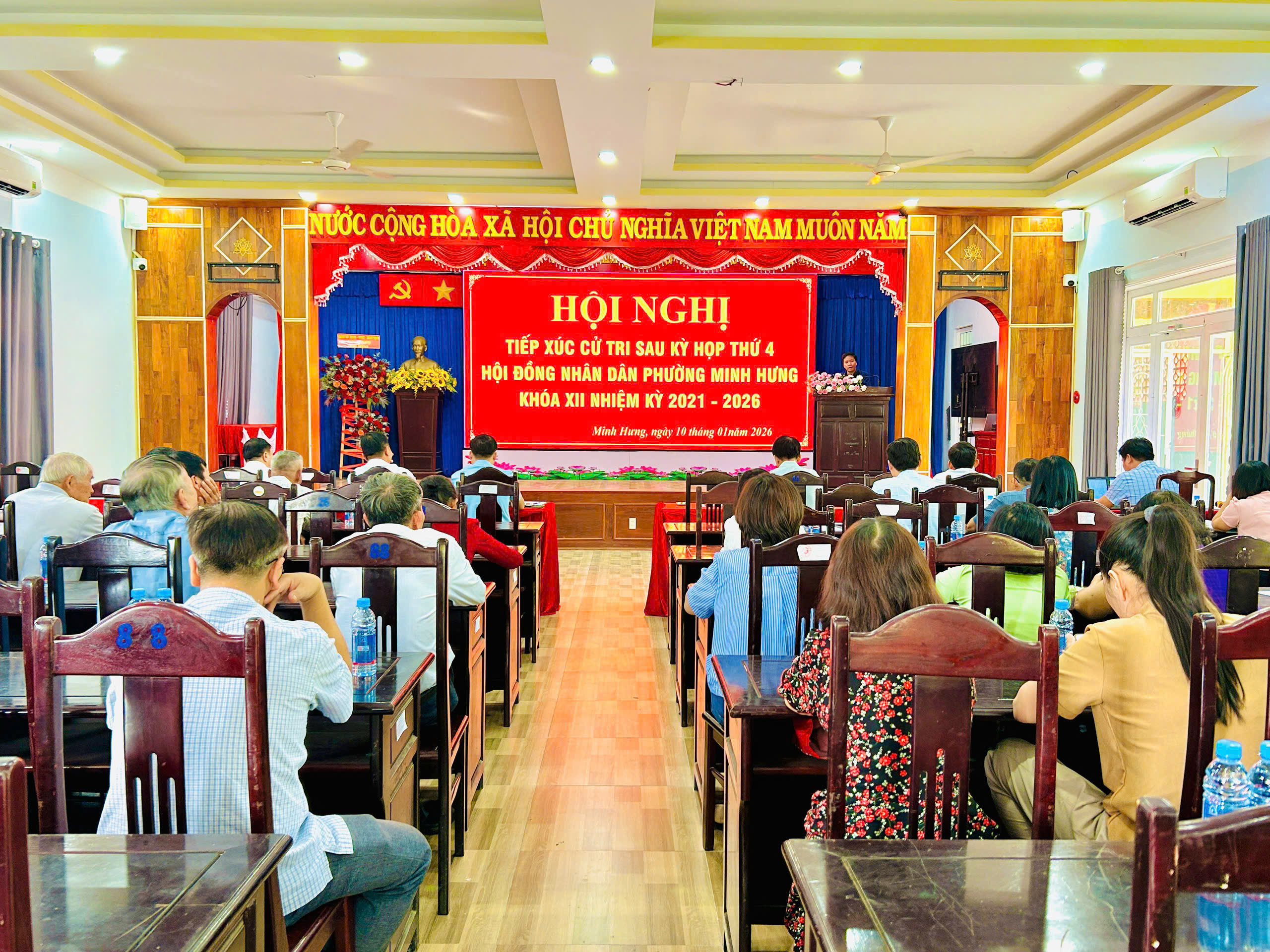 Hội nghị tiếp xúc cử tri sau Kỳ họp thứ 4 HĐND phường Minh Hưng khóa XII đã diễn ra trong không khí nghiêm túc, dân chủ và trách nhiệm, qua đó tiếp tục khẳng định vai trò, trách nhiệm của đại biểu HĐND phường trước cử tri, góp phần củng cố niềm tin của Nhân dân đối với chính quyền địa phương và phát huy quyền làm chủ của cử tri trên địa bàn phường.