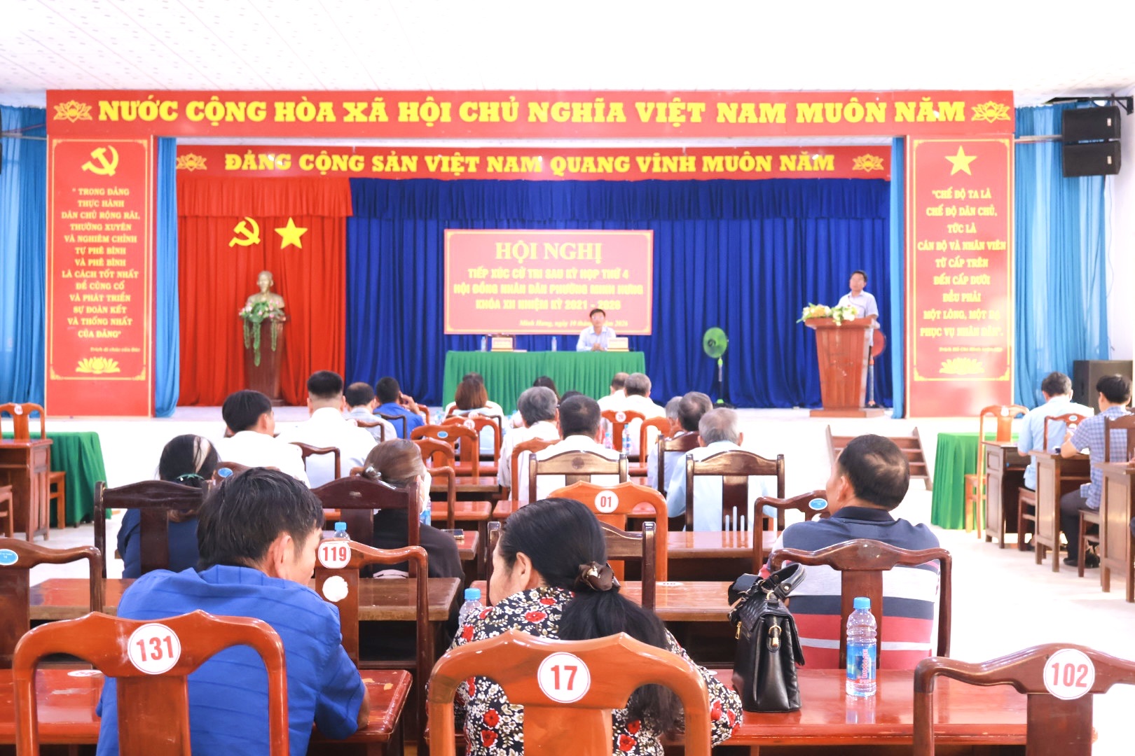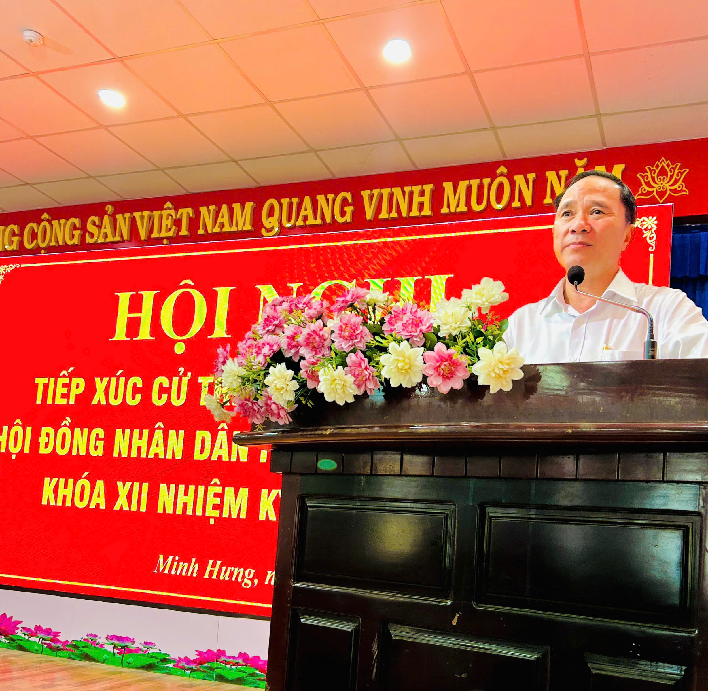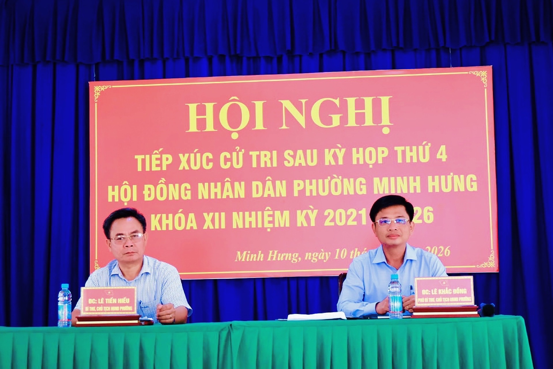 Tại hội trường UBND phường Minh Hưng, tổ đại biểu số 01, 02, và 03 HĐND phường dự và chủ trì hội nghị có ông Lê Tiến Hiếu - Bí thư Đảng ủy, Chủ tịch HĐND phường; ông Lê Khắc Đồng - Phó Bí thư Đảng ủy, Chủ tịch UBND phường; tại hội trường Khối Mặt trận và các đoàn thể phường tổ đại biểu số 4 và 5 HĐND phường do bà Đinh Thị Tuyết Sơn - Chủ tịch UBMTTQVN phường dự và chủ trì; cùng dự có các đại biểu HĐND phường khóa XII. Tham dự Hội nghị còn có đại diện lãnh đạo Đảng ủy, HĐND, UBND, UBMTTQVN phường; lãnh đạo các ban, ngành, đoàn thể; đại diện các chi bộ, khu phố, Ban Công tác Mặt trận và đông đảo cử tri trên địa bàn phường.