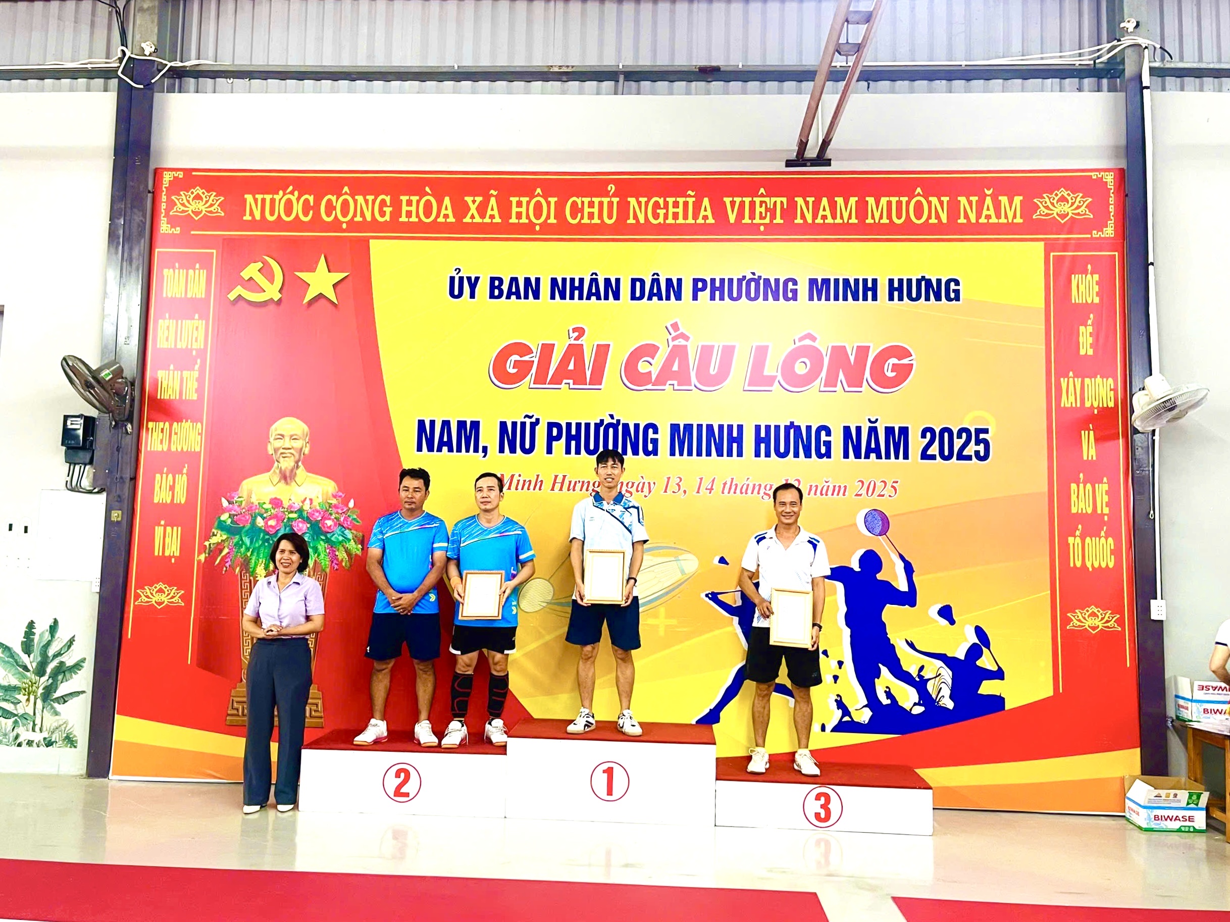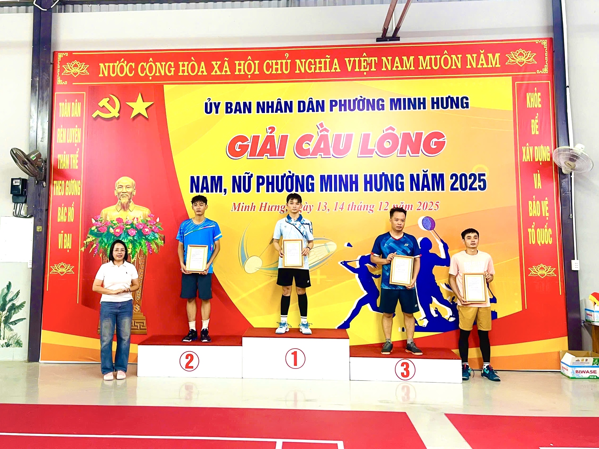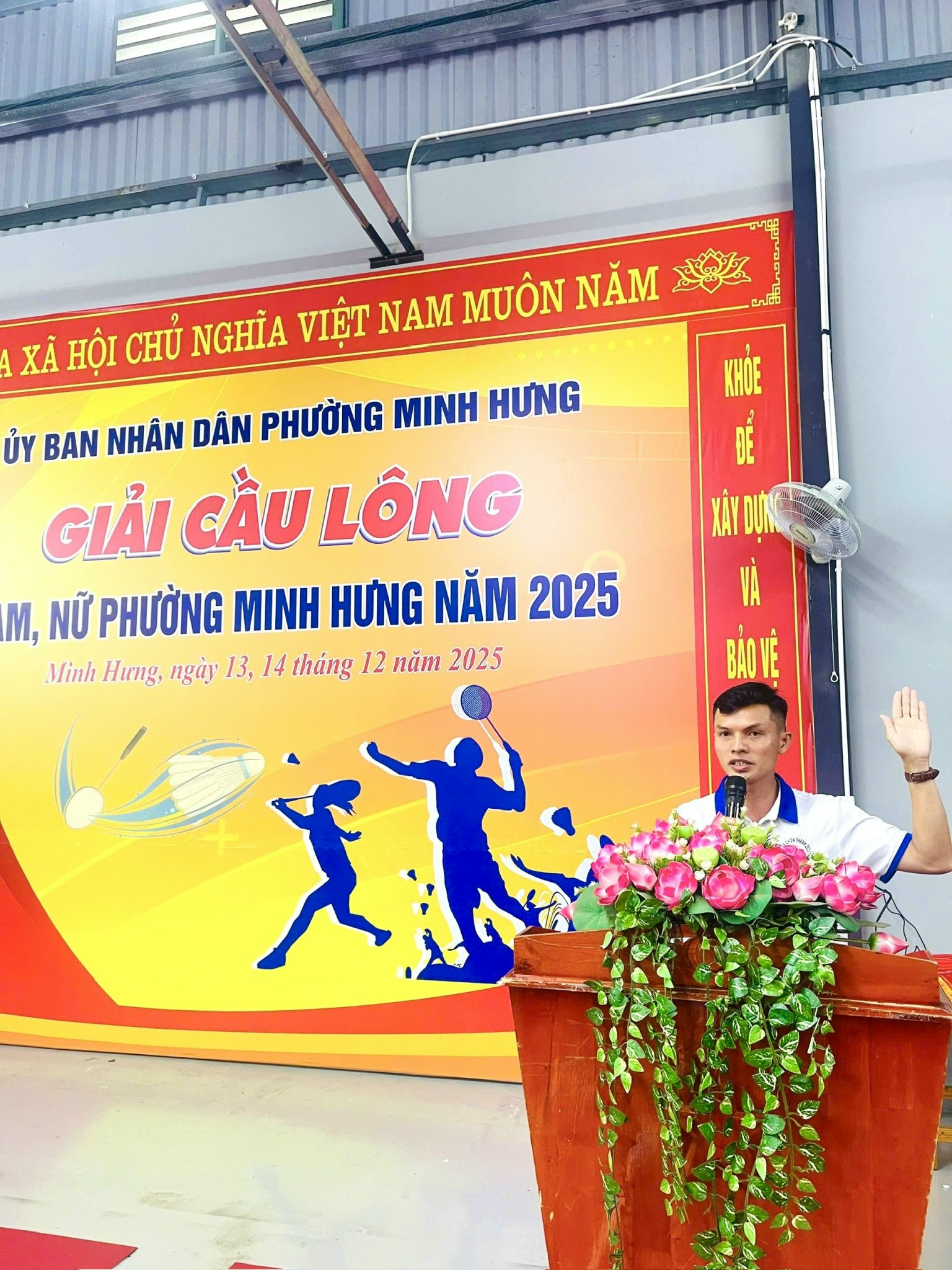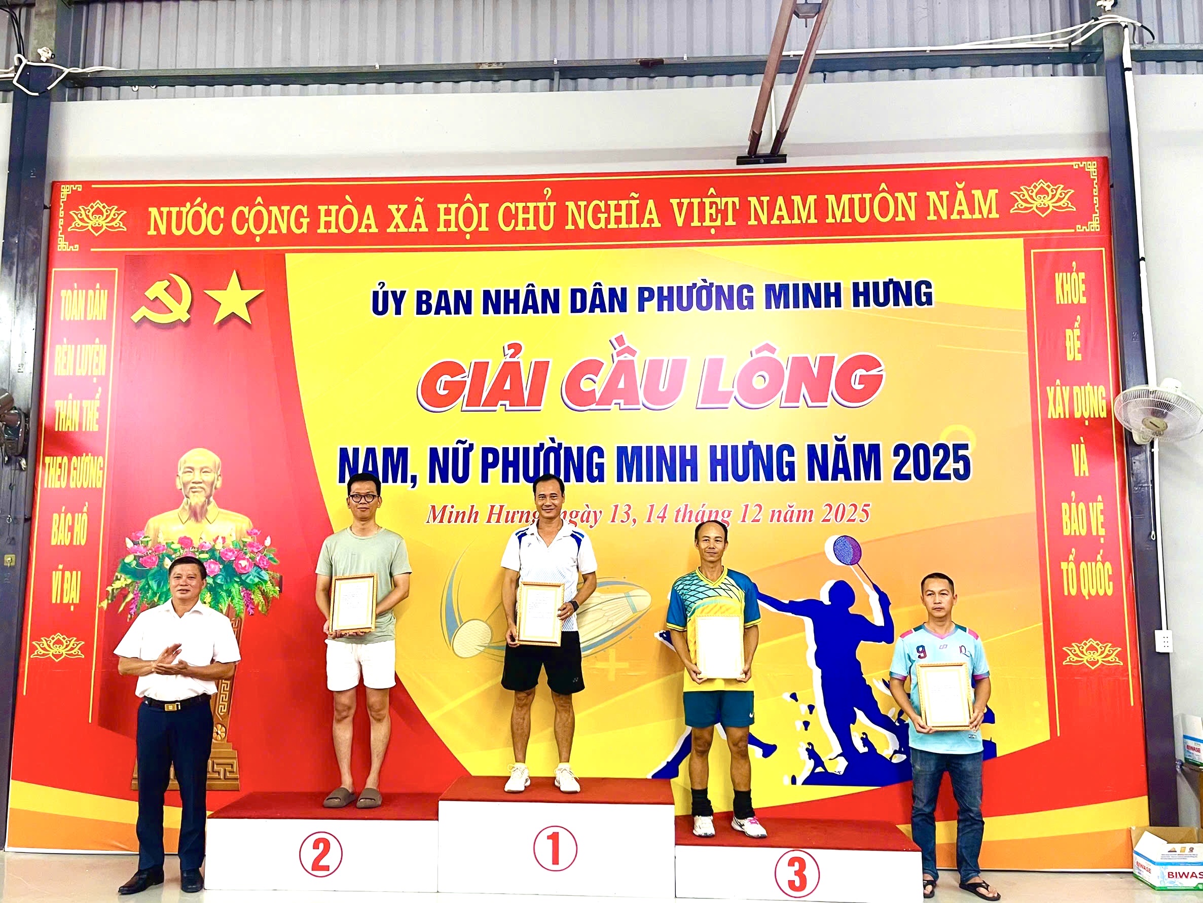 Giải Cầu lông nam, nữ phường Minh Hưng năm 2025 diễn ra thành công tốt đẹp, tạo không khí thi đua sôi nổi trong các tầng lớp nhân dân, góp phần nâng cao đời sống văn hóa tinh thần và thúc đẩy phong trào thể dục thể thao quần chúng trên địa bàn phường.
