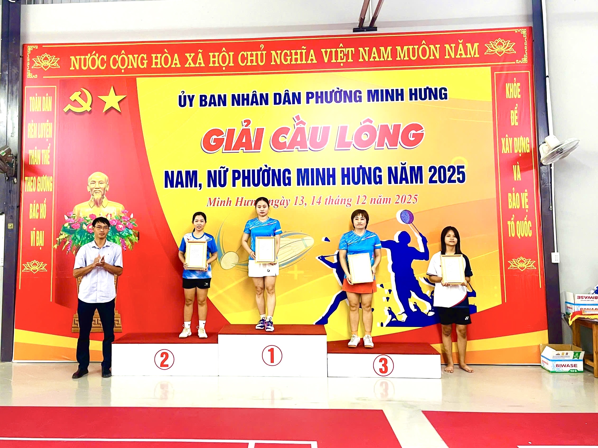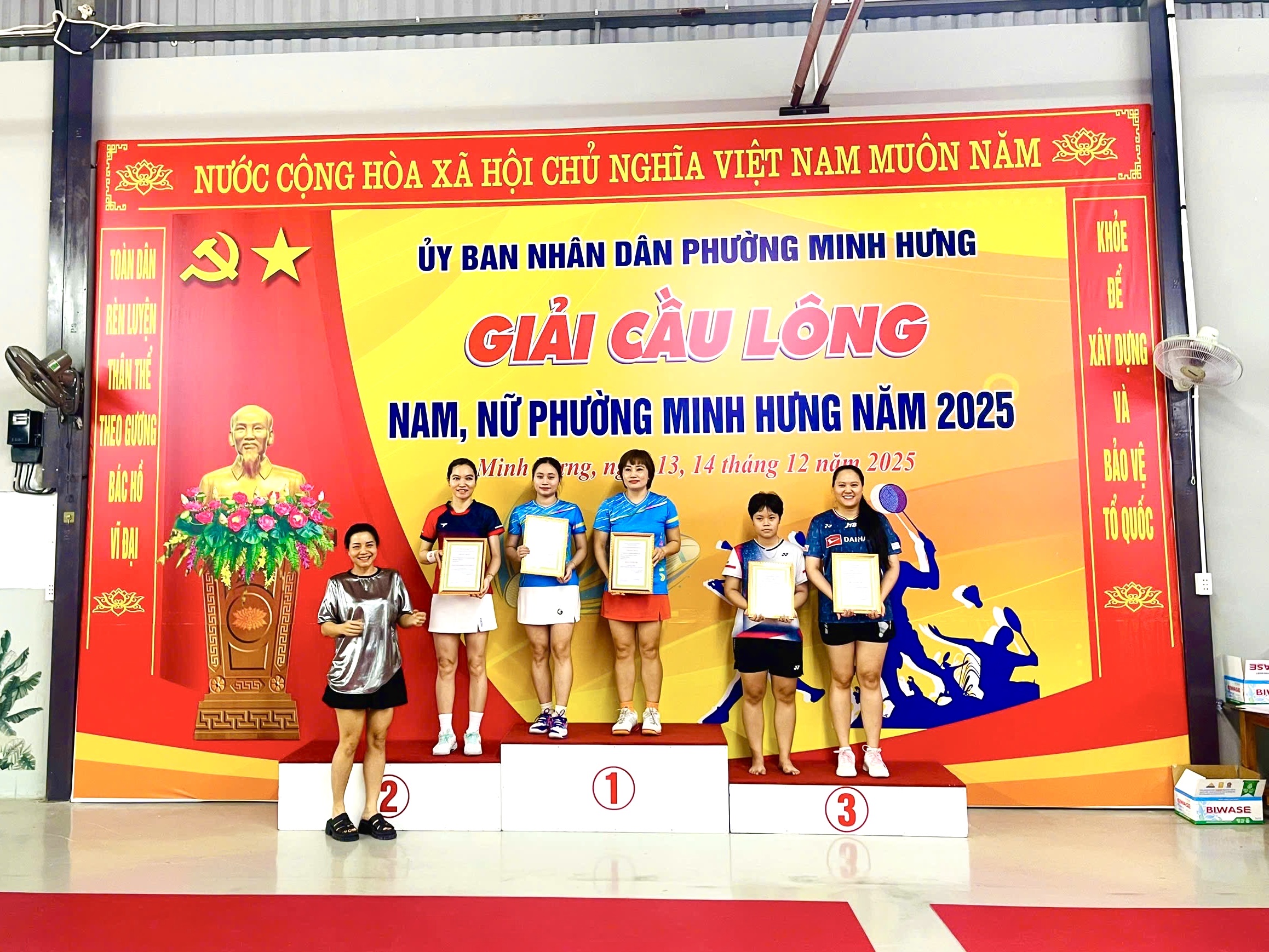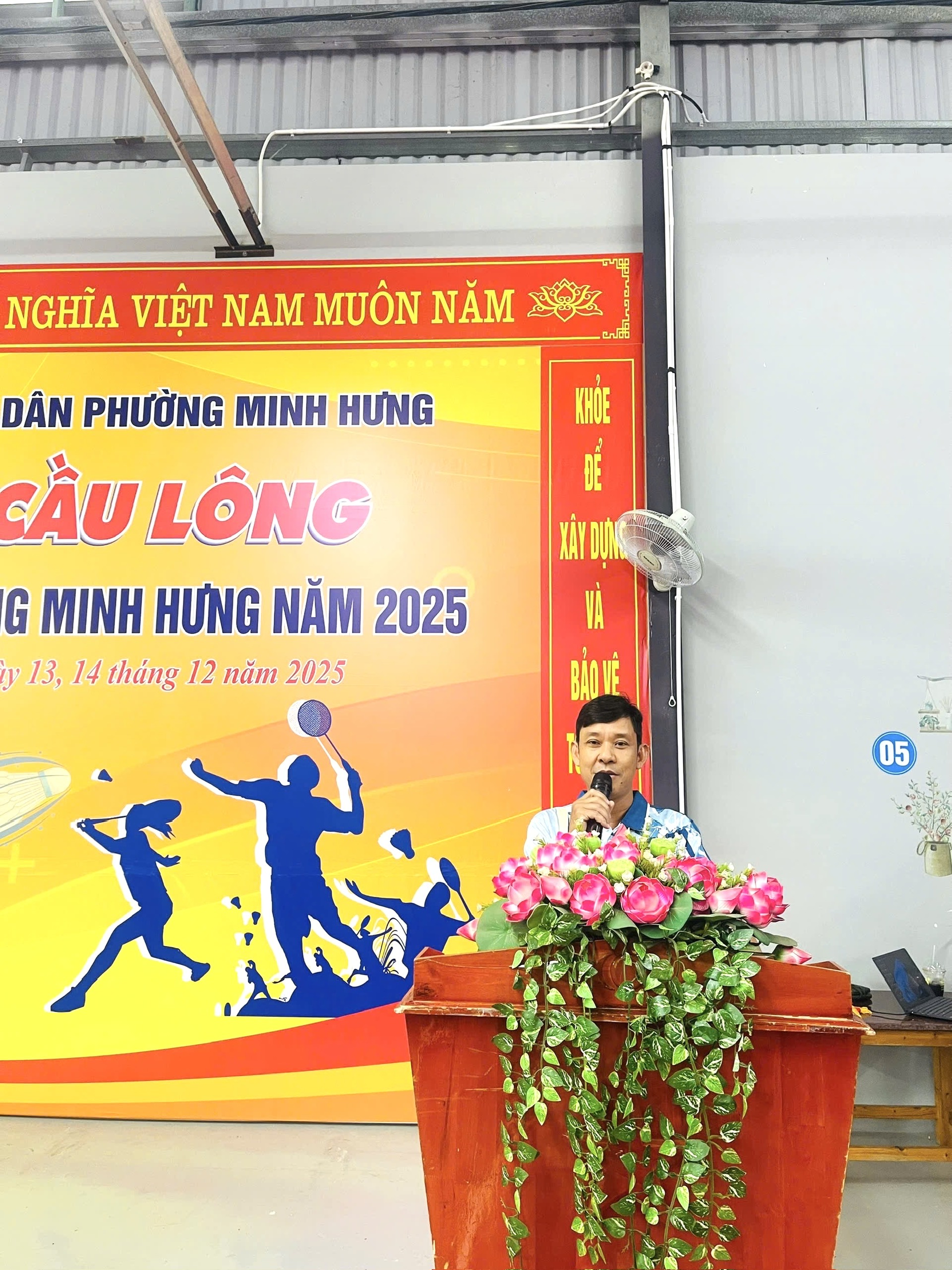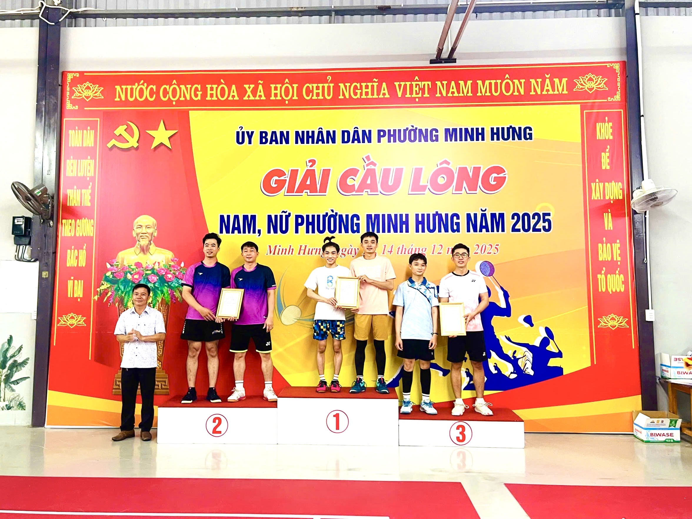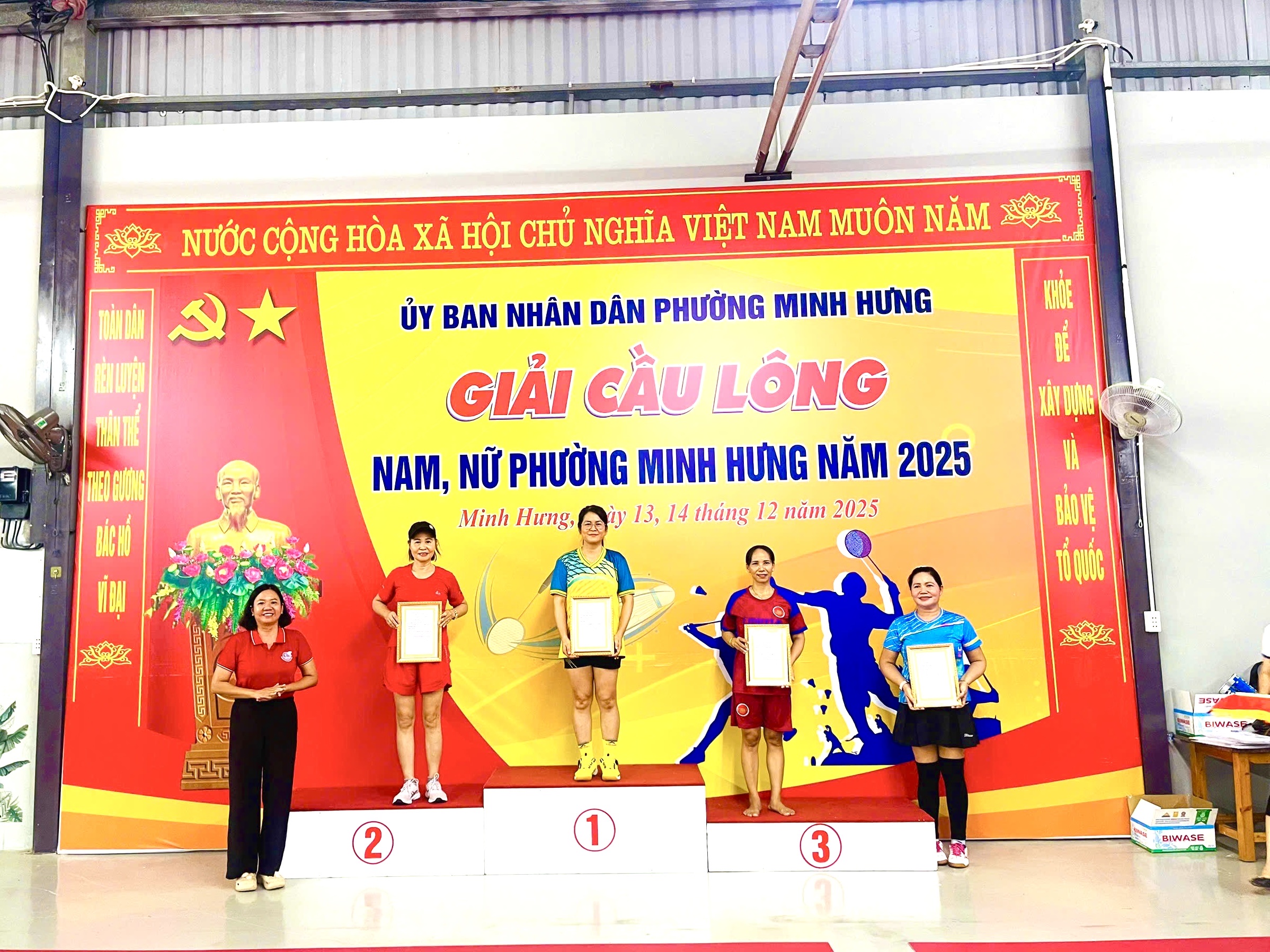 Giải Cầu lông nam, nữ phường Minh Hưng năm 2025 diễn ra thành công tốt đẹp, tạo không khí thi đua sôi nổi trong các tầng lớp nhân dân, góp phần nâng cao đời sống văn hóa tinh thần và thúc đẩy phong trào thể dục thể thao quần chúng trên địa bàn phường.