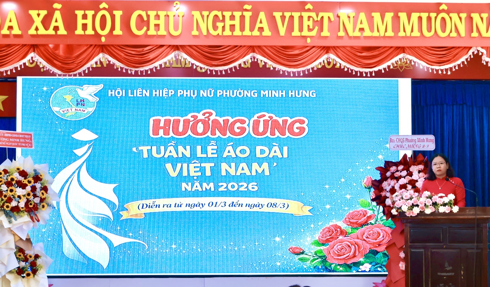 Chương trình họp mặt diễn ra với nhiều nội dung phong phú: văn nghệ chào mừng do các chi hội phụ nữ biểu diễn; phát động “Tuần lễ áo dài” năm 2026 diễn ra từ ngày 01/3 đến ngày 08/3 và phát động hưởng ứng “Cuộc thi trực tuyến tìm hiểu các Nghị quyết Đại hội và pháp luật về bầu cử đại biểu Quốc hội và Hội đồng nhân dân các cấp” bất đầu từ ngày 02/3 đến hết ngày 29/3/2026.