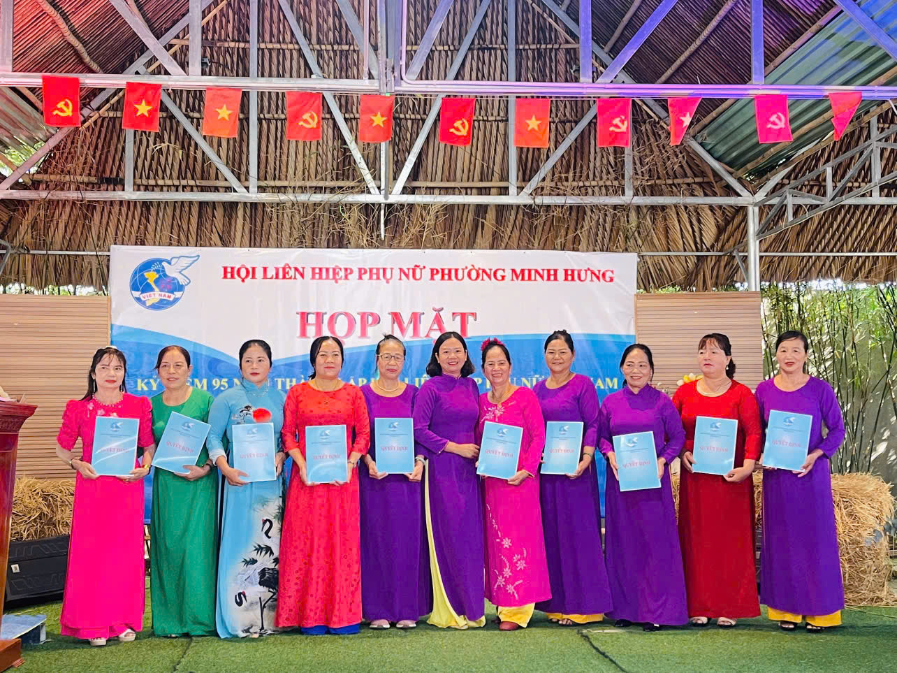 Tại buổi họp mặt, đồng chí Nguyễn Thị Vân – Chủ tịch Hội LHPN phường đã phát biểu ôn lại truyền thống vẻ vang 95 năm xây dựng và phát triển của Hội LHPN Việt Nam; khẳng định vai trò, vị thế và những đóng góp to lớn của phụ nữ Việt Nam trong sự nghiệp cách mạng, xây dựng và bảo vệ Tổ quốc. Đồng thời, Hội cũng biểu dương, khen thưởng 04 tập thể, cá nhân có đóng góp tích cực trong phong trào văn nghệ chào mừng Đại hội đại biểu phụ nữ phường lần thứ I, nhiệm kỳ 2025 – 2030 và trao quyết định công nhận 23 chi hội trưởng và 23 chi hội phó phụ nữ của 20 khu dân cư và 03 chi hội trực thuộc Hội LHPN phường.