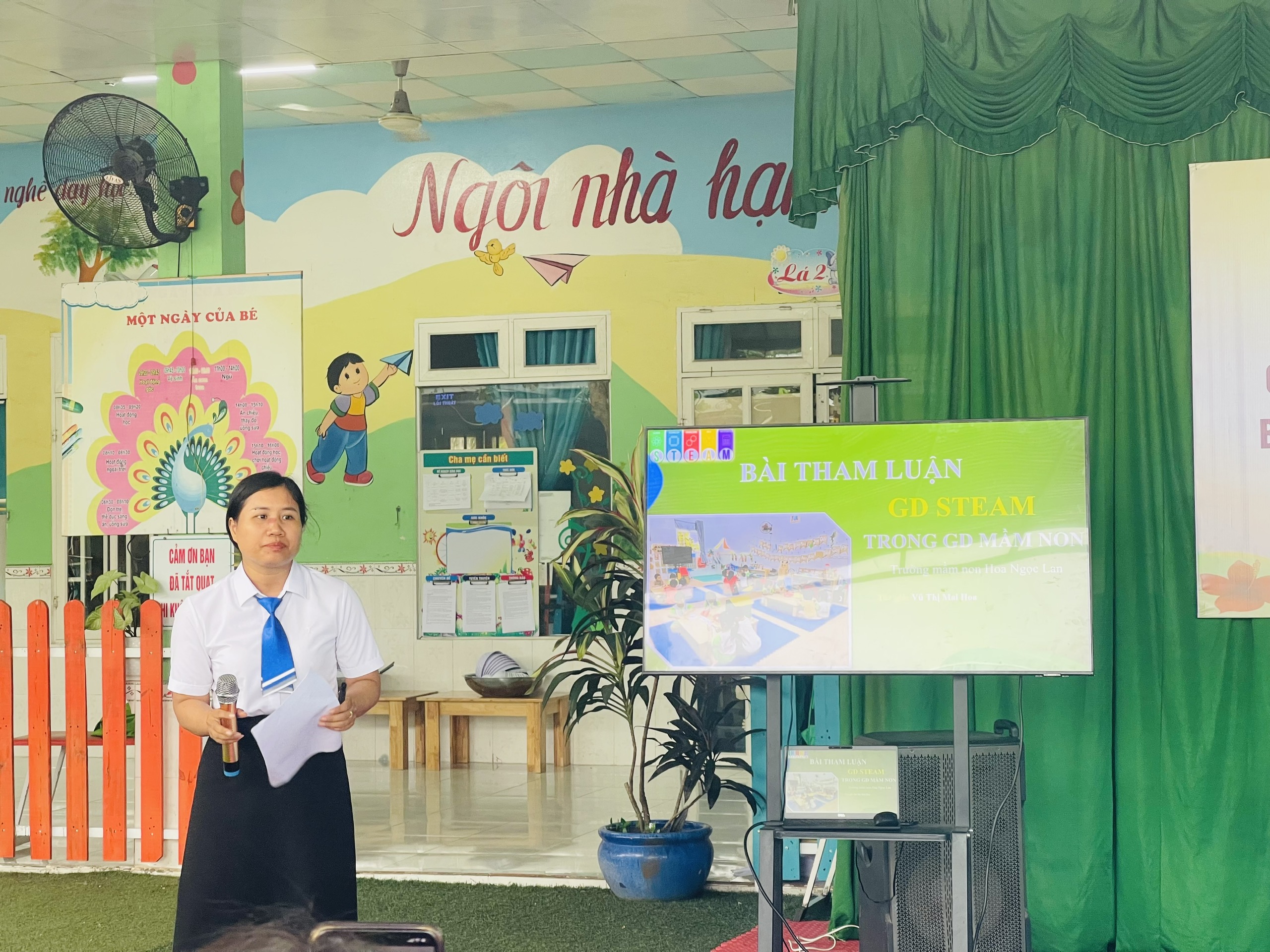 Phát biểu chỉ đạo tại Hội thảo, ông Nguyễn Văn Diễn ghi nhận những nỗ lực của các cơ sở giáo dục mầm non trên địa bàn trong việc tổ chức bếp ăn bán trú 1 chiều, công tác đảm bảo vệ sinh an toàn thực phẩm; đồng thời đề nghị các trường tiếp tục tăng cường phối hợp, đổi mới phương pháp chăm sóc, giáo dục và chú trọng ứng dụng công nghệ thông tin, chuyển đổi số trong quản lý, nhằm đáp ứng yêu cầu nâng cao chất lượng giáo dục trong năm học 2025–2026 và những năm học tiếp theo.