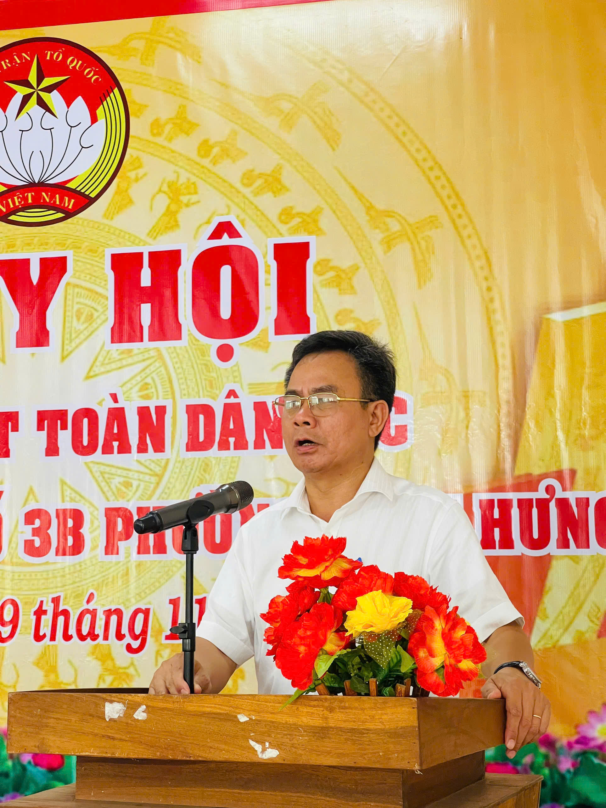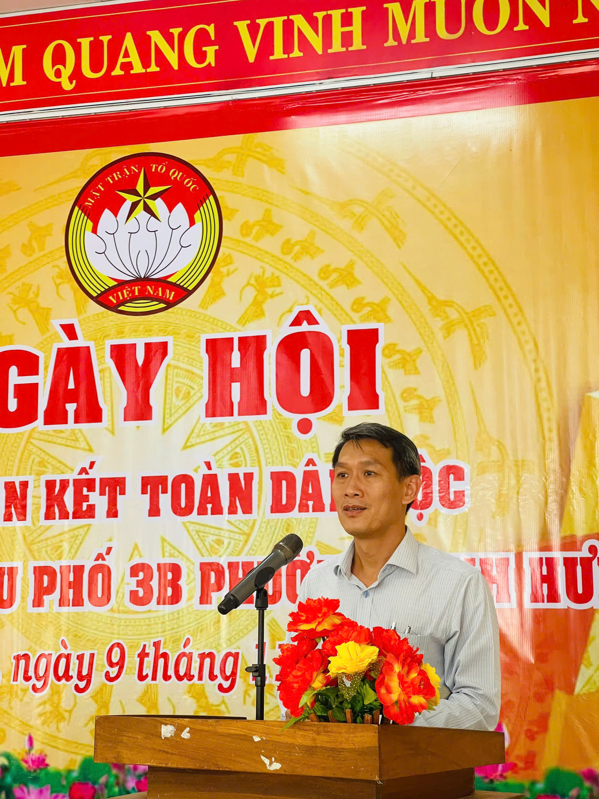 Phát biểu tại ngày hội, ông Đỗ Đức Hòa biểu dương tinh thần đoàn kết, nỗ lực của Nhân dân khu phố 3B trong các phong trào thi đua yêu nước, chăm lo an sinh xã hội, phát triển kinh tế - văn hóa - xã hội và bảo đảm quốc phòng - an ninh. Ông mong muốn toàn thể nhân dân khu phố tiếp tục phát huy sức mạnh đại đoàn kết, chung tay xây dựng khu dân cư ngày càng giàu đẹp, văn minh, nghĩa tình.