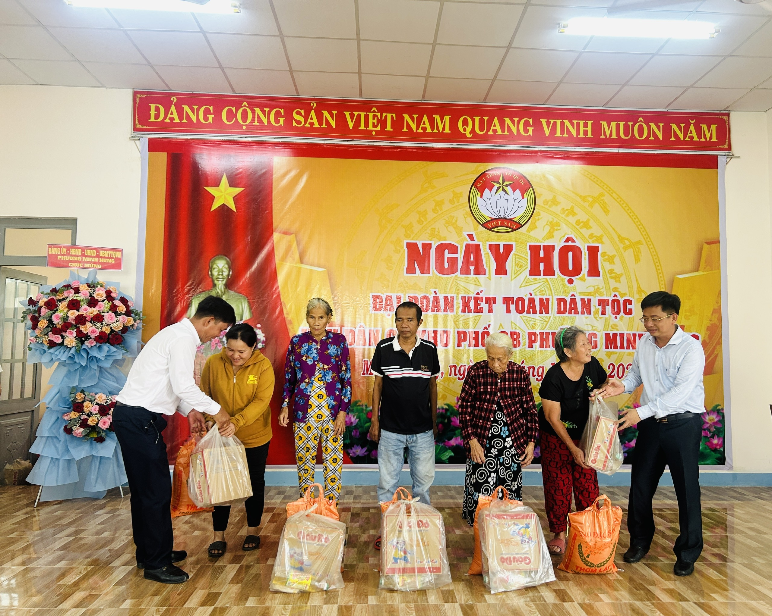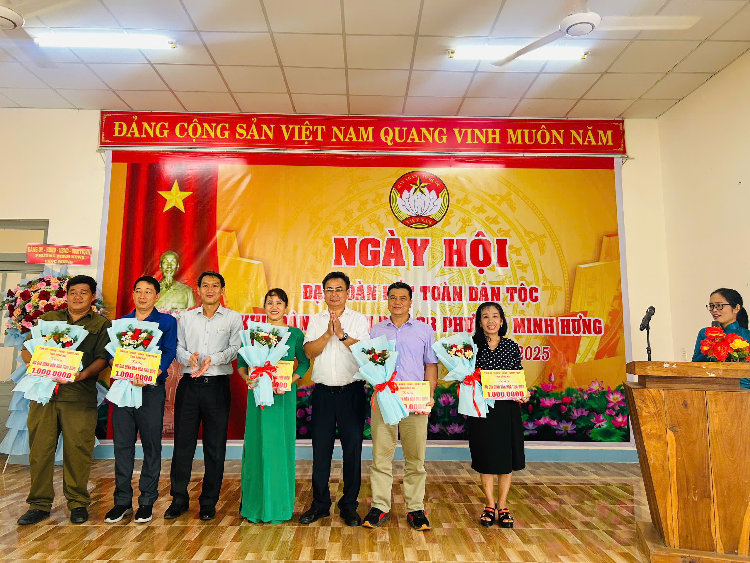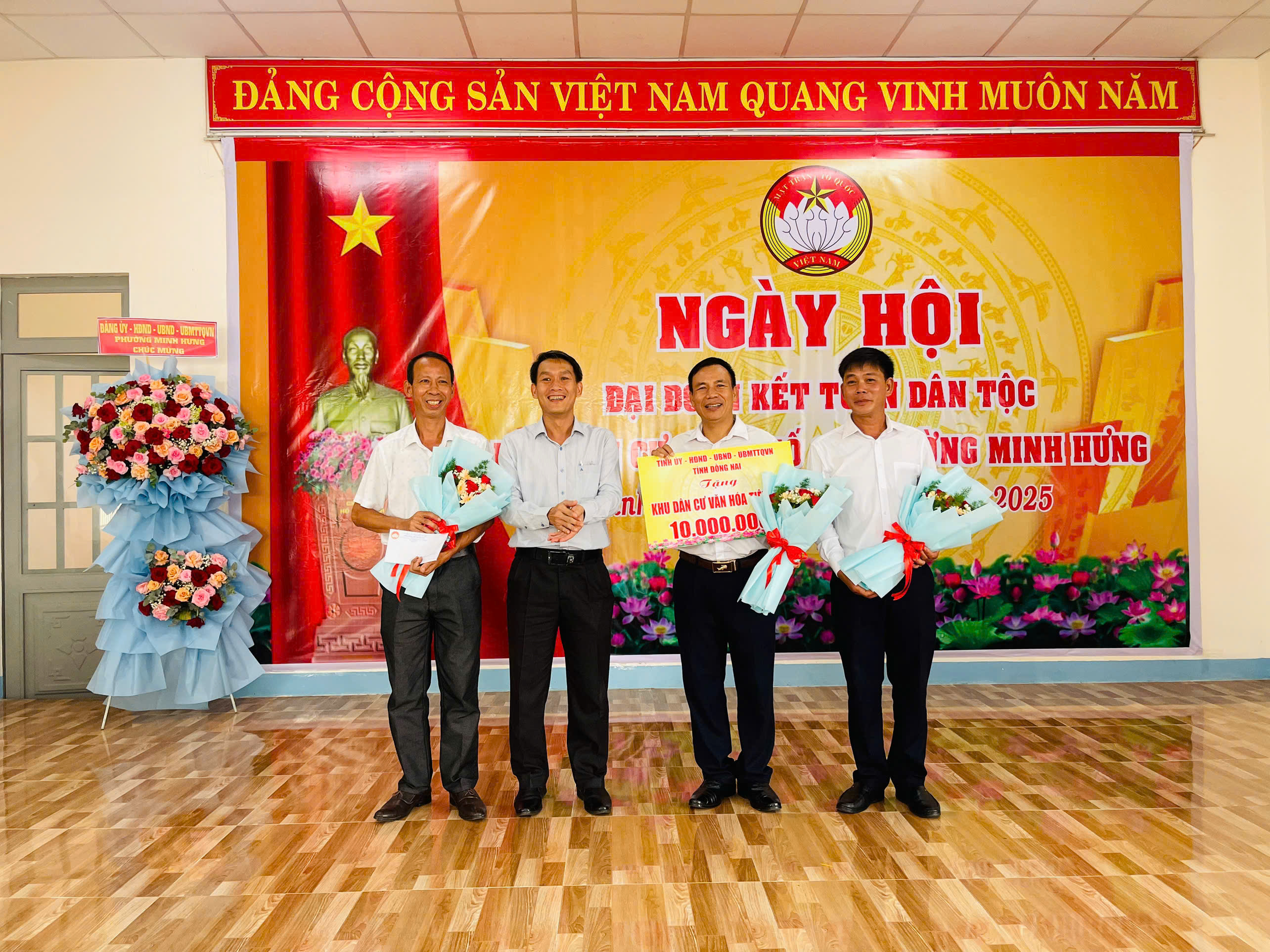 Nhân dịp này, Tỉnh ủy - HĐND - UBND - Ủy ban MTTQ Việt Nam tỉnh Đồng Nai đã tặng quà cho khu dân cư 3B tiêu biểu và 05 hộ gia đình điển hình; Đảng ủy - HĐND - UBND - Ủy ban MTTQ Việt Nam phường Minh Hưng trao giấy khen cho 02 hộ gia đình tiêu biểu trong phong trào “Toàn dân đoàn kết xây dựng đời sống văn hóa”. Ban vận động khu phố cũng có 21 phần quà gửi đến các hộ gia đình có hoàn cảnh khó khăn, người già neo đơn, tàn tật đã tiếp thêm động lực động viên các hộ gia đình vươn lên trong cuộc sống.