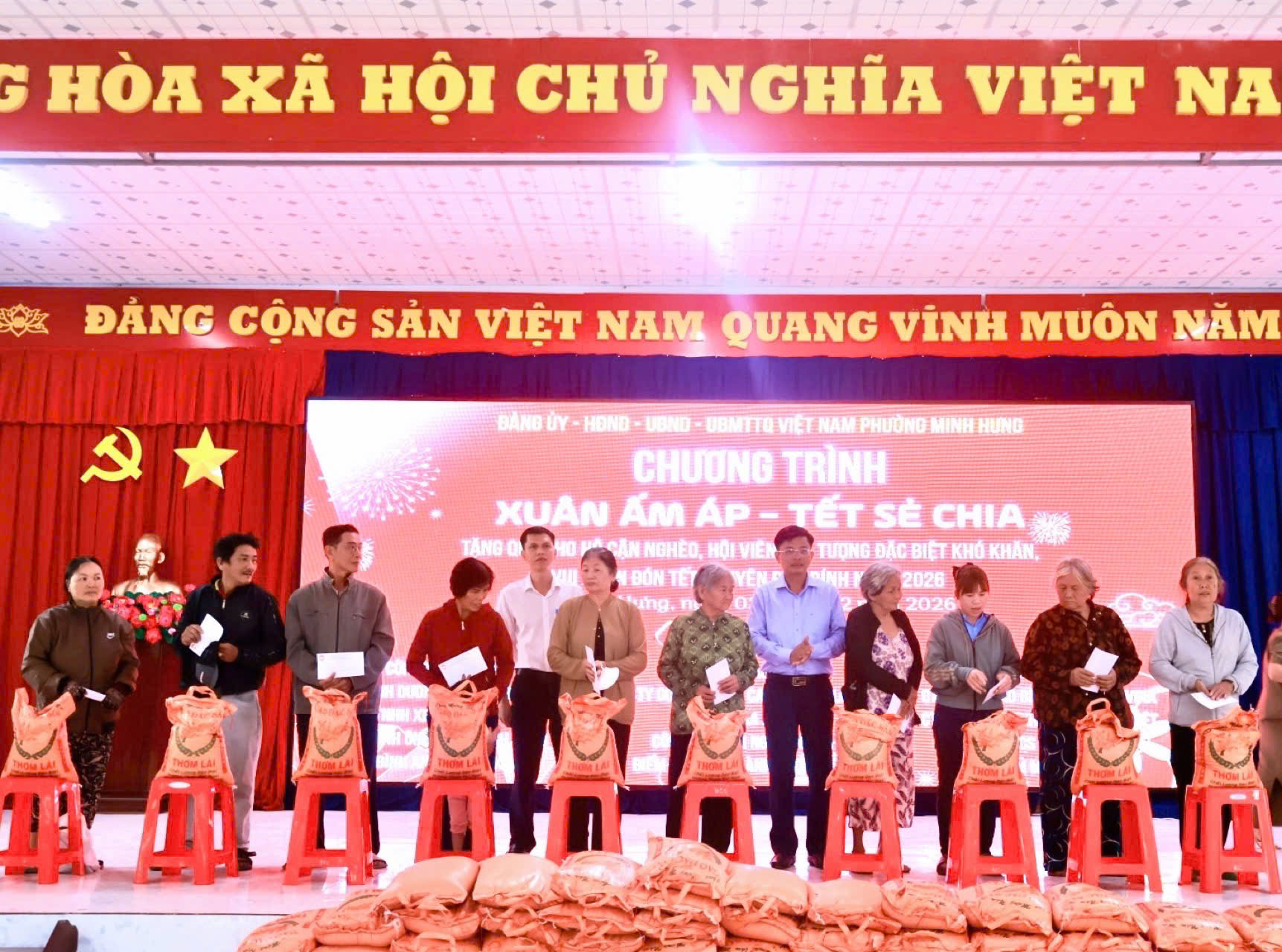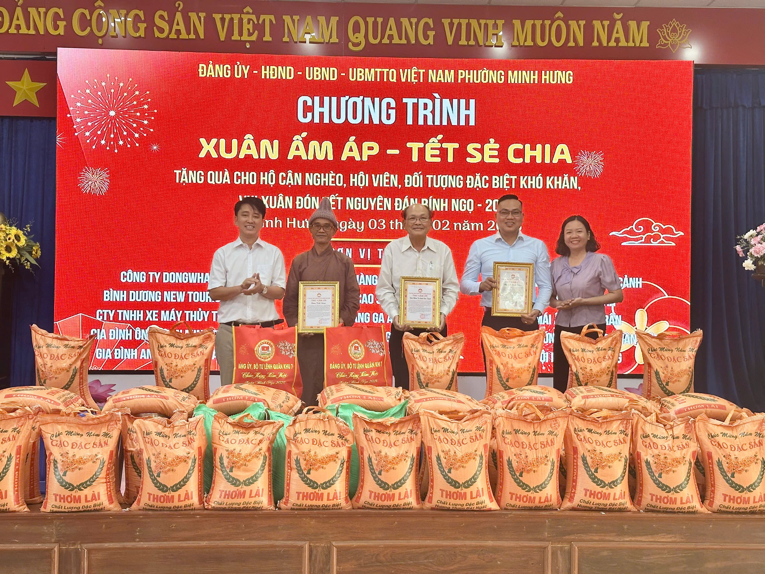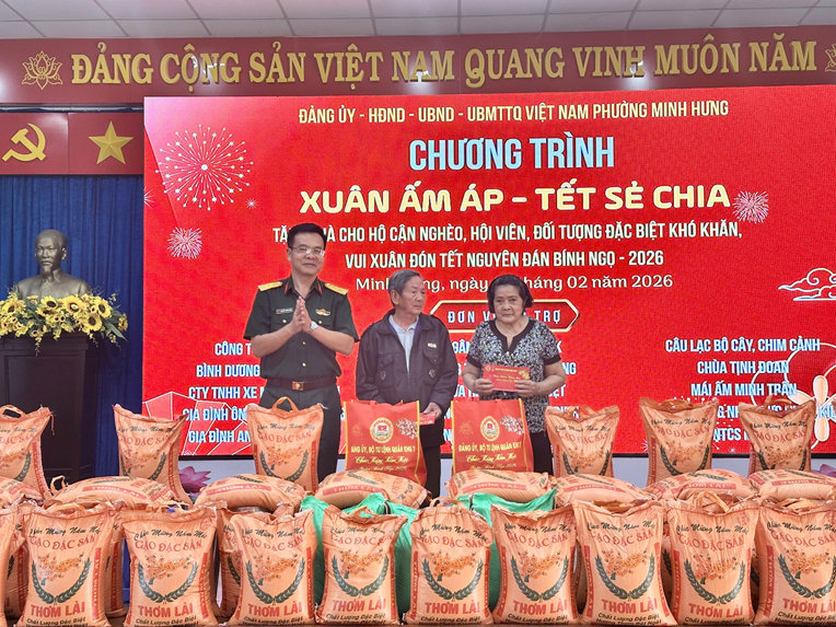 Chương trình trao quà Tết Xuân Bính Ngọ 2026 của phường Minh Hưng là hoạt động ý nghĩa nhân văn, thể hiện rõ vai trò, trách nhiệm của cấp ủy Đảng, chính quyền và Mặt trận Tổ quốc trong công tác chăm lo đời sống Nhân dân, góp phần tạo khí thế phấn khởi, tin tưởng, đoàn kết trong cộng đồng dân cư nhân dịp năm mới.