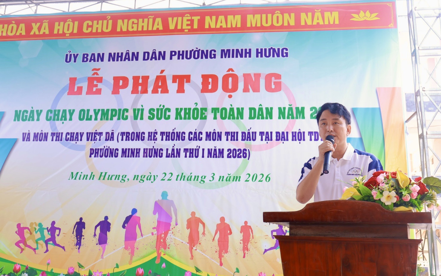 Phát biểu tại Lễ phát động, ông Nguyễn Văn Diễn - Phó Chủ tịch UBND phường, Trưởng Ban tổ chức ngày chạy Olympic phường hoan nghênh và chào mừng sự có mặt của toàn thể cán bộ, công chức, viên chức, người lao động, lực lượng vũ trang, giáo viên, học sinh, đoàn viên, thanh niên và nhân dân trên địa bàn đã tích cực hưởng ứng tham gia Lễ phát động và Ngày chạy Olympic vì sức khỏe toàn dân năm 2026; cảm ơn sự quan tâm của các đồng chí lãnh đạo phường, các ban, ngành, đoàn thể đã luôn quan tâm chăm lo phát triển sự nghiệp TDTT vì mục tiêu “Dân cường thì nước thịnh. Mong muốn phong trào tập luyện chạy vì sức khoẻ sẽ được duy trì, ngày càng thu hút đông đảo quần chúng nhân dân tham gia.