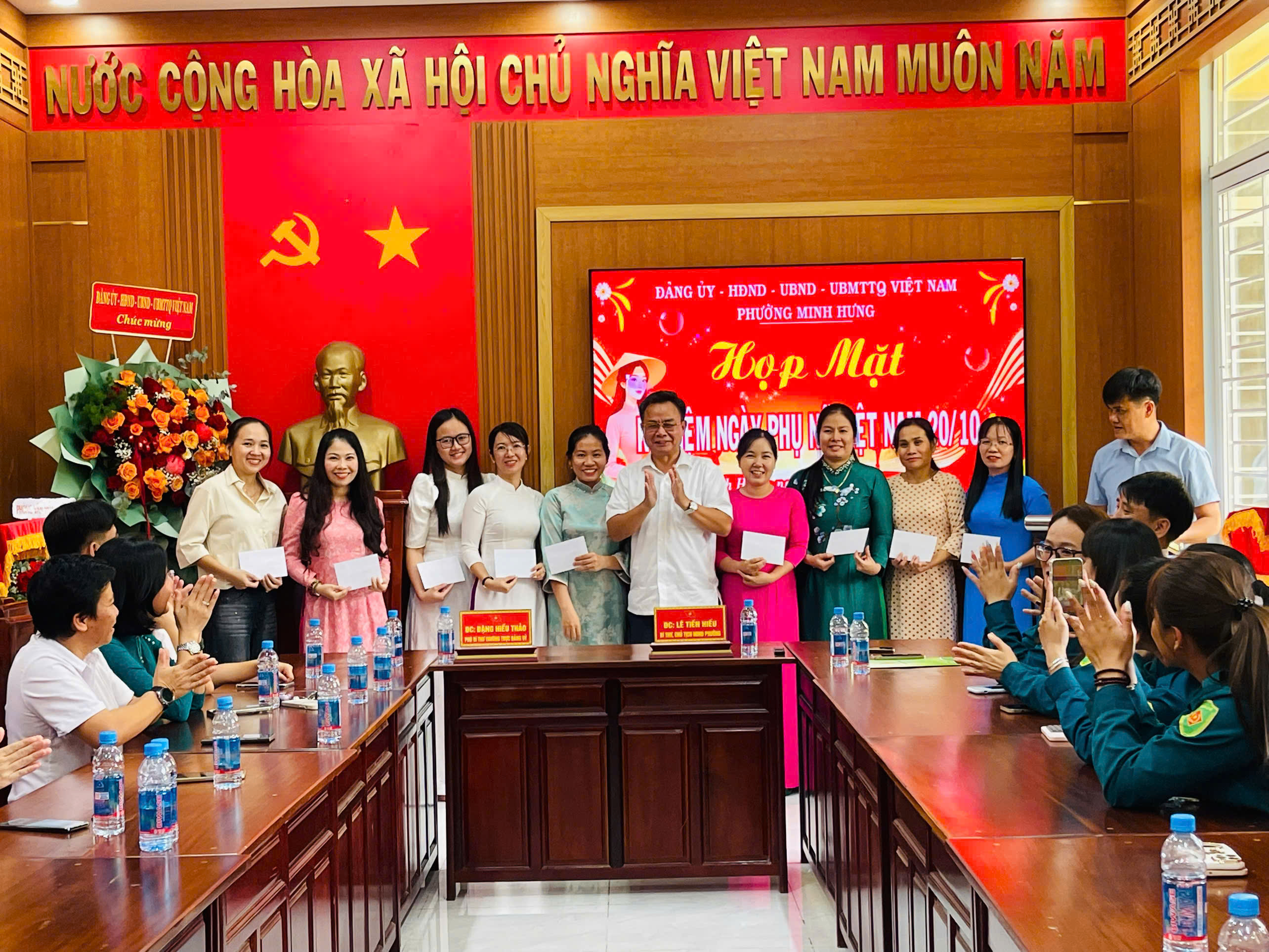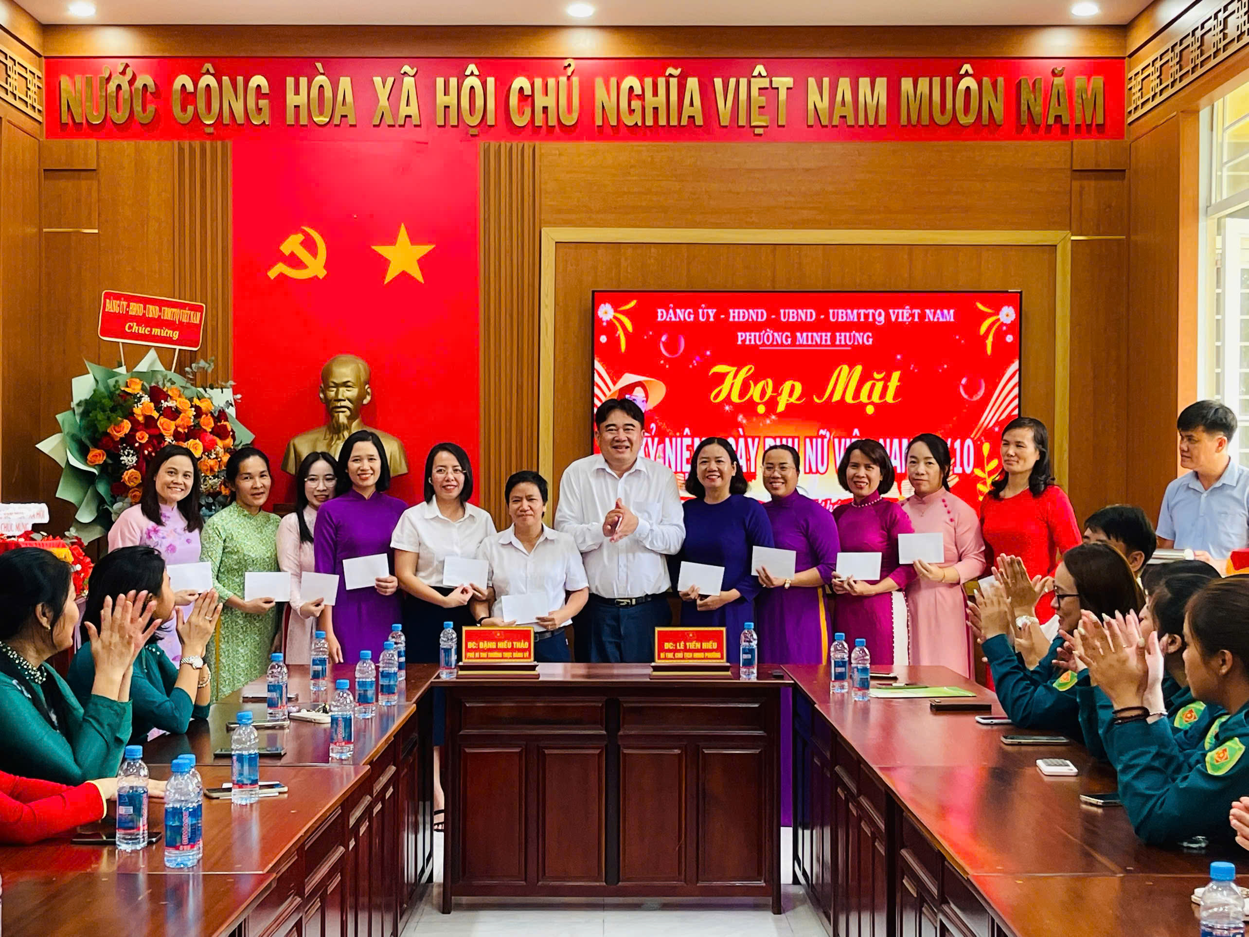 Nhân dịp này, xin kính chúc toàn thể chị em phụ nữ phường Minh Hưng luôn mạnh khỏe, hạnh phúc, xinh đẹp và thành công trong cuộc sống.