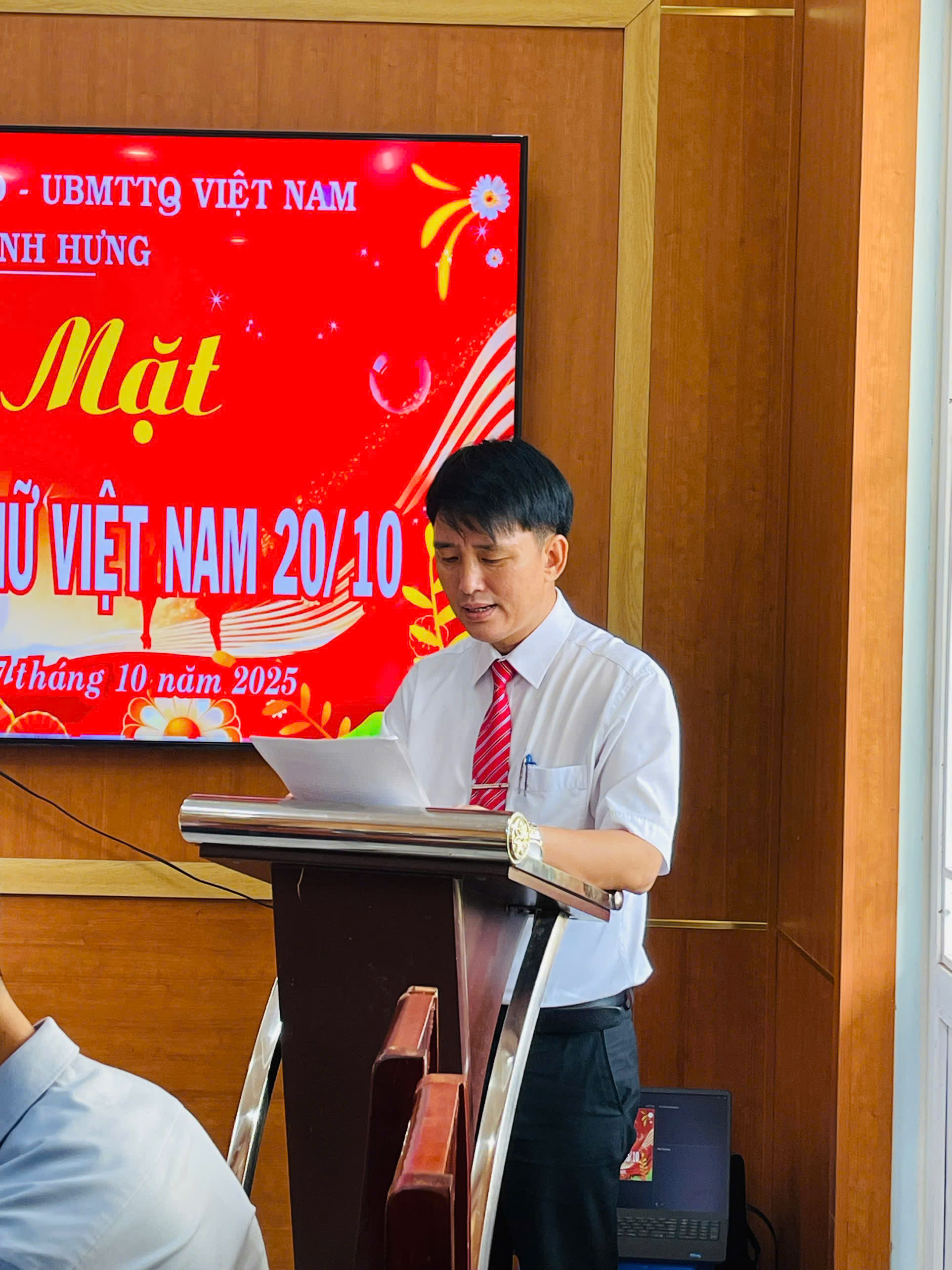 Buổi họp mặt vinh dự đón tiếp ông Lê Tiến Hiếu - Bí thư Đảng ủy, Chủ tịch HĐND phường; ông Đặng Hiếu Thảo - Phó Bí thư Thường trực Đảng ủy phường; bà Đinh Thị Tuyết Sơn - Chủ tịch UBMTTQ Việt Nam phường; ông Nguyễn Văn Diễn - Phó Chủ tịch UBND phường; cùng đại diện các cơ quan, ban, ngành, đoàn thể và nữ cán bộ, công chức, viên chức, người lao động phường Minh Hưng.
