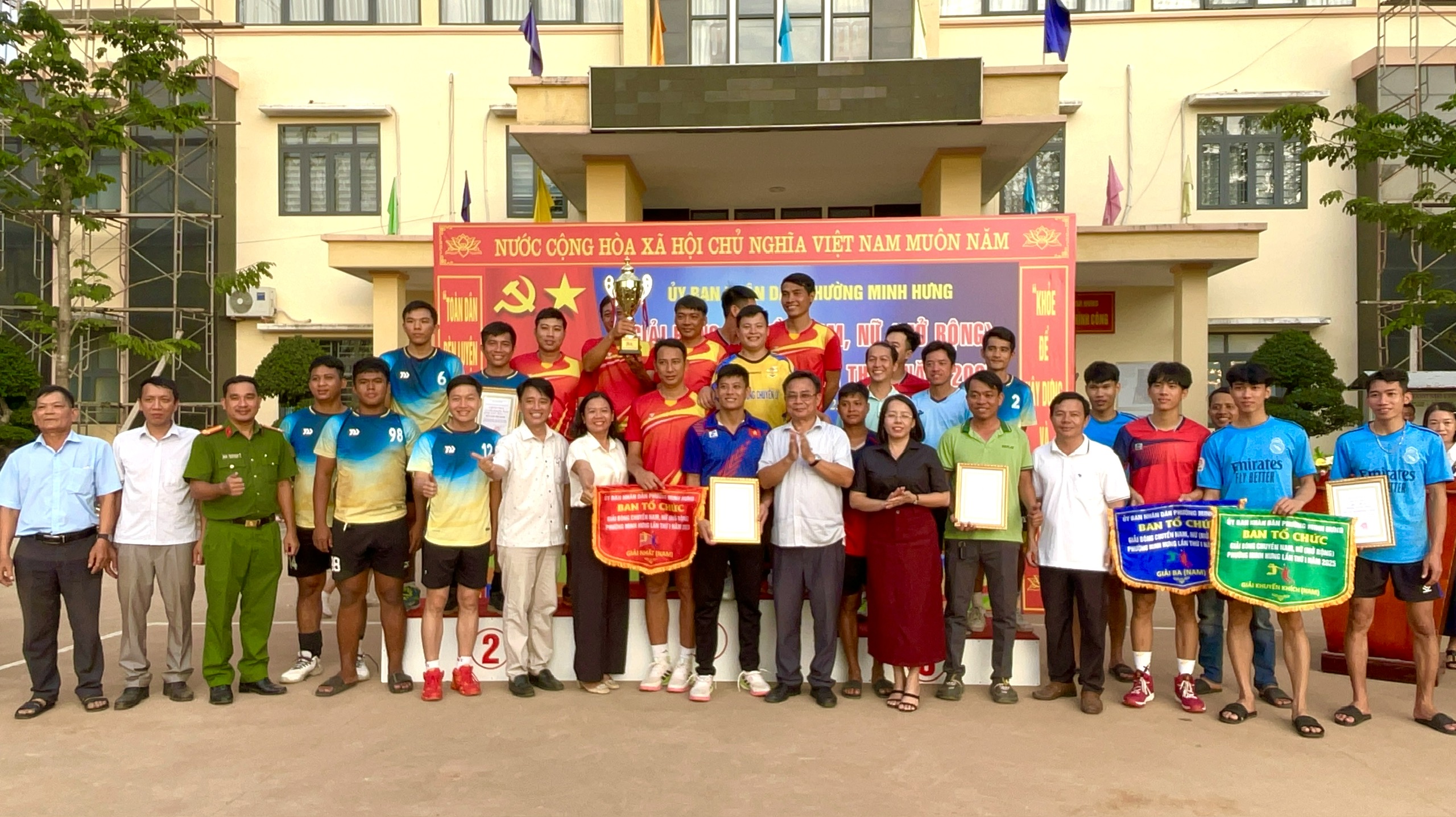 Chiều 23/11, sau loạt trận đấu kịch tính tại vòng chung kết, Ban tổ chức đã trao giải cho các đội xuất sắc nhất: Nhất nội dung bóng chuyền nữ được trao cho Đội Liên quân Khu phố 1 & Khu phố 2. Nhất nội dung bóng chuyền nam thuộc về Đội Liên quân Khu phố 6, 7, 8, 10, 11.