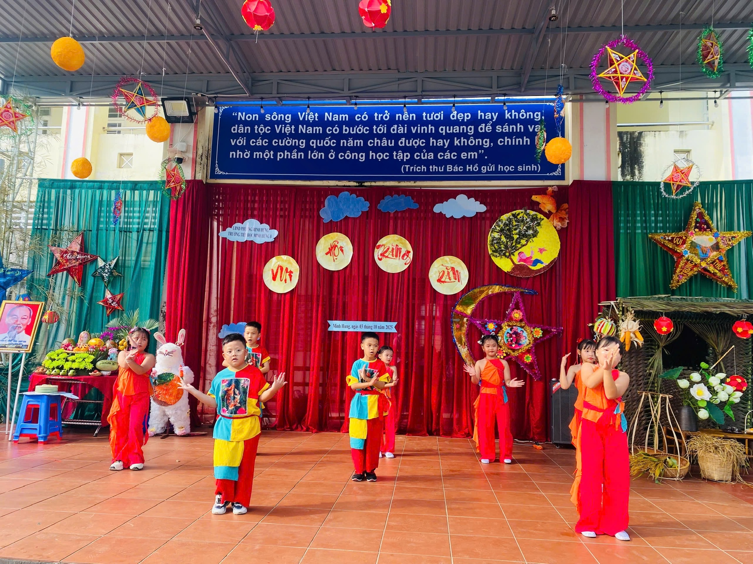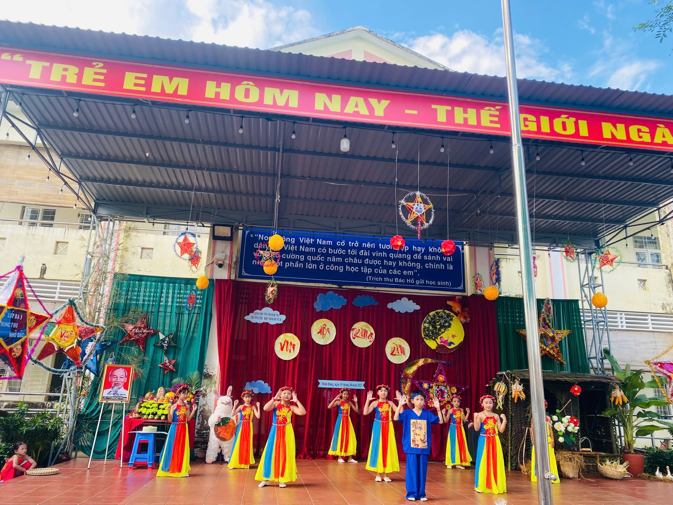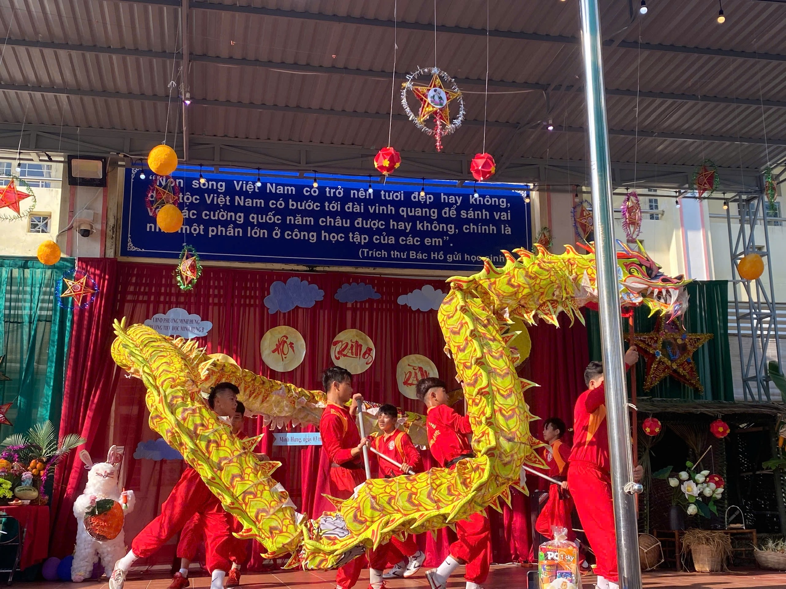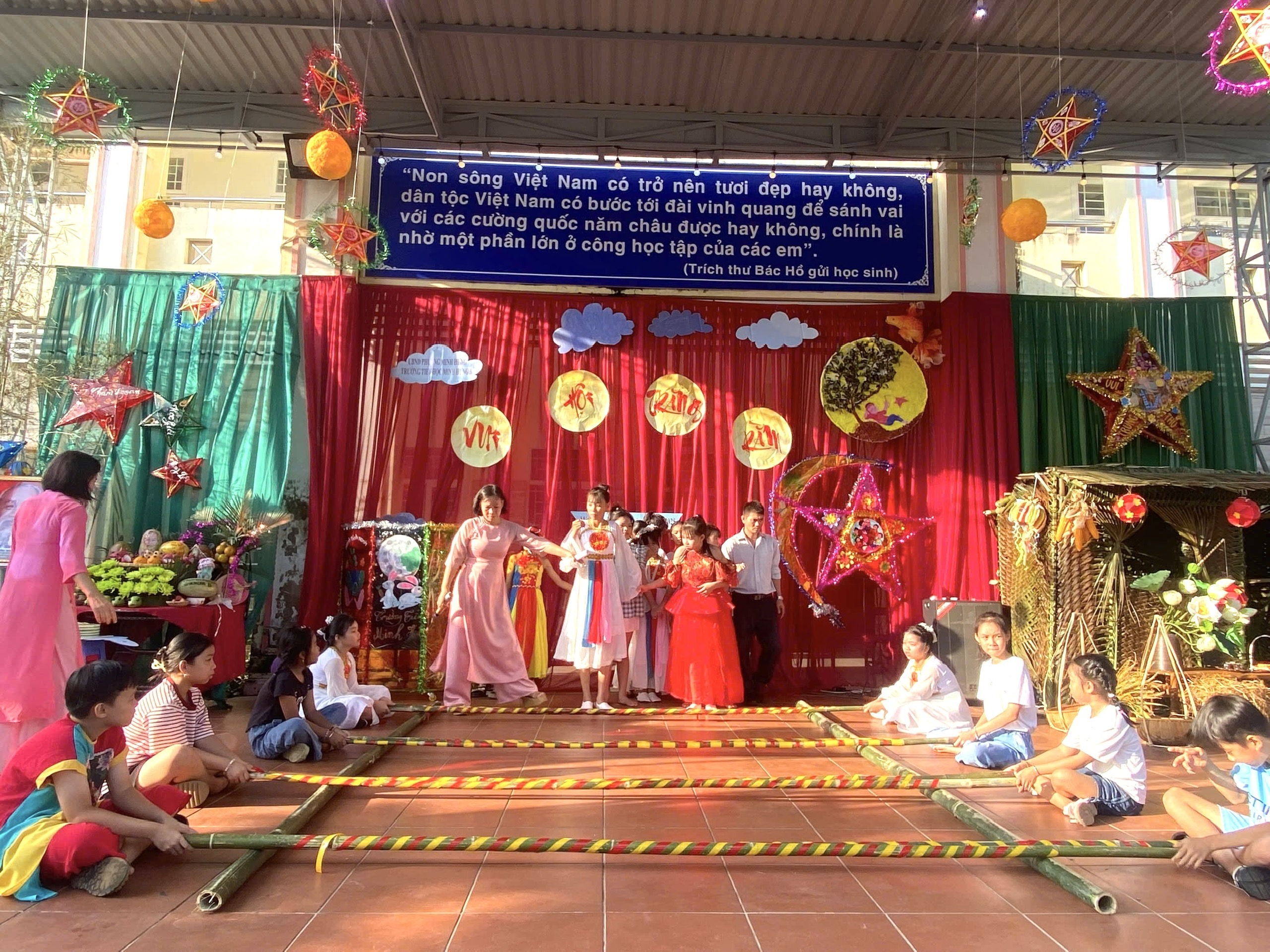 Sân trường được trang trí rực rỡ với đèn lồng nhiều màu sắc, các em được thưởng thức những tiết mục văn nghệ đặc sắc do chính các em biểu diễn như hoạt cảnh sự tích Trung thu, chú Cuội, chị Hằng, được tham gia nhiều hoạt động vui chơi như rước đèn, múa Lân Sư Rồng, các trò chơi dân gian: ném bóng vào rổ, ném vòng, múa sạp, thi làm lồng đèn và nhận những phần quà yêu thương từ nhà trường.