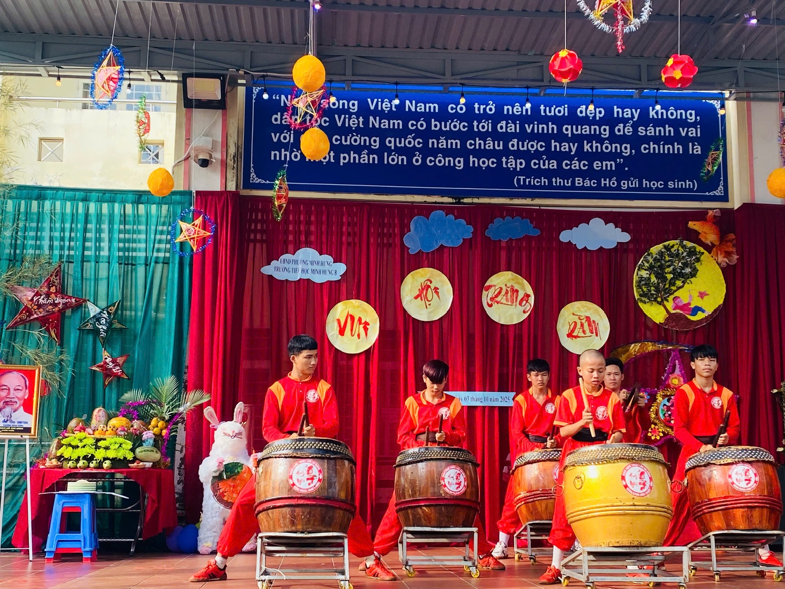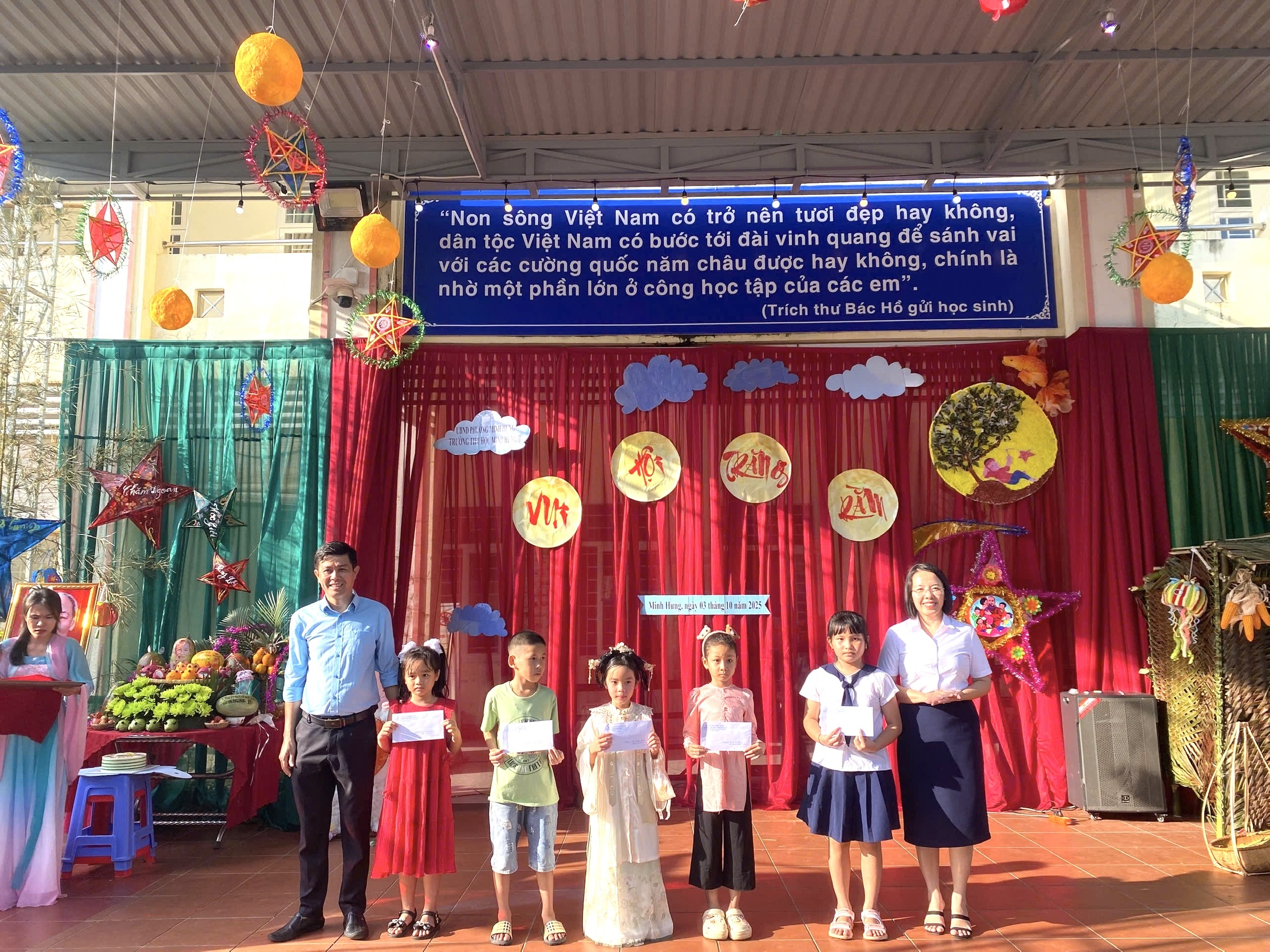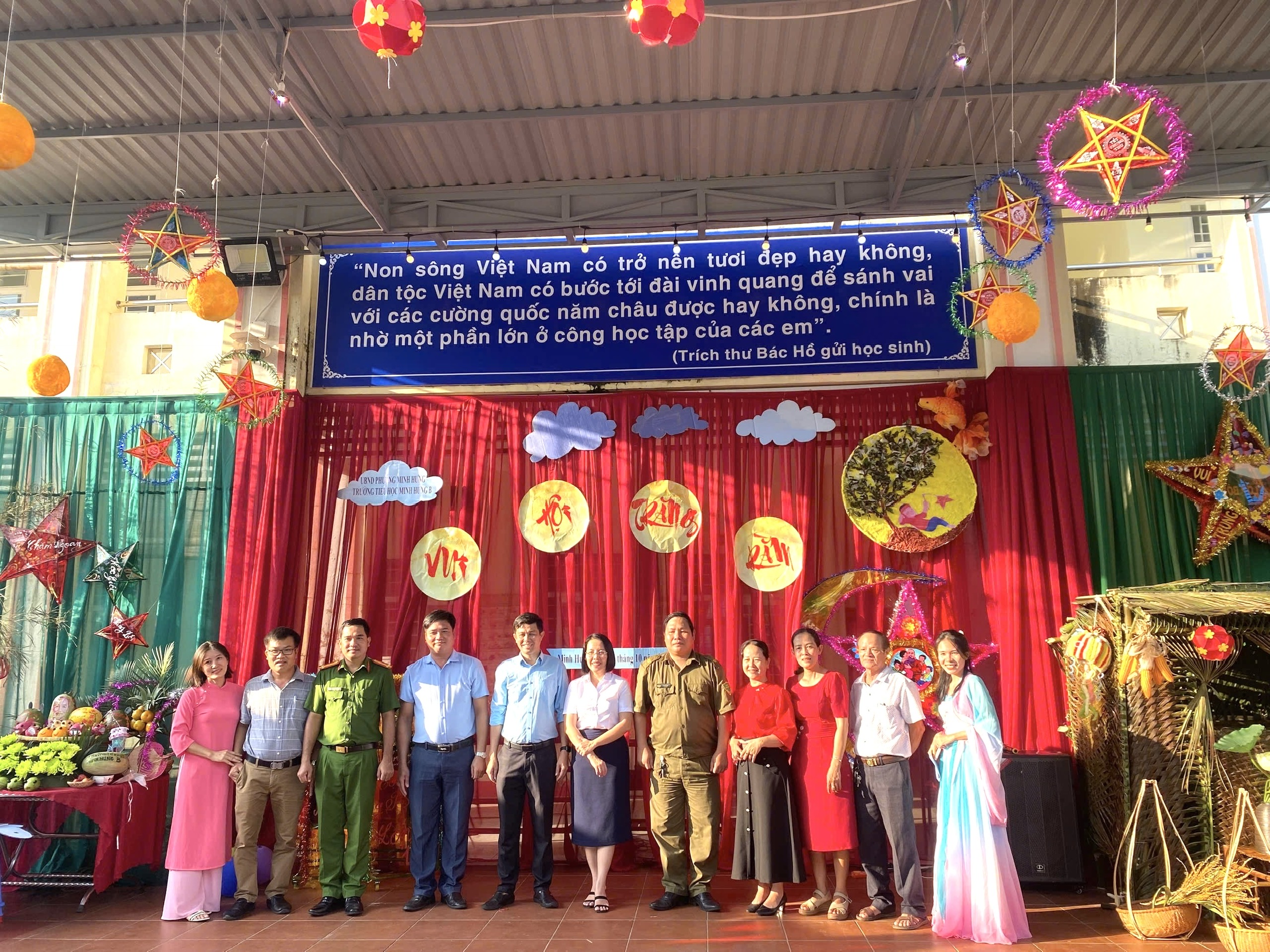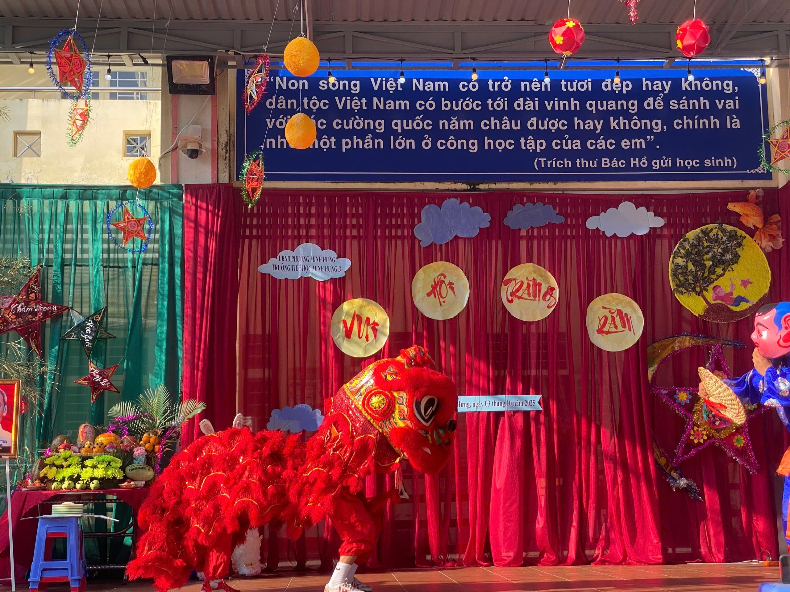 Sân trường được trang trí rực rỡ với đèn lồng nhiều màu sắc, các em được thưởng thức những tiết mục văn nghệ đặc sắc do chính các em biểu diễn như hoạt cảnh sự tích Trung thu, chú Cuội, chị Hằng, được tham gia nhiều hoạt động vui chơi như rước đèn, múa Lân Sư Rồng, các trò chơi dân gian: ném bóng vào rổ, ném vòng, múa sạp, thi làm lồng đèn và nhận những phần quà yêu thương từ nhà trường.