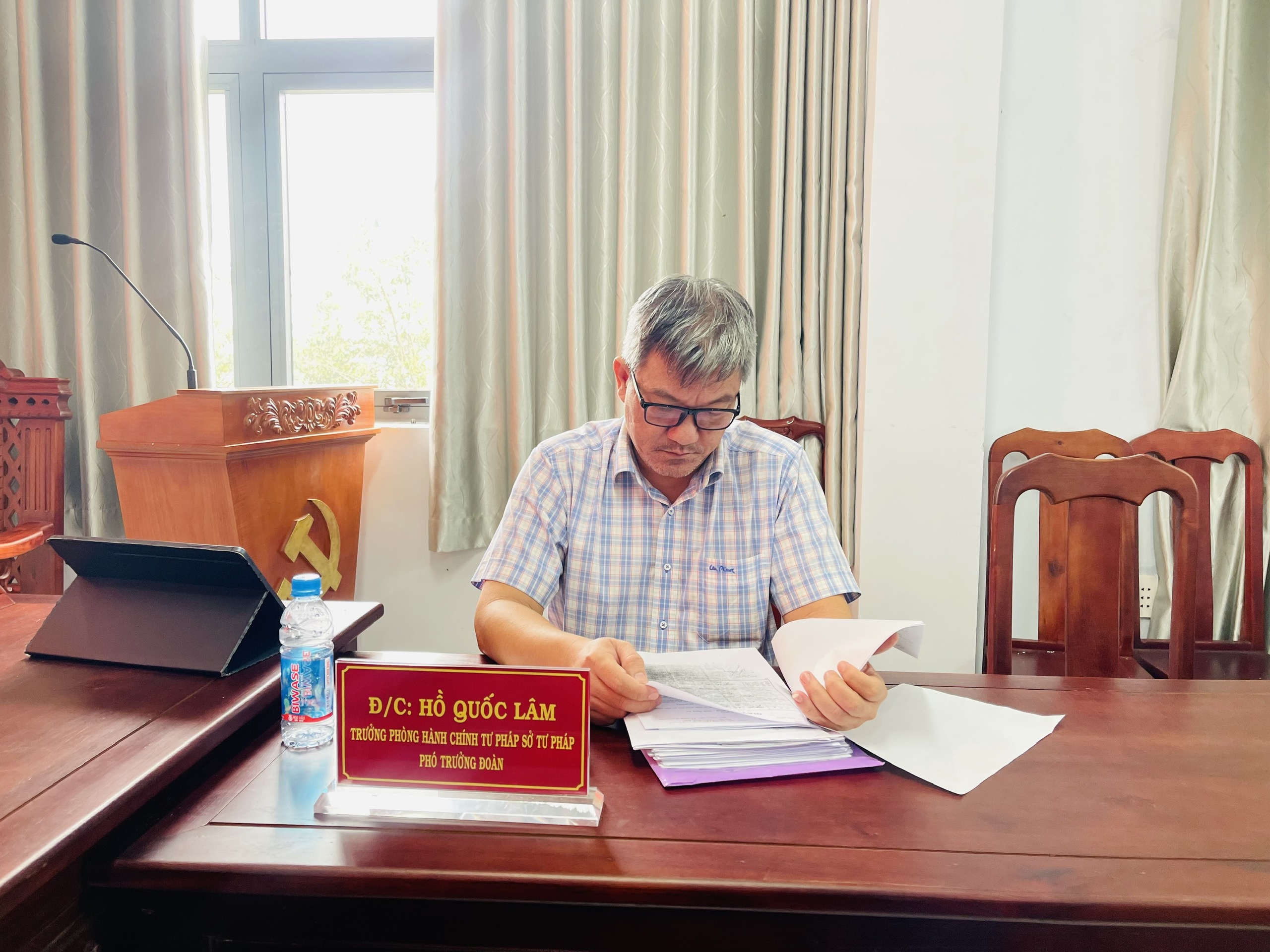 Tại buổi làm việc, ông Hồ Quốc Lâm – Trưởng phòng hành chính Tư pháp Sở Tư pháp, Phó trưởng đoàn, cùng đoàn công tác đã tiến hành kiểm tra các nội dung theo kế hoạch: Công tác đăng ký và quản lý hộ tịch như: Công tác triển khai, tổ chức thực hiện công tác hộ tịch tại địa phương, ghi chép sổ sách và lưu trữ hồ sơ hộ tịch, Công tác tiếp nhận và xử lý hồ sơ trên môi trường điện tử; phi địa giới hành chính trong phạm vi tỉnh, Công tác bàn giao, tiếp nhận, quản lý sổ hộ tịch sau khi sắp xếp đơn vị hành chính; Công tác đăng ký và quản lý nuôi con nuôi: Tình hình thực hiện đăng ký nuôi con nuôi trong nước và có yếu tố nước ngoài, Việc lập, quản lý và lưu trữ hồ sơ nuôi con nuôi và Kiểm tra việc chấp hành pháp luật, phát hiện sai phạm, chấn chỉnh thực hiện.