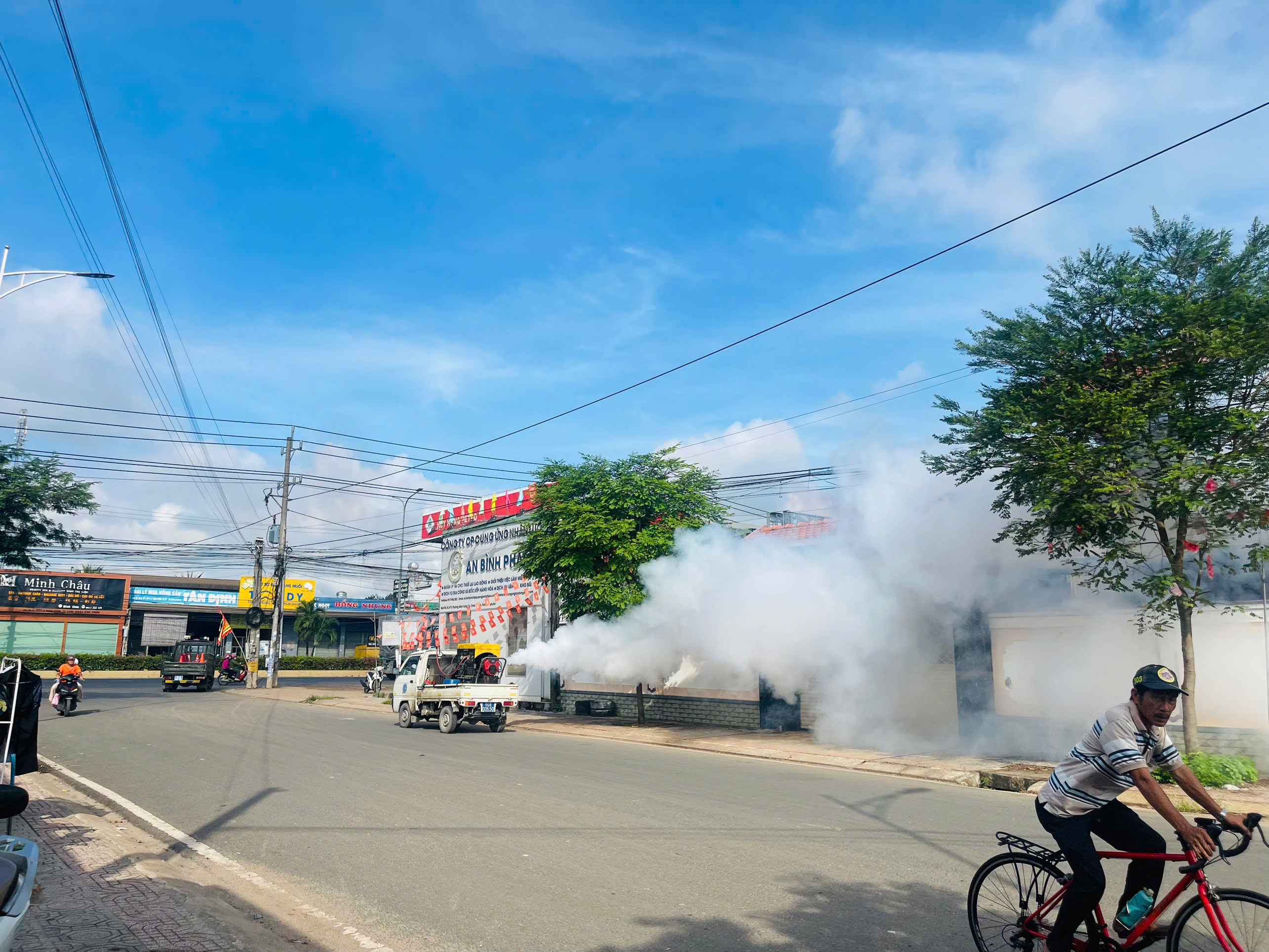 Xe phun thuốc đã tiến hành phun trên toàn bộ các tuyến đường chính và các tuyến đường nhánh của 3 khu phố, đạt 100% phạm vi bao phủ. Đối với những khu vực xe phun lớn không thể tiếp cận như các khu nhà trọ, nhà dân trong hẻm nhỏ, lực lượng chức năng đã sử dụng bình phun cầm tay để đảm bảo công tác phun thuốc được hiệu quả và toàn diện.