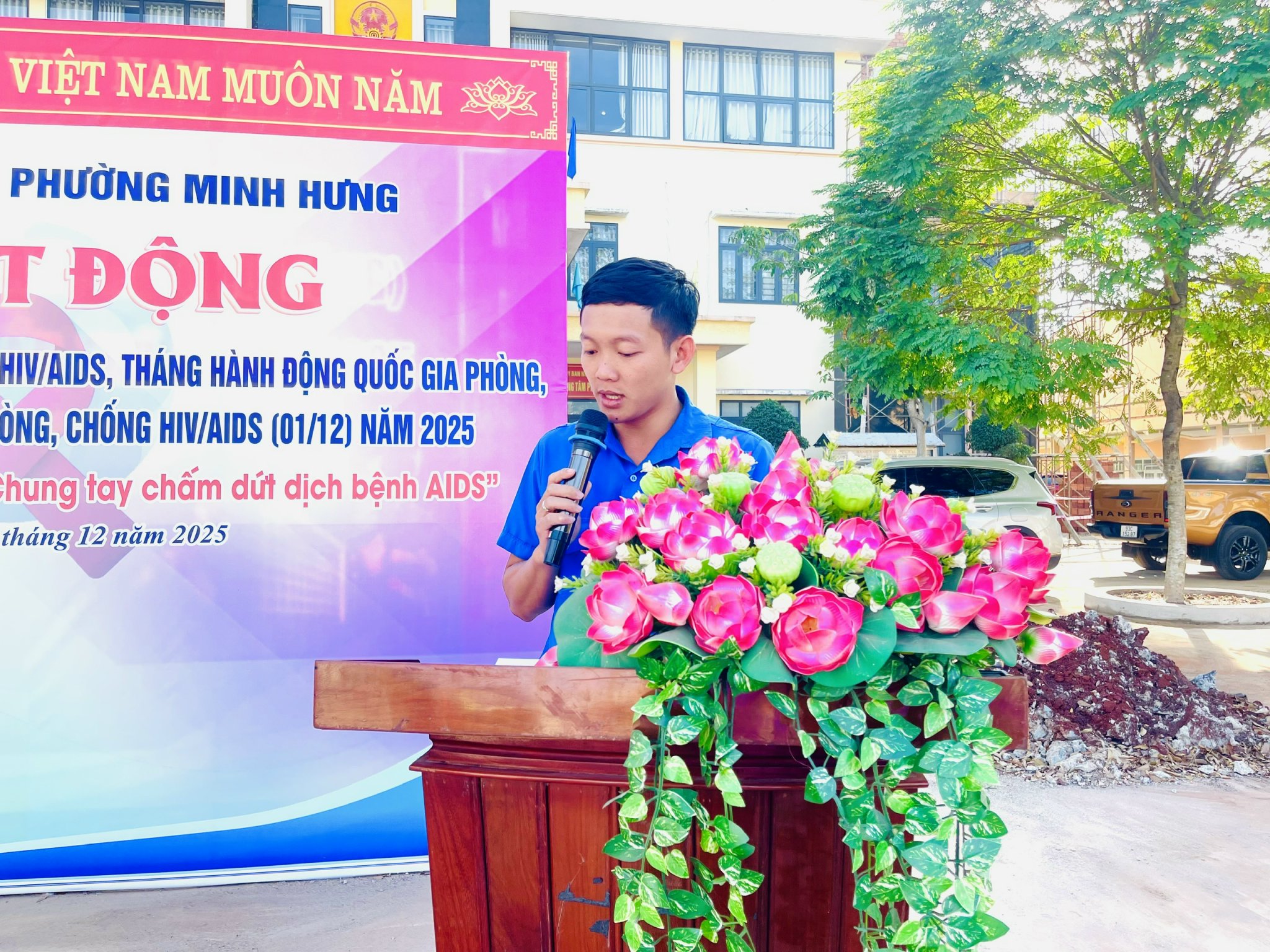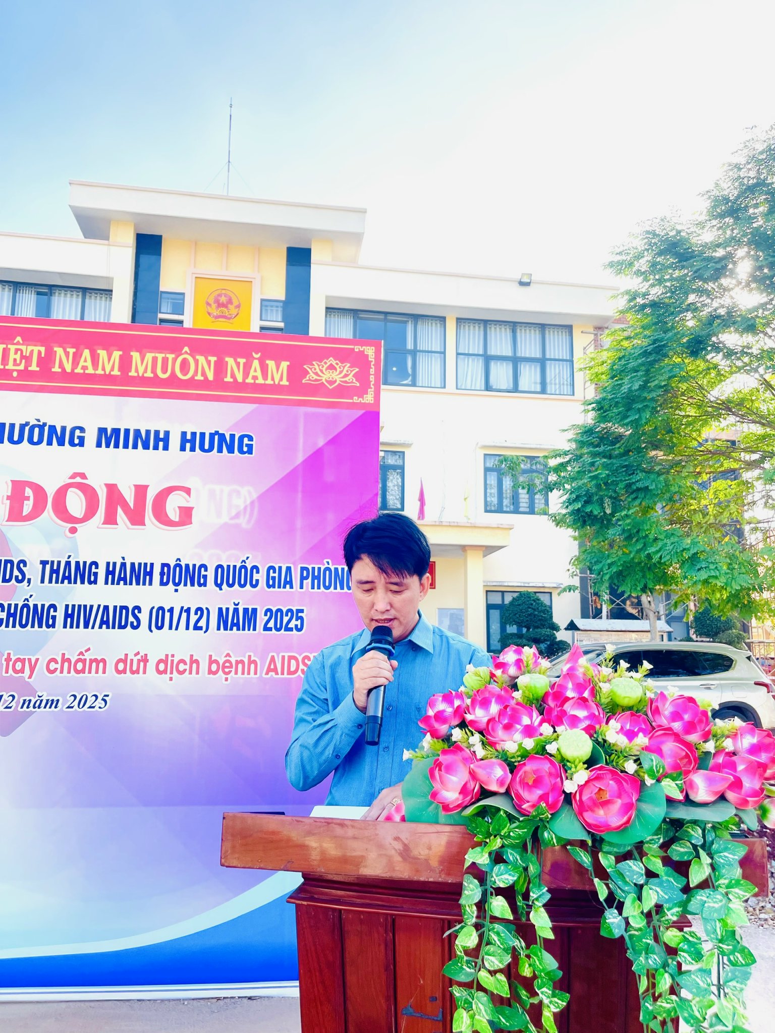Phát biểu tại lễ phát động, ông Nguyễn Văn Diễn – Phó Chủ tịch UBND phường nhấn mạnh ý nghĩa đặc biệt của sự kiện năm nay khi cả nước kỷ niệm 35 năm nỗ lực và thành tựu trong cuộc chiến ứng phó với HIV/AIDS. Ông khẳng định mạnh mẽ quyết tâm của Đảng bộ, chính quyền và nhân dân phường Minh Hưng trong việc thực hiện mục tiêu chung của cả nước: chấm dứt dịch bệnh AIDS vào năm 2030. Trong những năm qua, công tác phòng, chống HIV/AIDS trên địa bàn phường đã đạt nhiều kết quả đáng ghi nhận: hoạt động tư vấn – xét nghiệm – điều trị ARV được duy trì ổn định; các biện pháp dự phòng ngày càng mở rộng; công tác truyền thông nâng cao nhận thức cộng đồng được triển khai thường xuyên và hiệu quả.