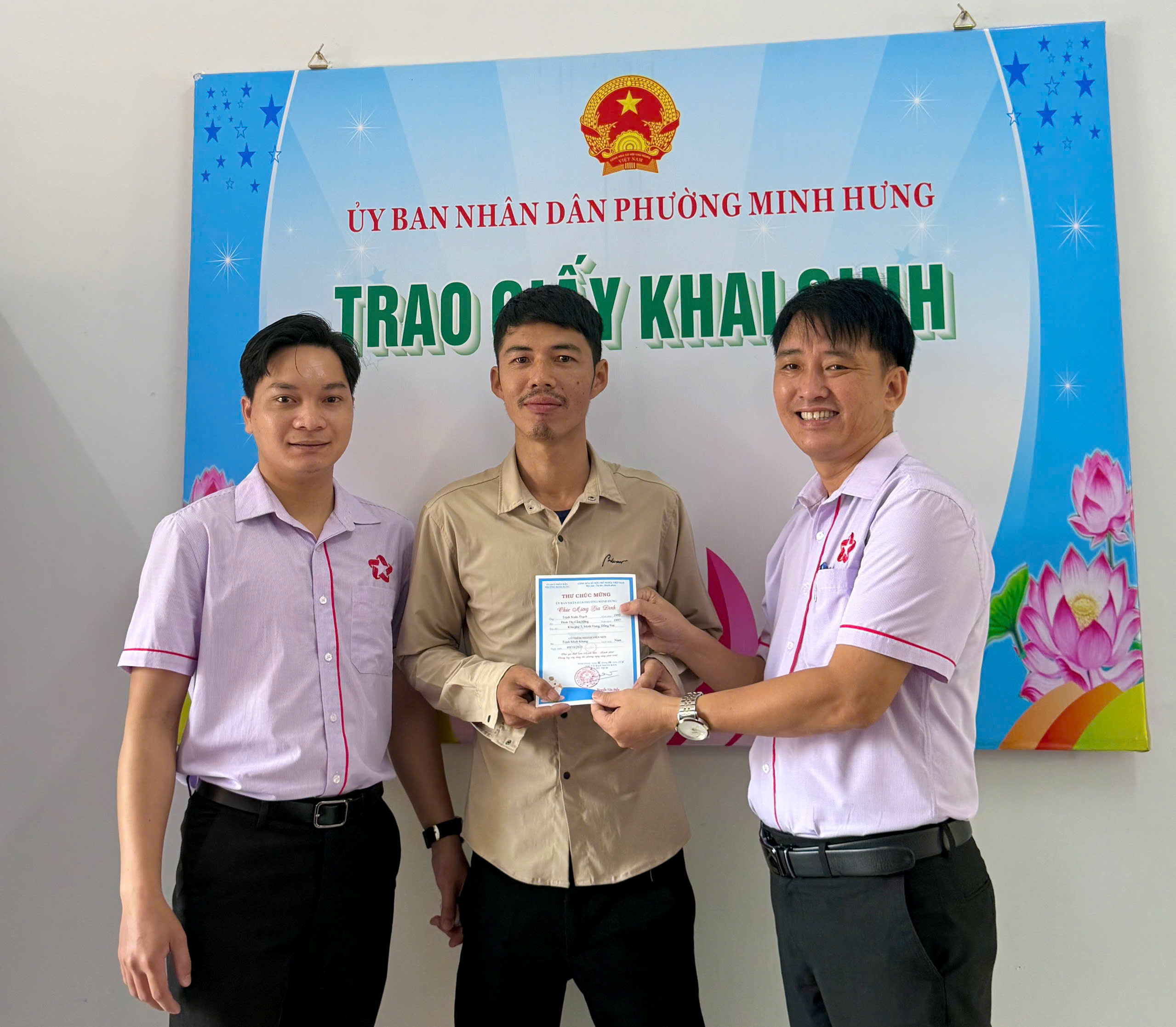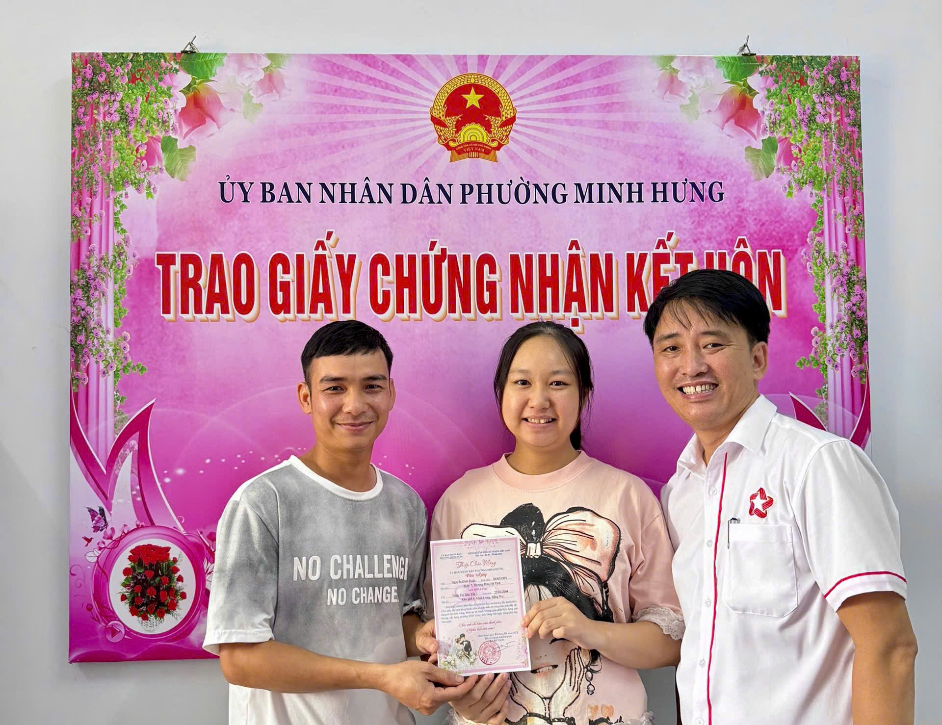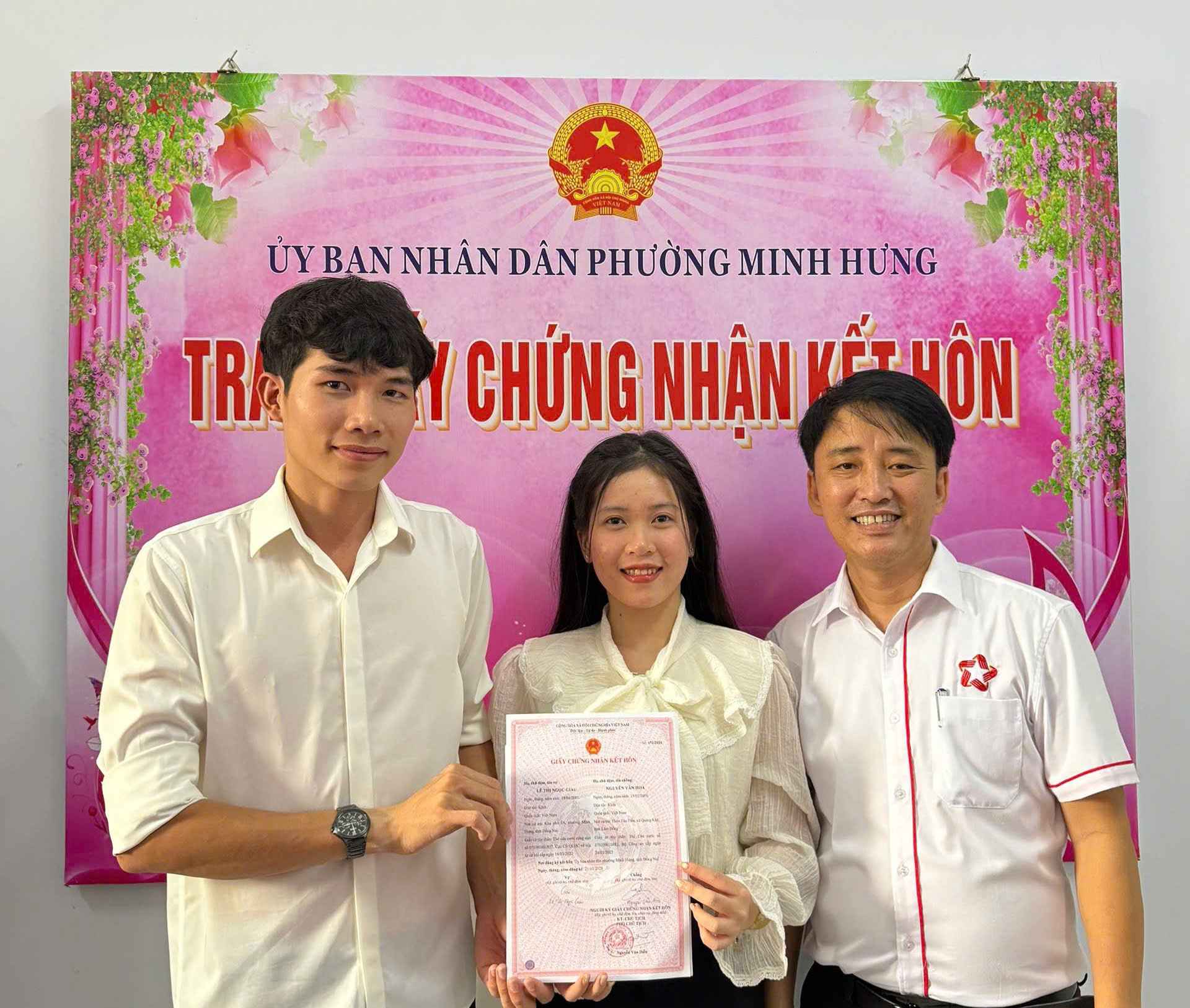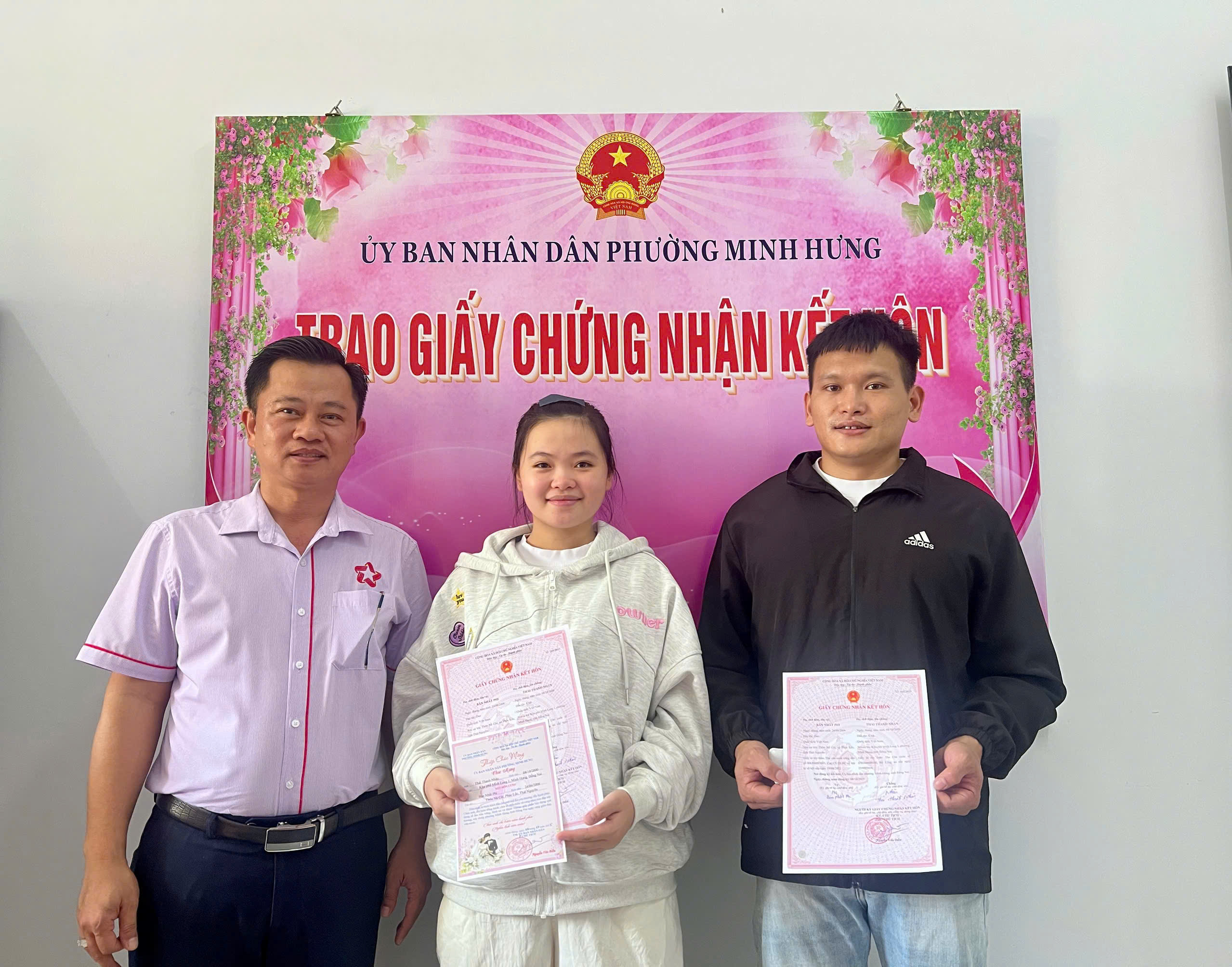 Trong thời gian vừa qua, UBND phường Minh Hưng (thông qua Trung tâm Phục vụ hành chính công) đã tổ chức trao Giấy chứng nhận kết hôn cho công dân thực hiện đăng ký kết hôn và trao Giấy khai sinh cho các gia đình có trẻ em vừa chào đời, trong không khí thân mật, trang trọng và đầy ý nghĩa.