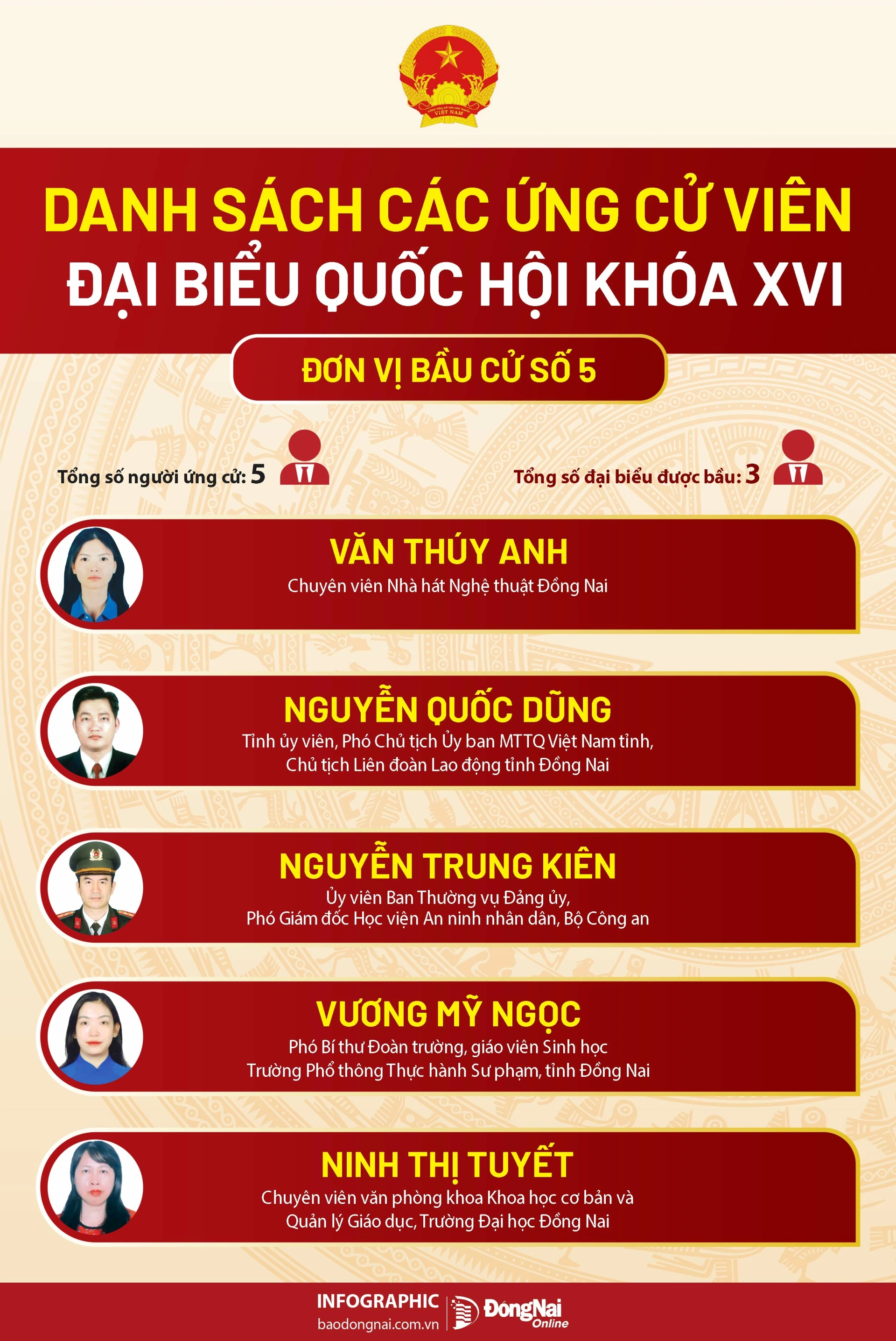 Tổng số người ứng cử: 05. Số đại biểu được bầu: 03