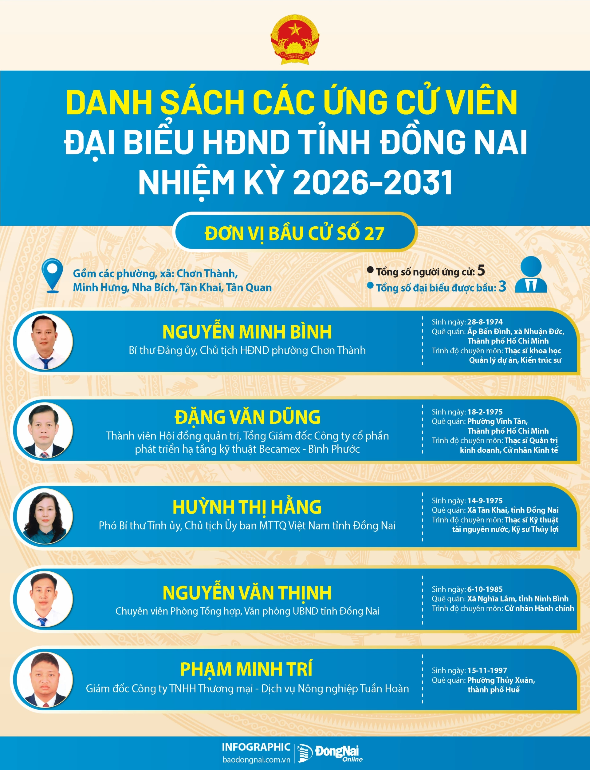 * Danh sách ứng cử viên đại biểu HĐND tỉnh nhiệm kỳ 2026-2031 - Đơn vị bầu cử số 27