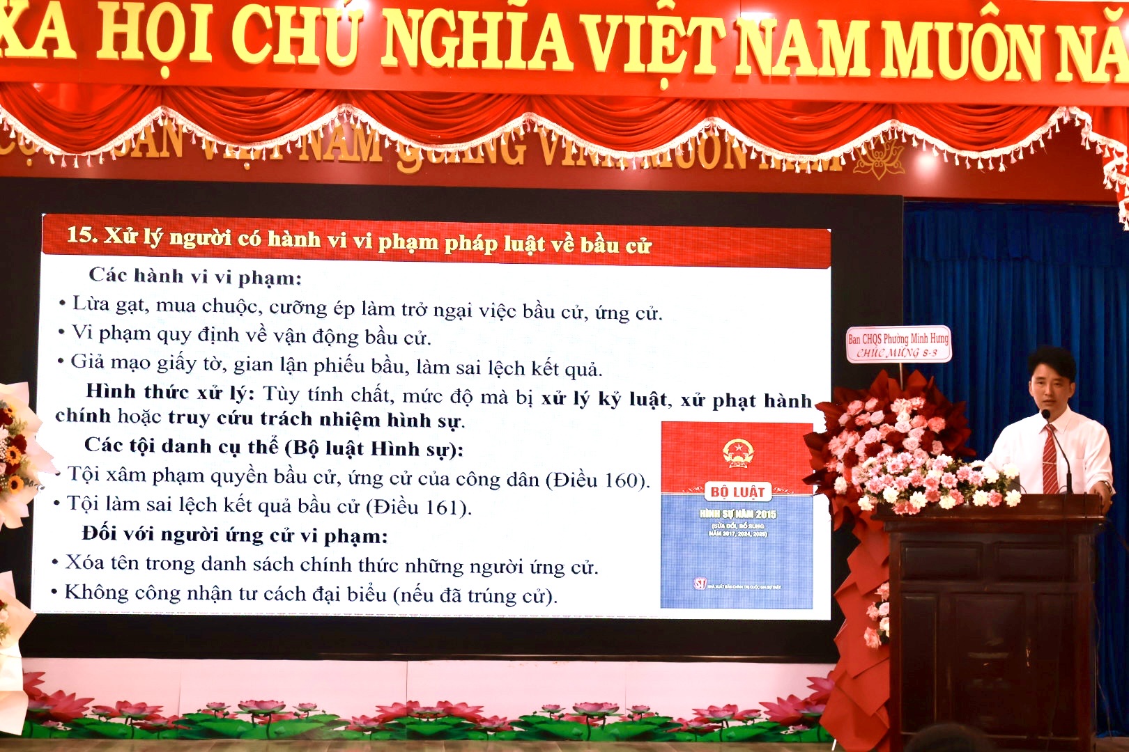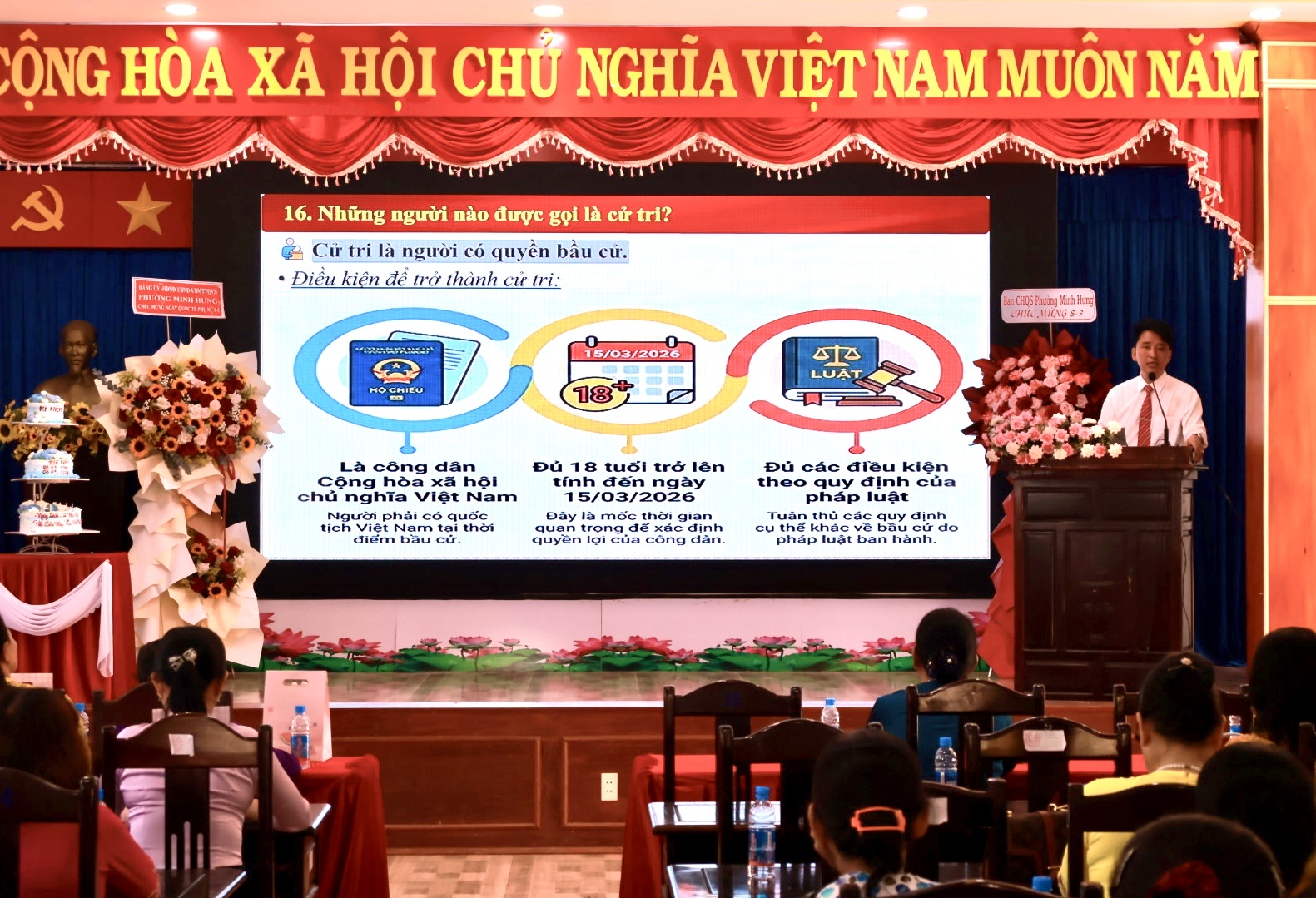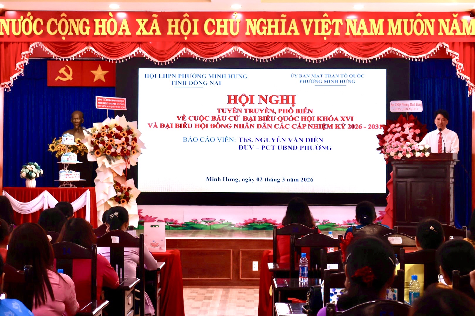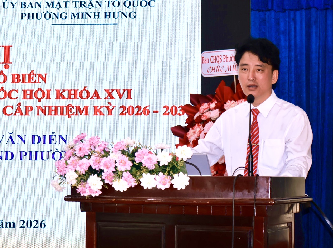 Tại hội nghị, ông Nguyễn Văn Diễn – Đảng ủy viên - Phó Chủ tịch UBND phường Minh Hưng, báo cáo viên của hội nghị – đã triển khai những nội dung trọng tâm liên quan đến cuộc bầu cử đại biểu Quốc hội và đại biểu HĐND các cấp nhiệm kỳ 2026 – 2031.