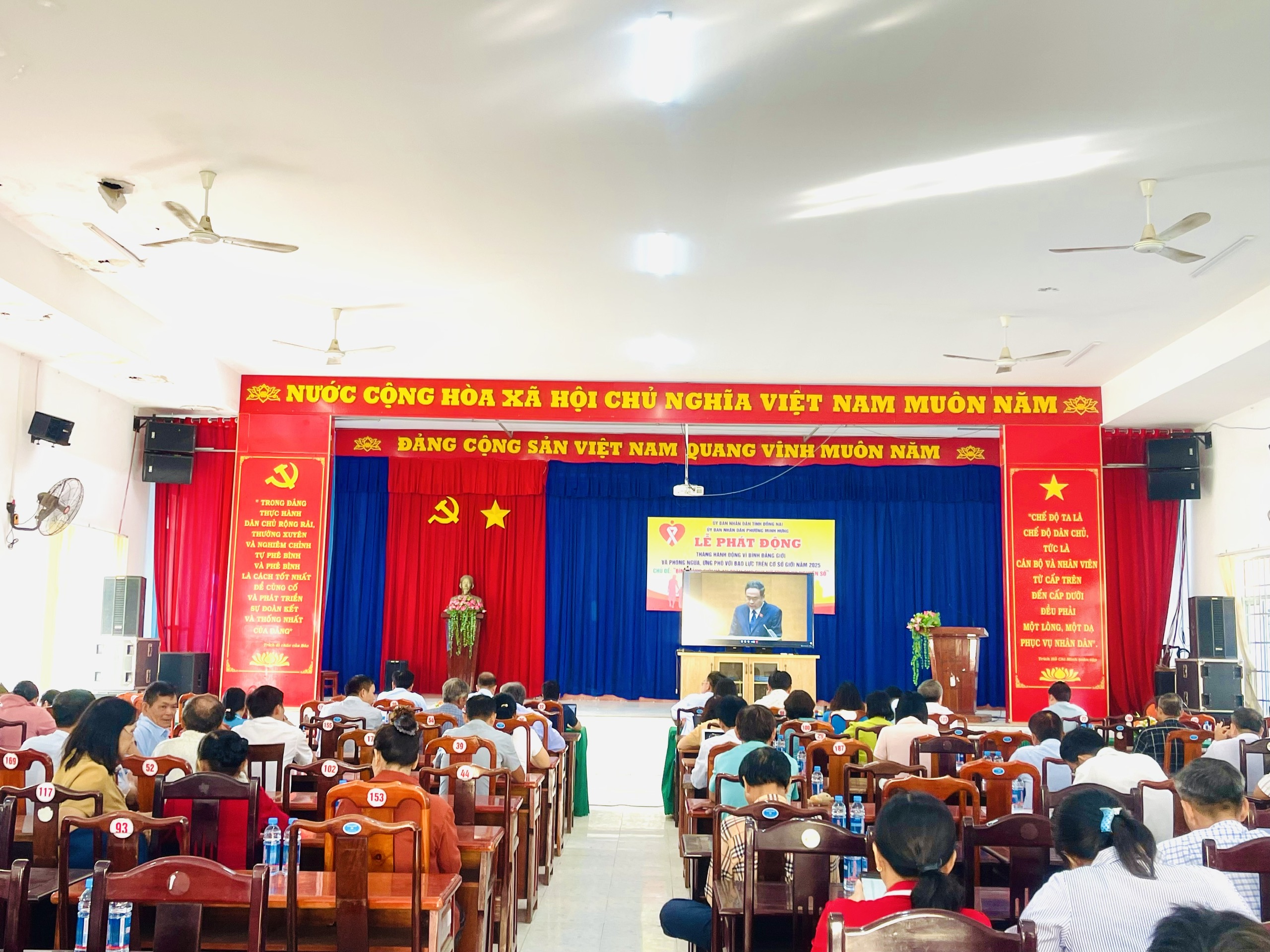 Tại điểm cầu phường Minh Hưng, tham dự hội nghị có đồng chí Lê Tiến Hiếu- Bí thư Đảng ủy, Chủ tịch HĐND phường; đồng chí Đặng Hiếu Thảo - Phó Bí thư Thường trực Đảng ủy; đồng chí Lê Khắc Đồng - Phó Bí thư Đảng ủy, Chủ tịch UBND phường; đồng chí Đinh Thị Tuyết Sơn - Chủ tịch UBMTTQ Việt Nam phường; Thành viên Ban Chỉ đạo bầu cử phường (theo Quyết định số 11-QĐ/ĐU ngày 26/9/2025); Bí thư, Trưởng Ban Công tác Mặt trận, Trưởng các khu phố và Tổ trưởng Tổ dân phố trên địa bàn.