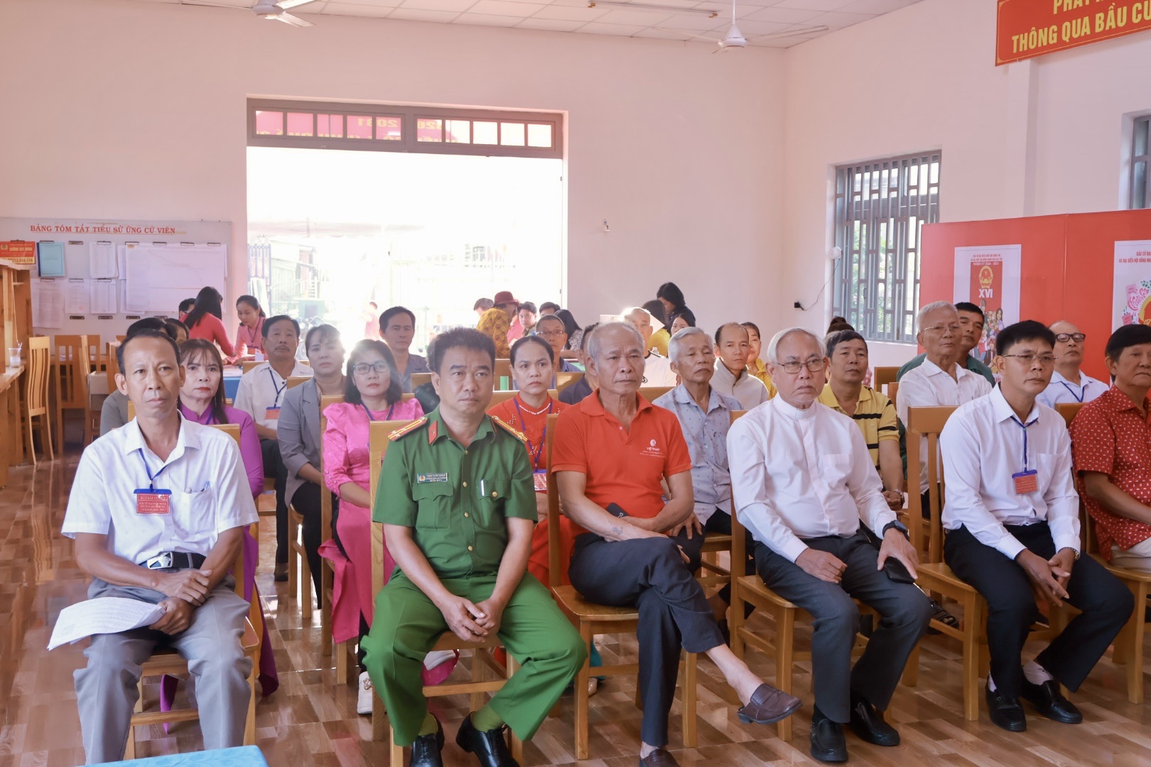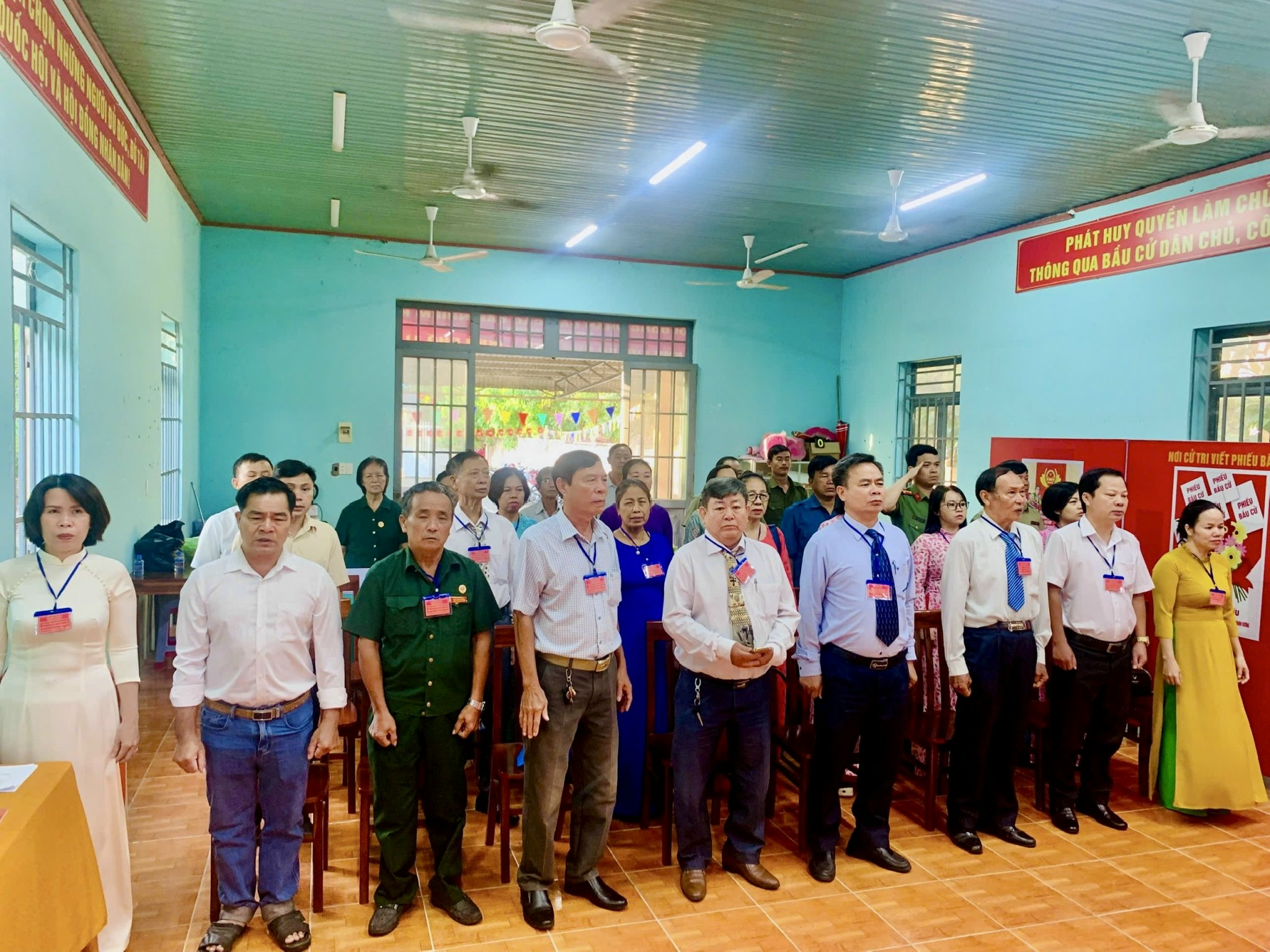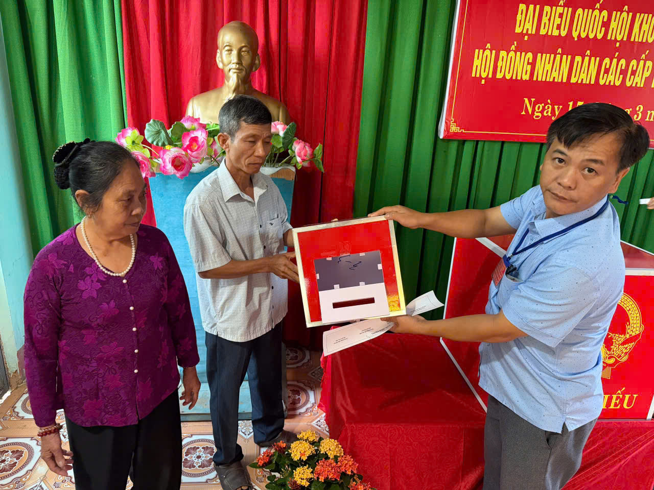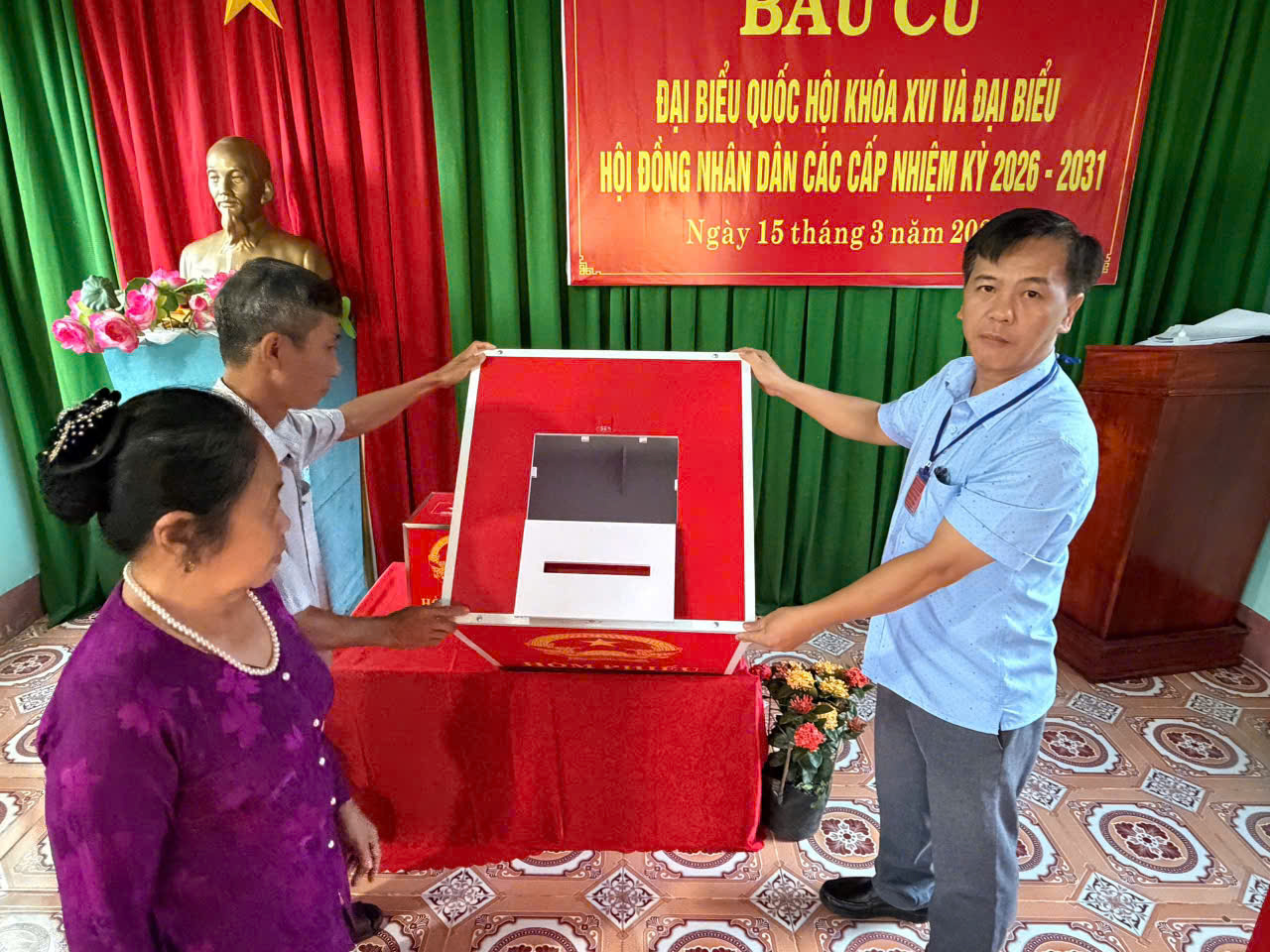 Công tác chuẩn bị cho ngày bầu cử được địa phương triển khai chu đáo, đúng quy định. Khu vực bỏ phiếu được trang trí trang trọng, đầy đủ pa-nô, khẩu hiệu, danh sách cử tri và tiểu sử tóm tắt của các ứng cử viên; lực lượng phục vụ bầu cử được phân công rõ ràng, sẵn sàng hướng dẫn, hỗ trợ cử tri tham gia bỏ phiếu thuận lợi, an toàn.