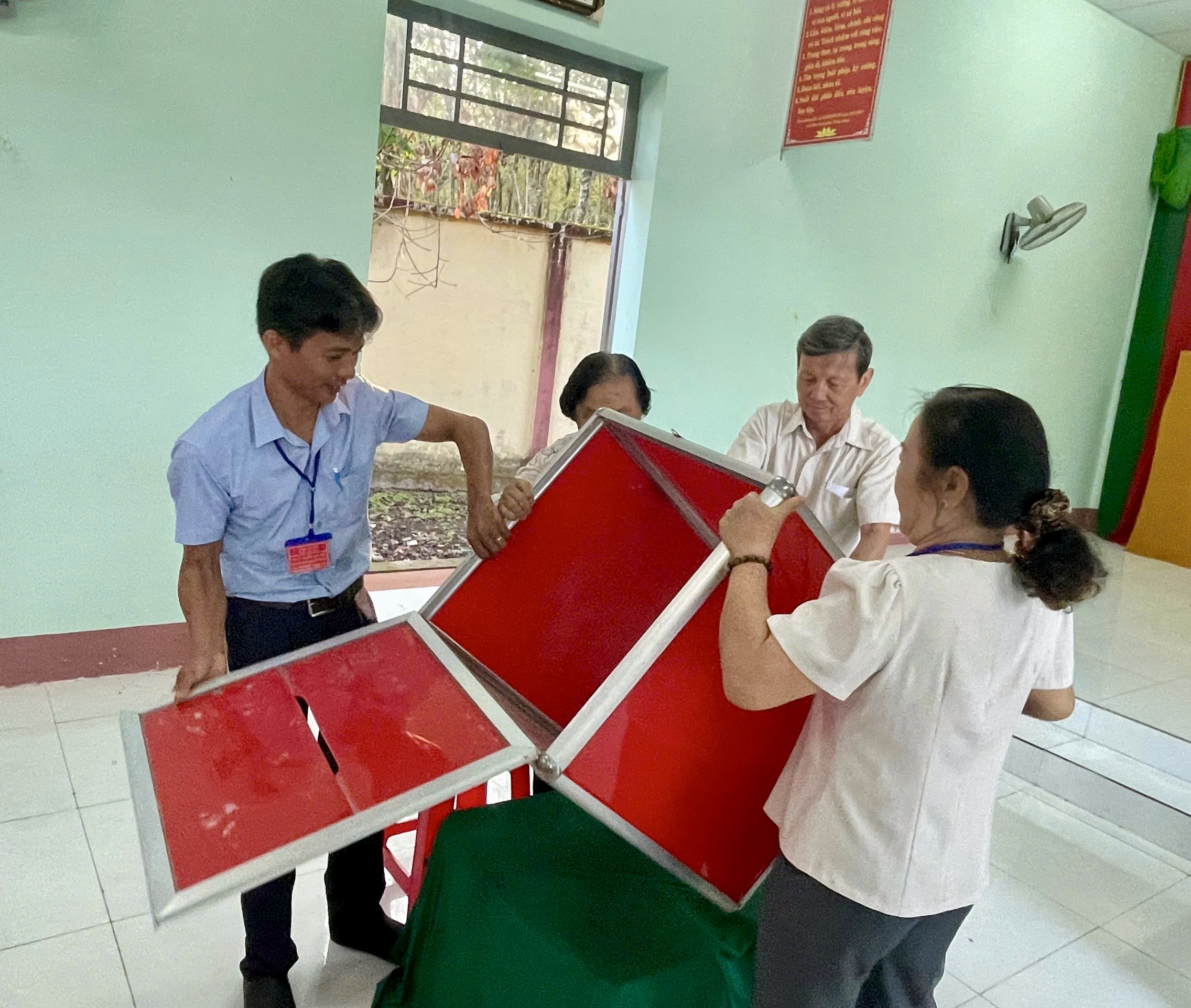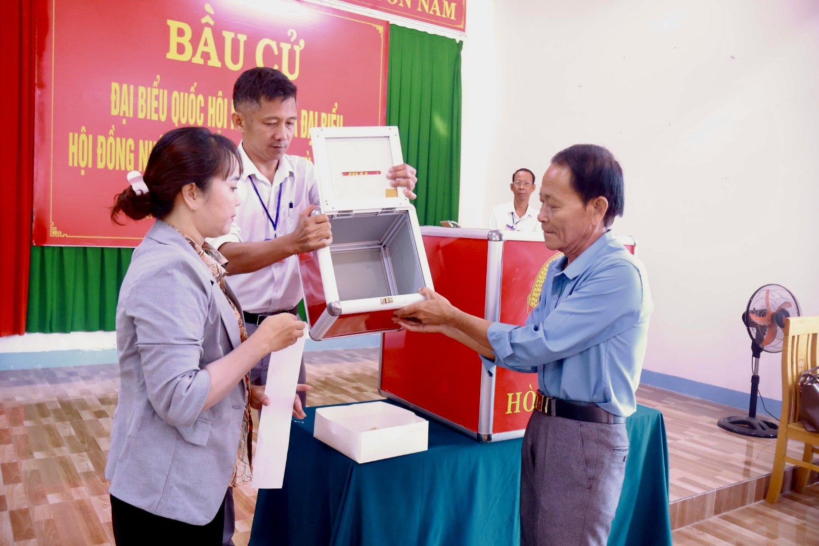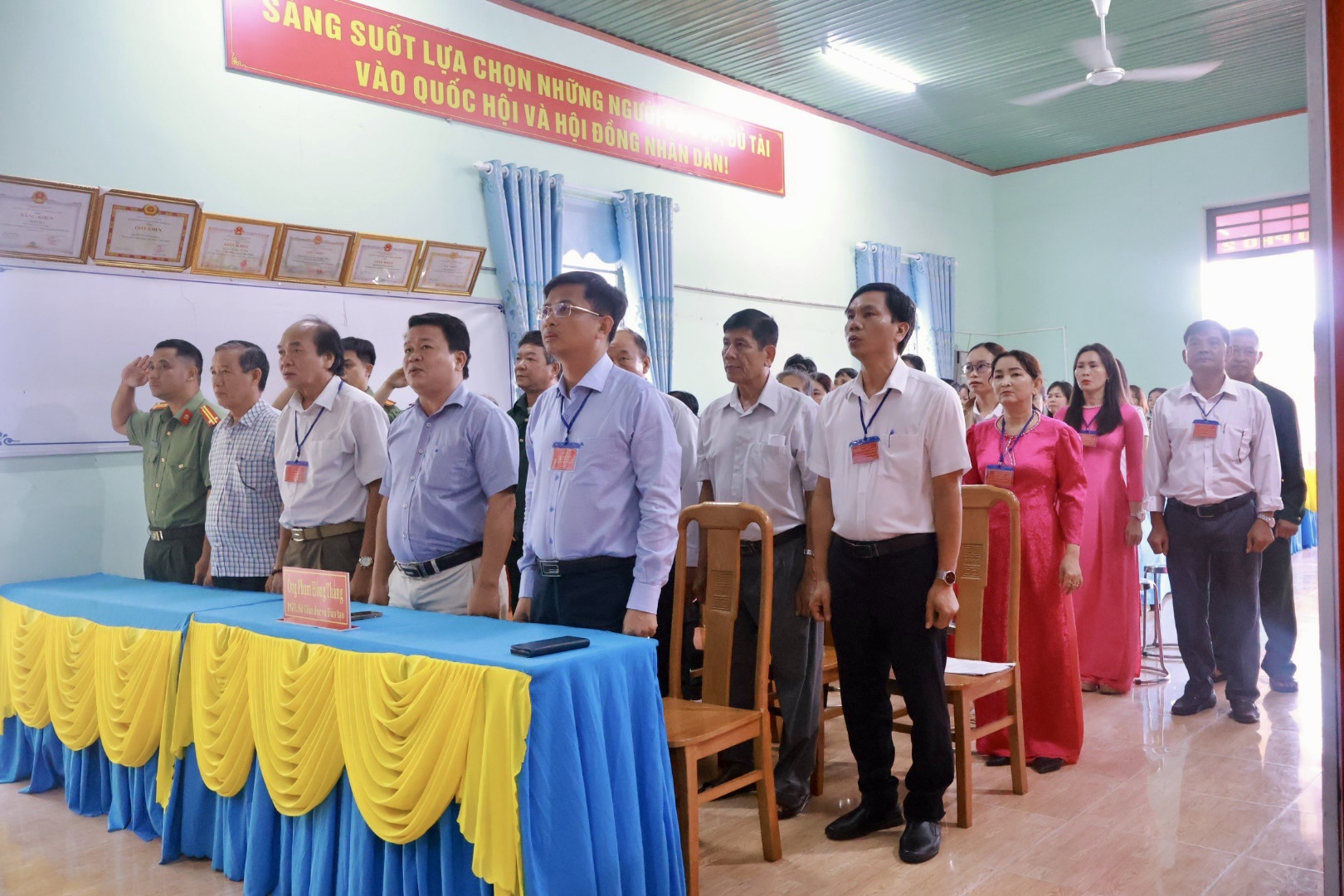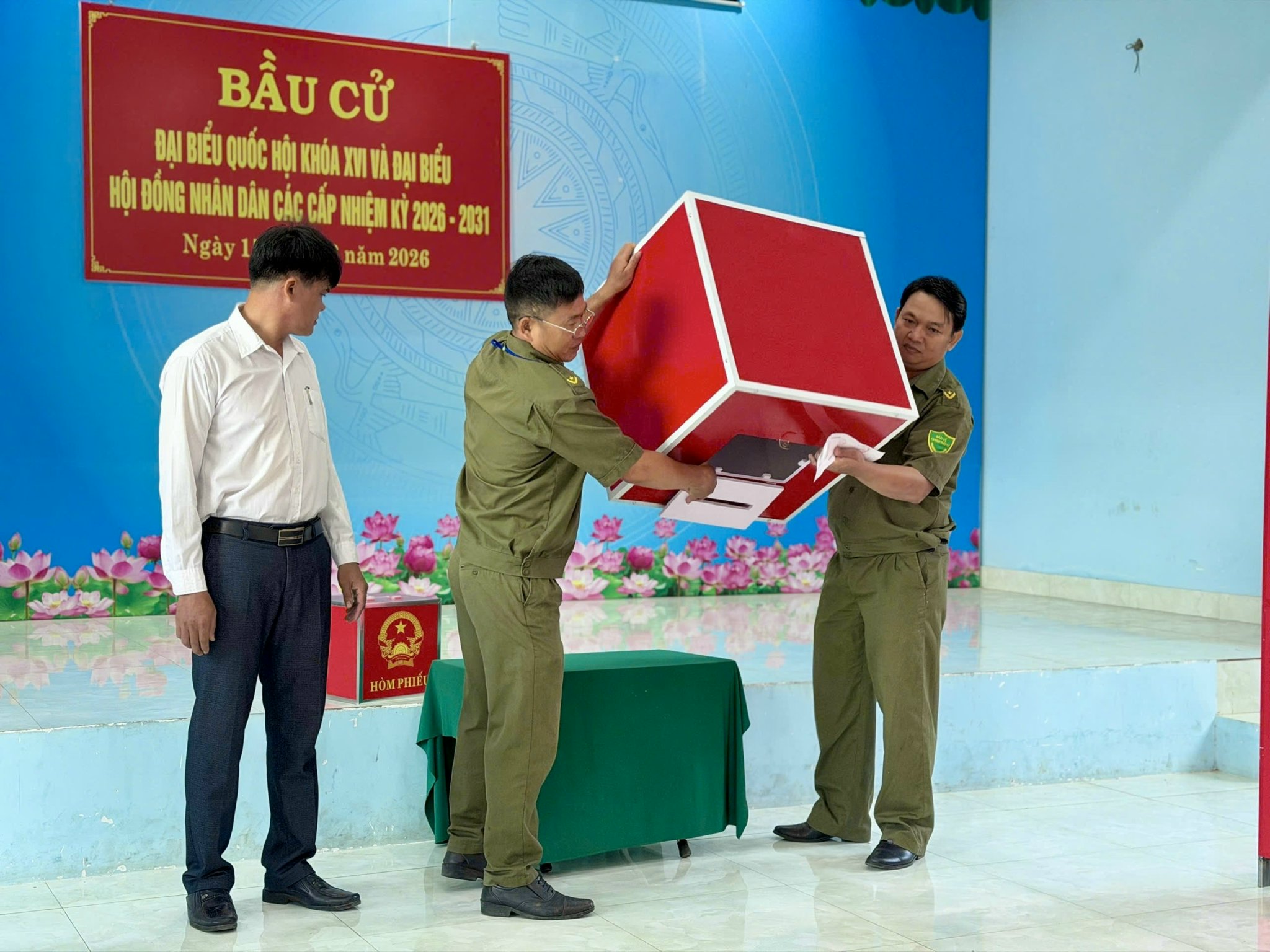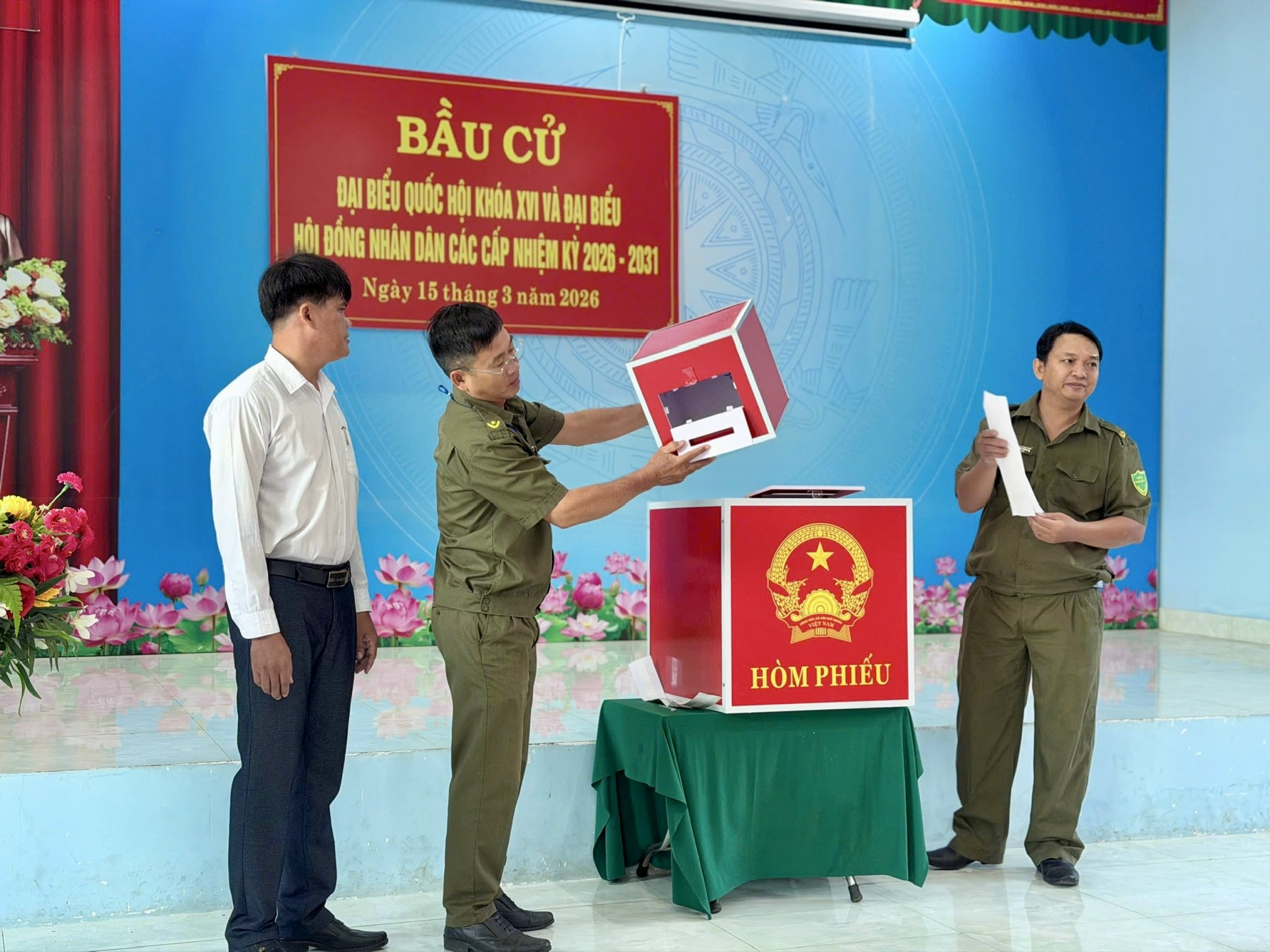 Công tác chuẩn bị cho ngày bầu cử được địa phương triển khai chu đáo, đúng quy định. Khu vực bỏ phiếu được trang trí trang trọng, đầy đủ pa-nô, khẩu hiệu, danh sách cử tri và tiểu sử tóm tắt của các ứng cử viên; lực lượng phục vụ bầu cử được phân công rõ ràng, sẵn sàng hướng dẫn, hỗ trợ cử tri tham gia bỏ phiếu thuận lợi, an toàn.