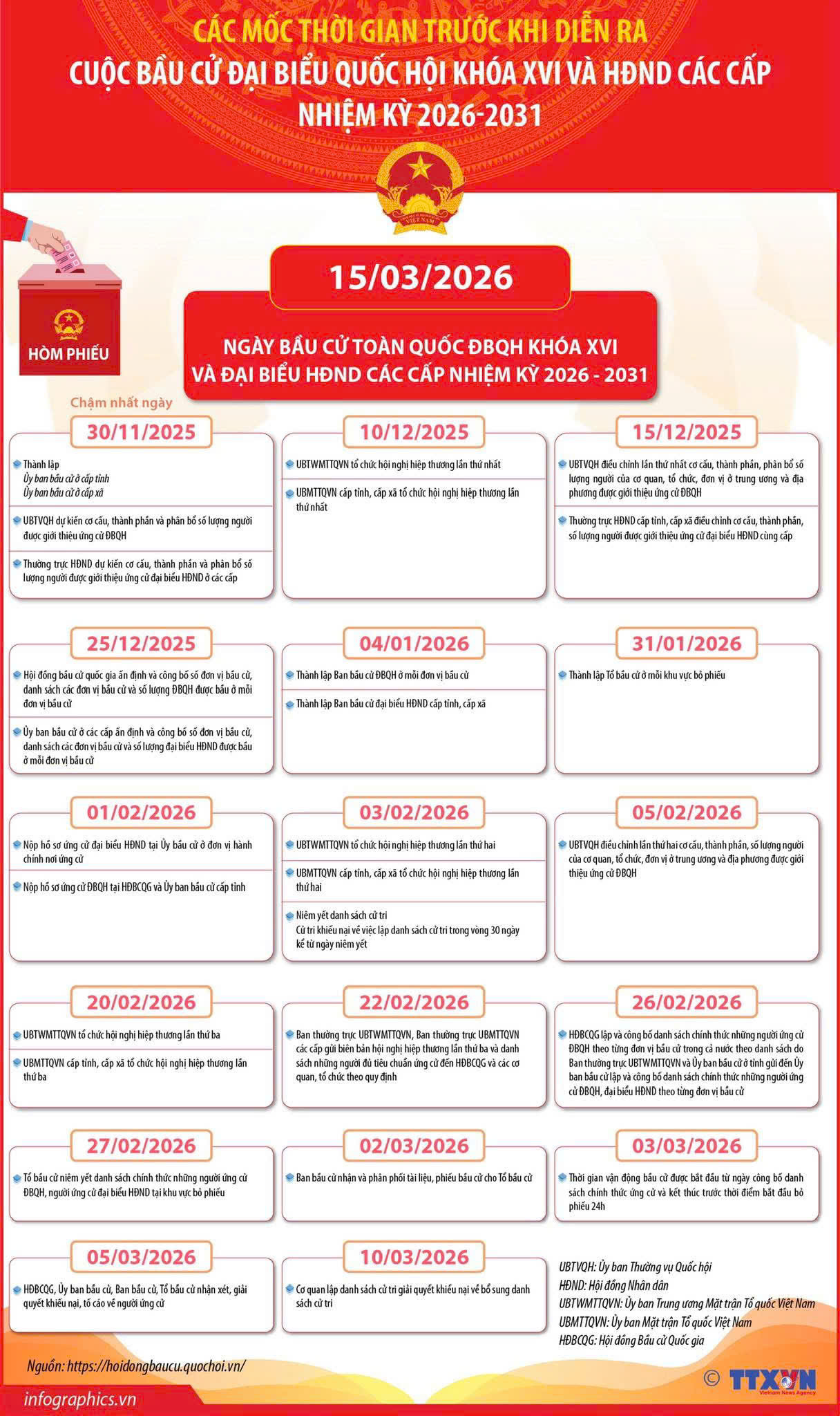 Cuộc bầu cử đại biểu Quốc hội khóa XVI và đại biểu Hội đồng nhân dân các cấp nhiệm kỳ 2026-2031 là sự kiện chính trị trọng đại của đất nước diễn ra ngay sau Đại hội lần thứ XIV của Đảng.