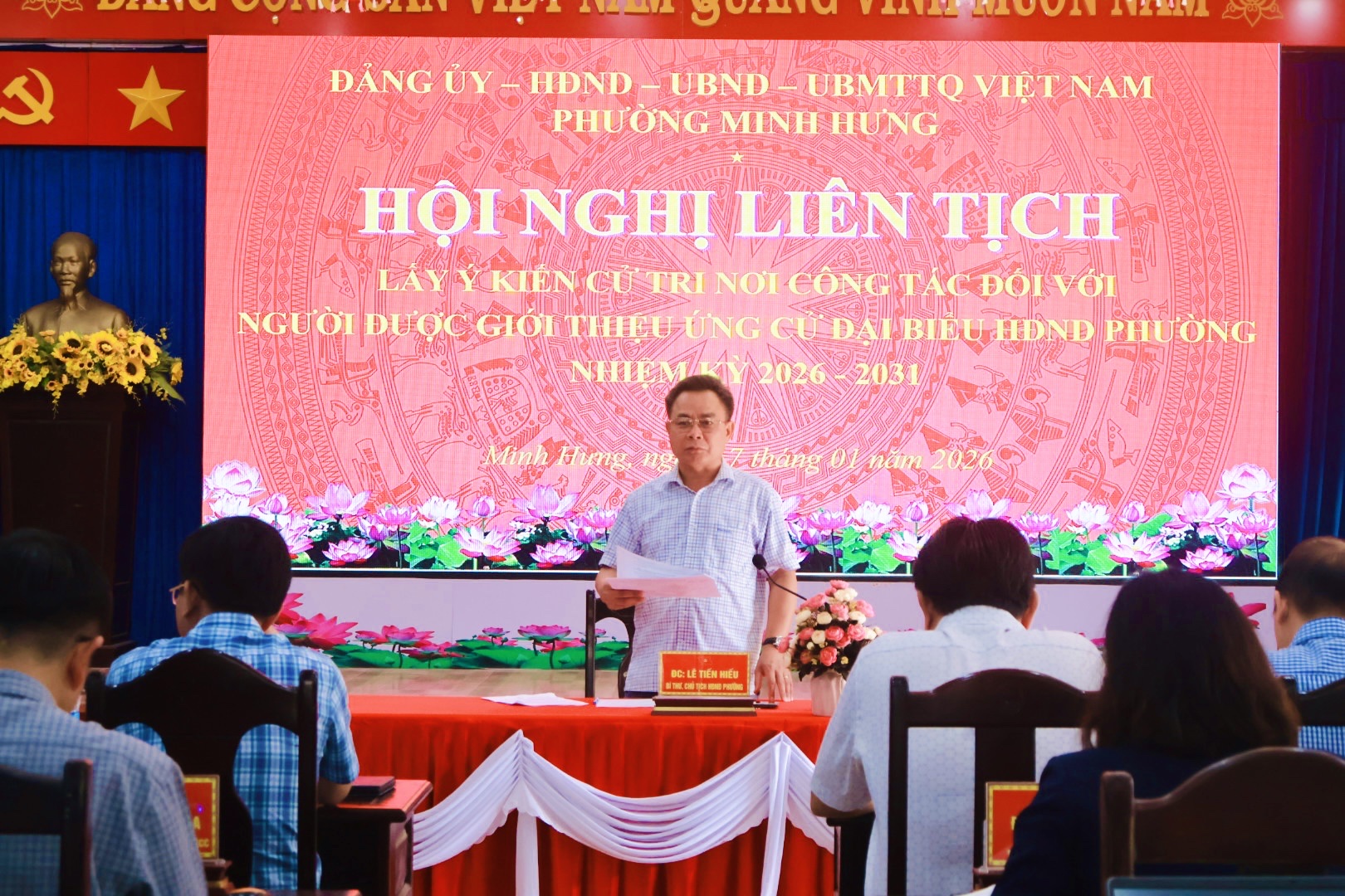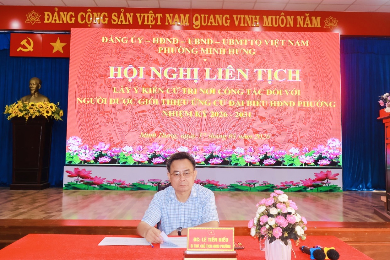 Hội nghị liên tịch lấy ý kiến cử tri nơi công tác được tổ chức bảo đảm đúng trình tự, thủ tục, phát huy dân chủ, khách quan, công khai, minh bạch, góp phần quan trọng vào công tác chuẩn bị nhân sự cho cuộc bầu cử đại biểu Hội đồng nhân dân phường Minh Hưng nhiệm kỳ 2026 - 2031.