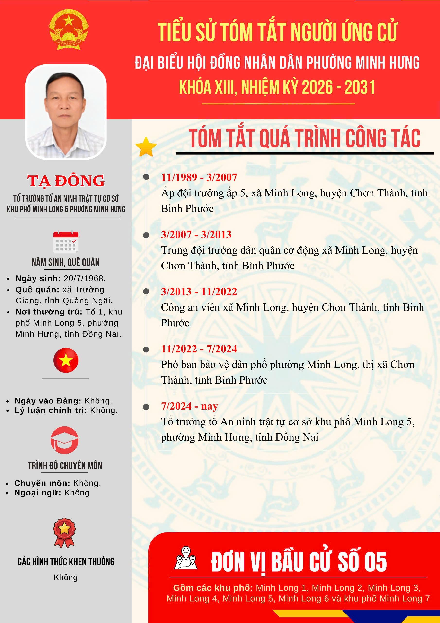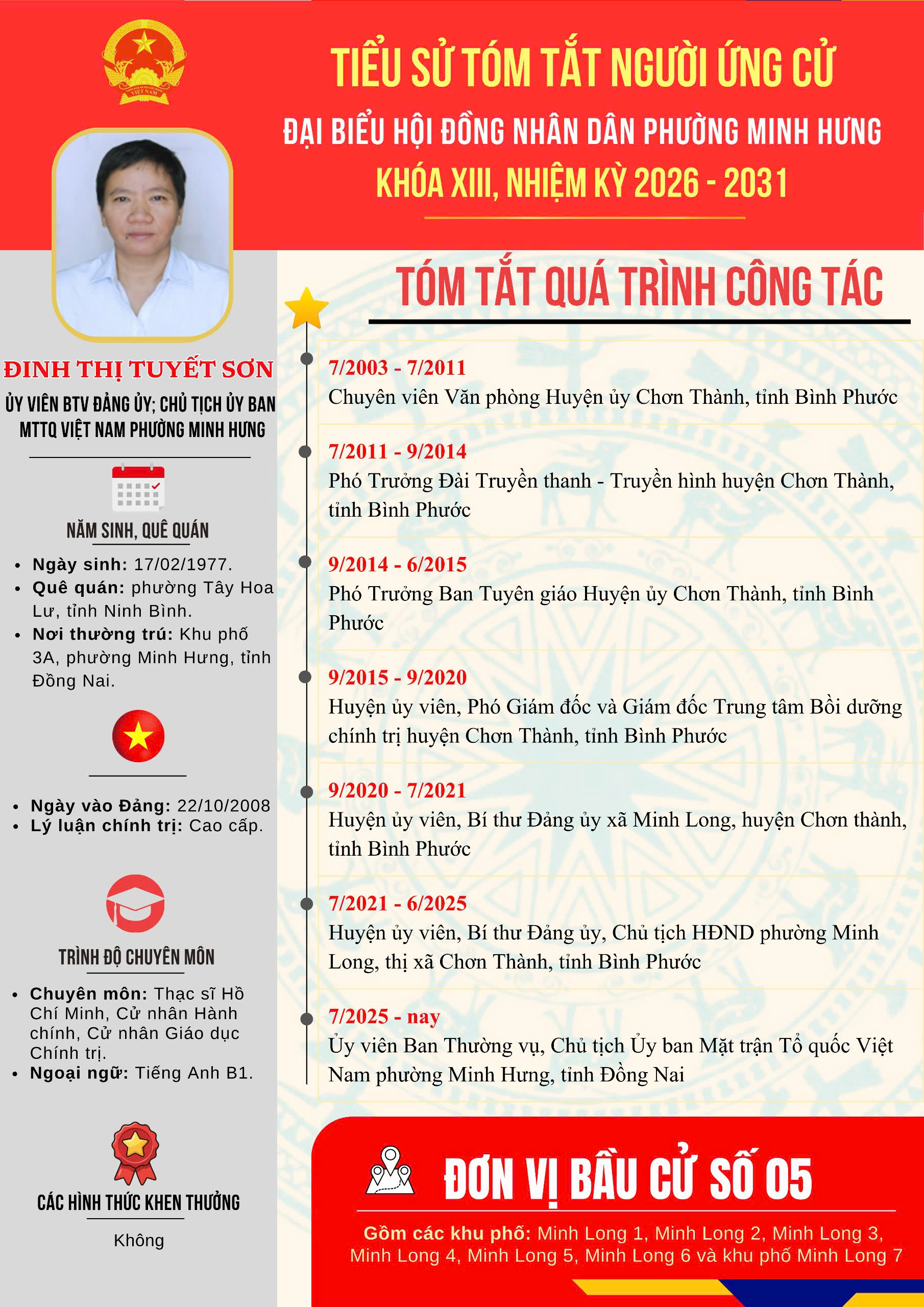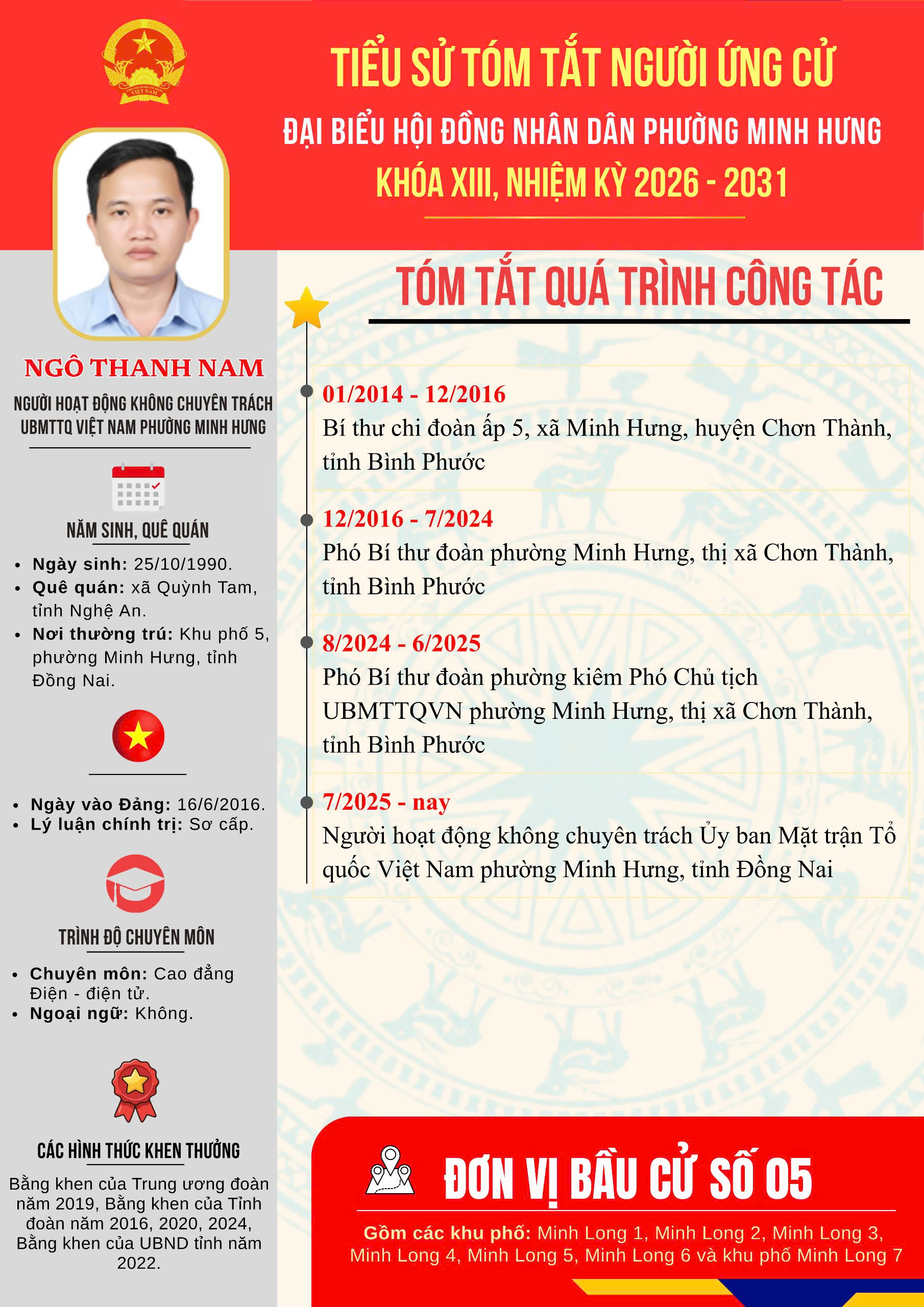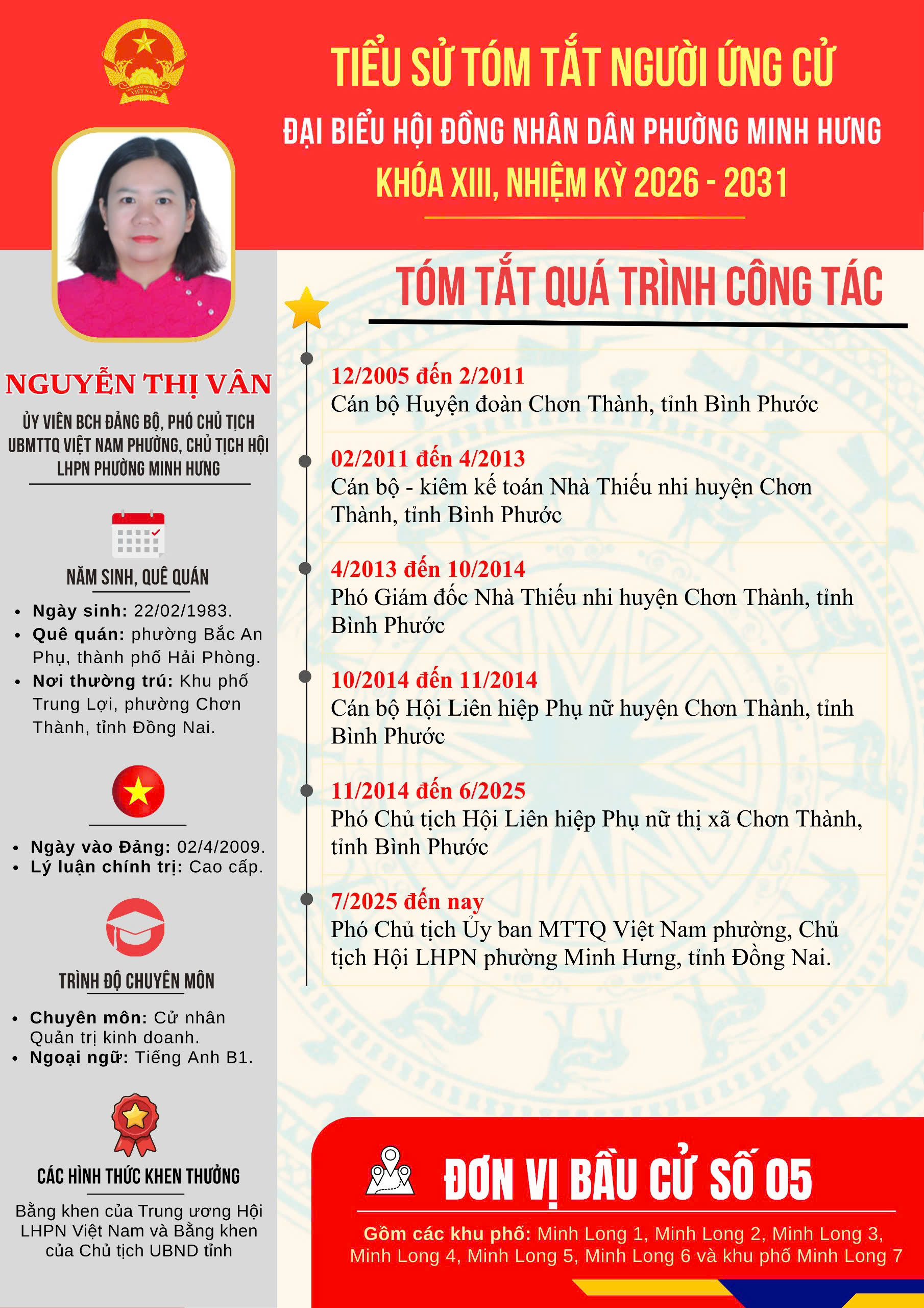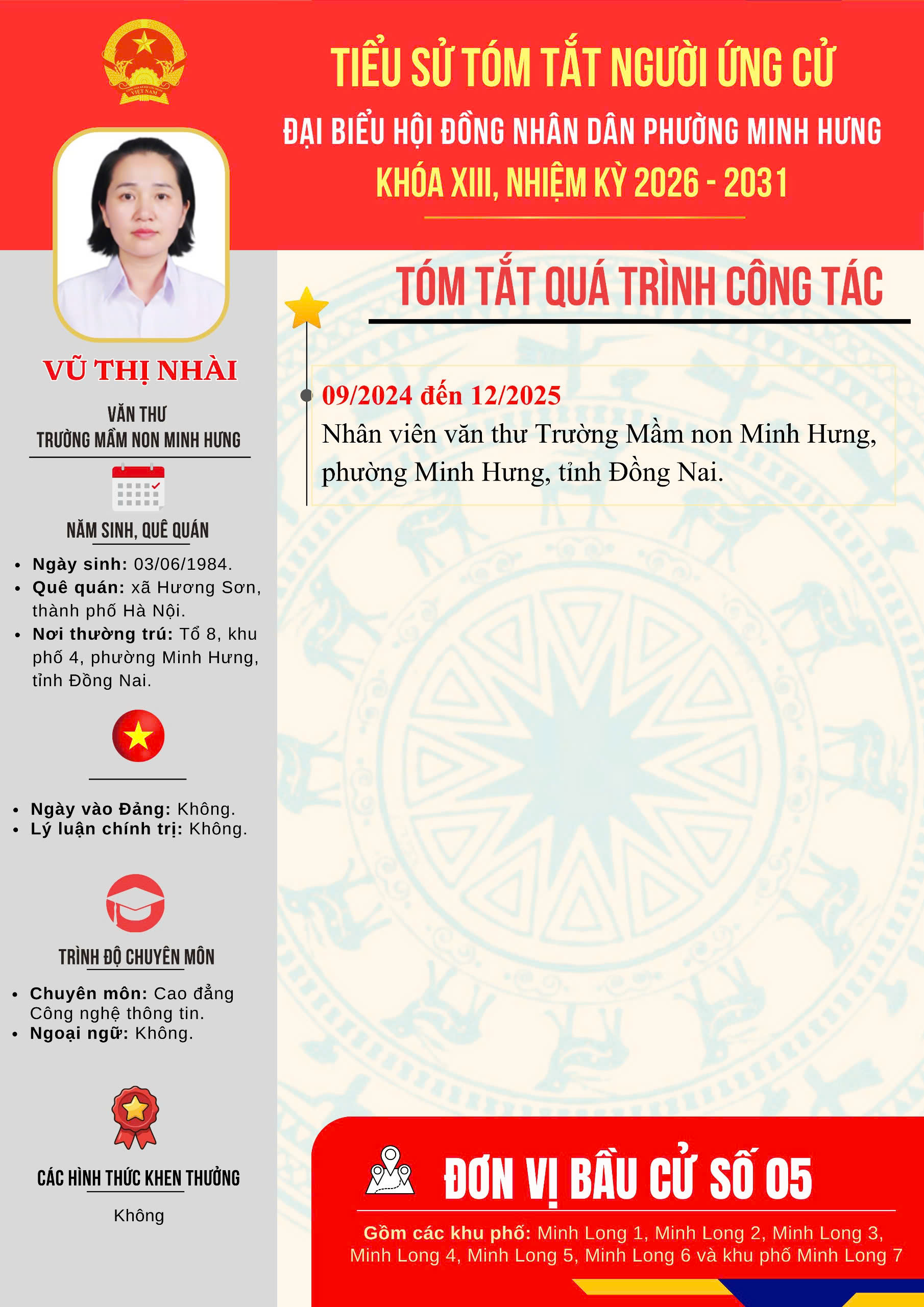 Đơn vị bầu cử số 05 gồm 07 ứng cử viên. Số đại biểu được bầu: 04 đại biểu.