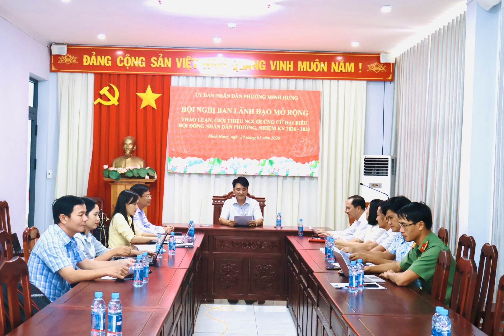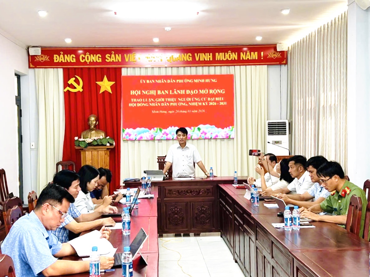 Hội nghị đã thống nhất thông qua biên bản cuộc họp với sự đồng thuận cao của các đại biểu tham dự. Kết quả hội nghị là cơ sở quan trọng để UBND phường Minh Hưng tiếp tục thực hiện các bước tiếp theo trong quy trình hiệp thương, giới thiệu nhân sự ứng cử đại biểu HĐND phường nhiệm kỳ 2026-2031, góp phần chuẩn bị tốt cho công tác bầu cử trên địa bàn phường.